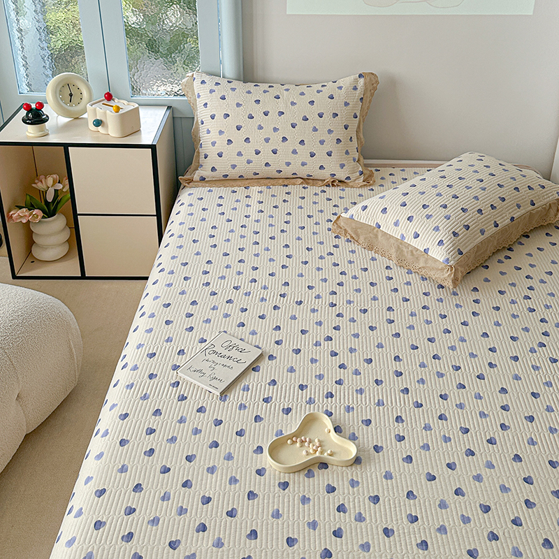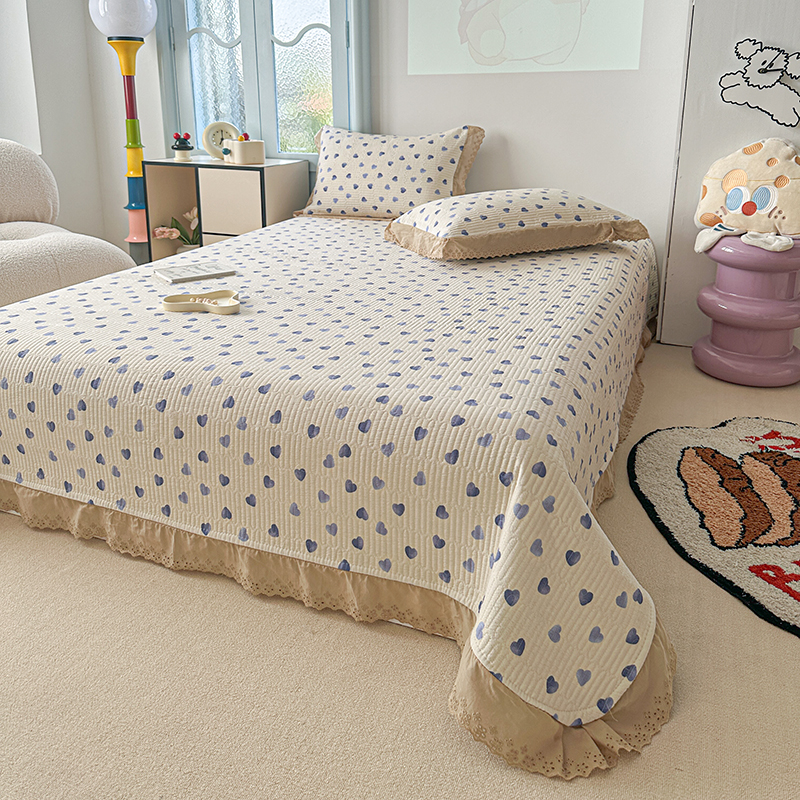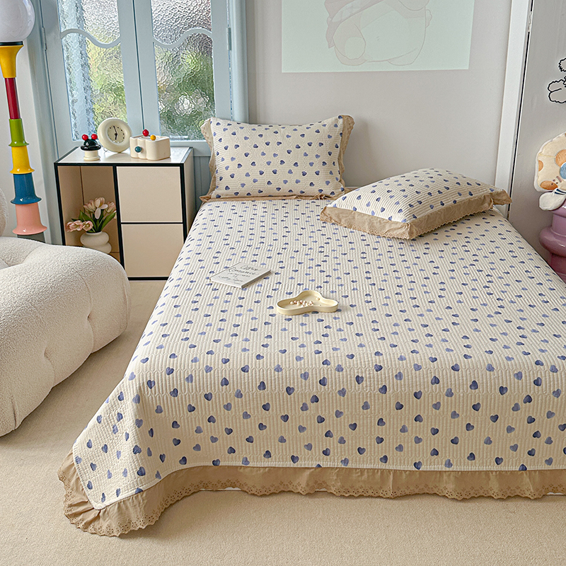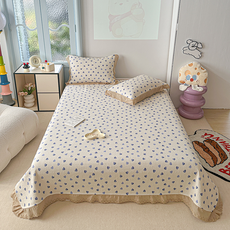 商品名称:源舜 2025新款云感皱皱纱法式床盖三件套 梦幻爱心-蓝
