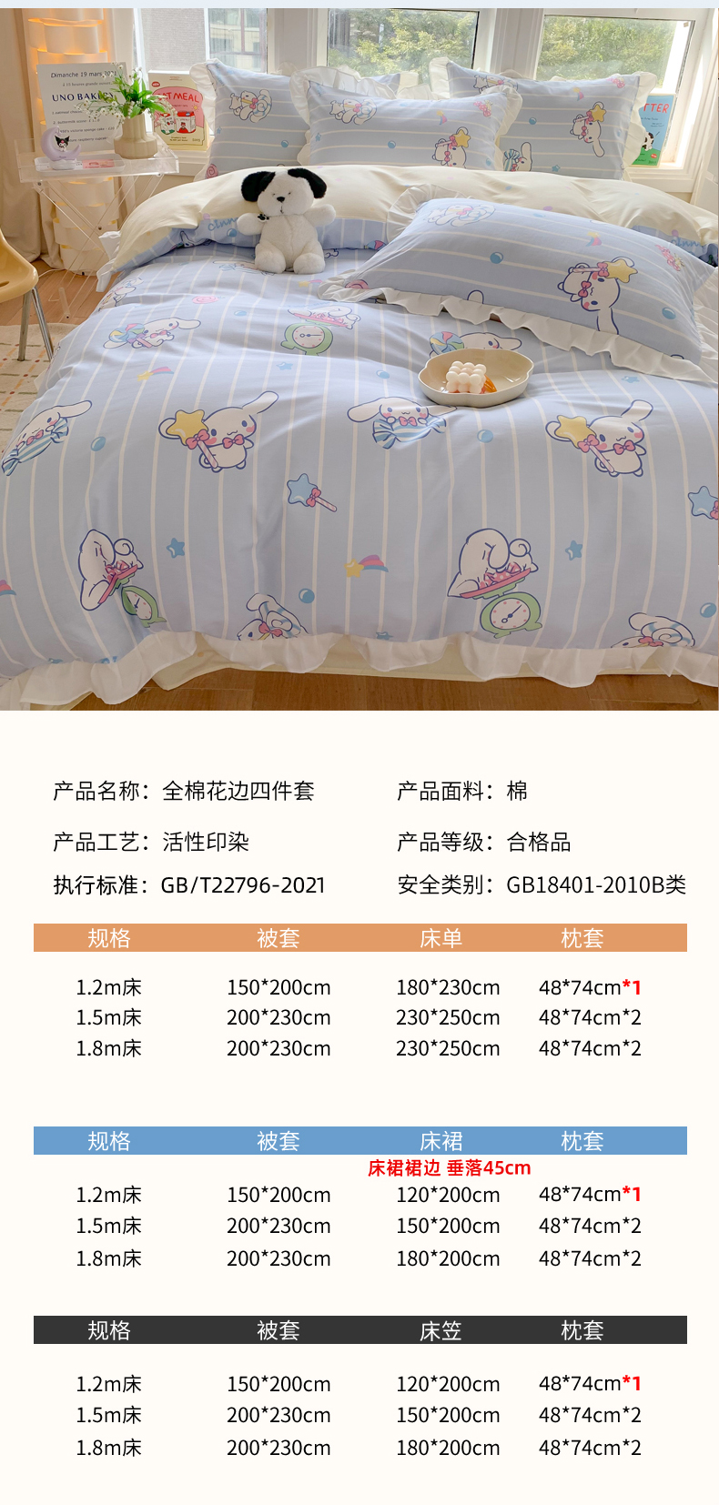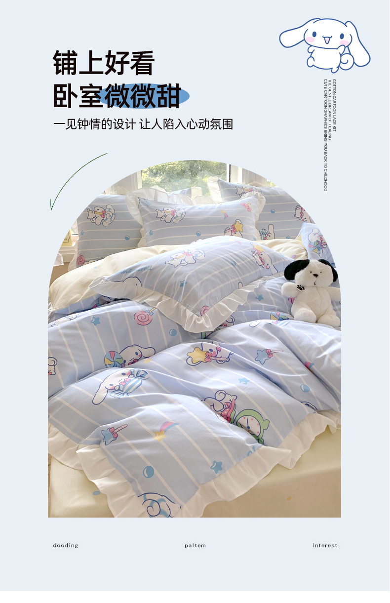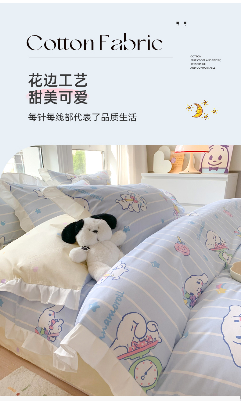当前位置: 91家纺网 > 商品网购 > 床品套件 > 四件套 > 全棉普通四件套 > 玉元坊 2025新款三丽鸥系列白花边被套纯棉全棉床裙三件套四件套-大耳狗白花边款式 星星大耳狗【花边款】
