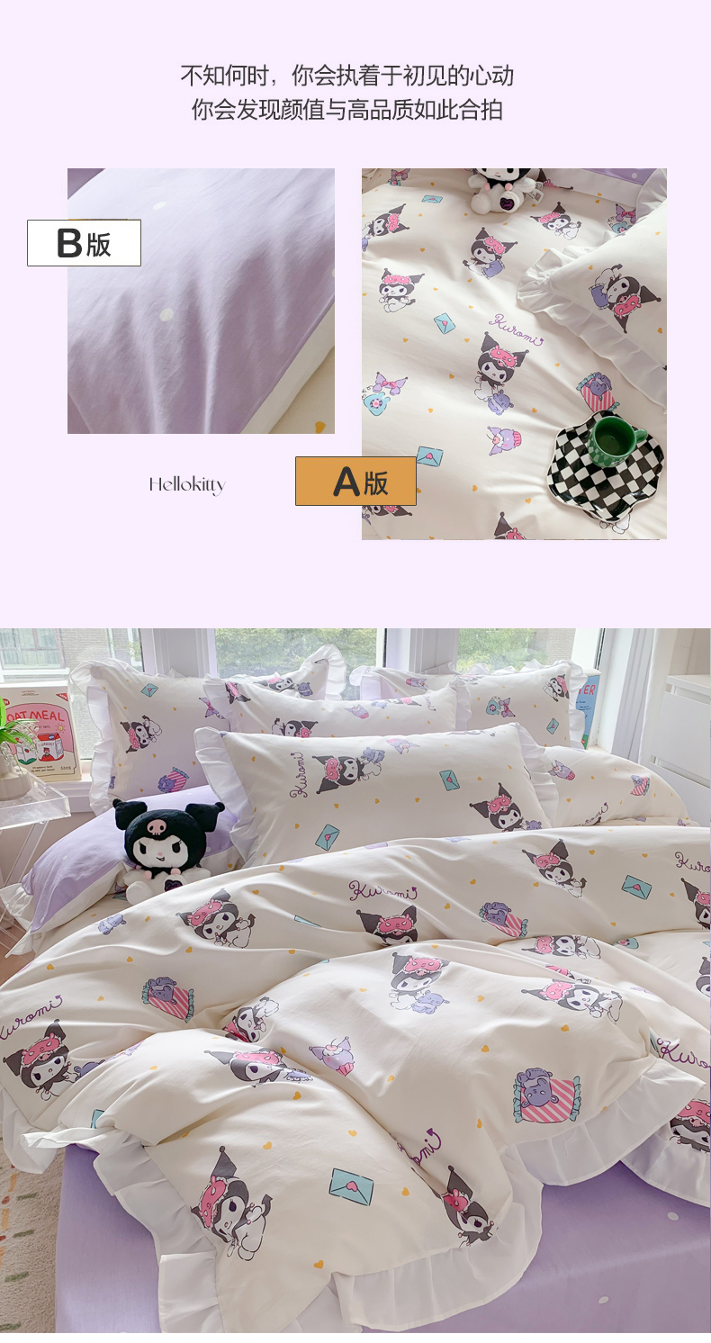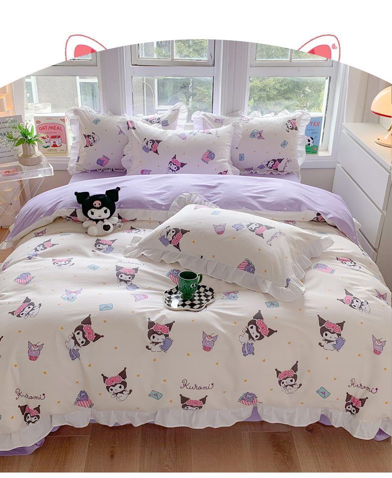 当前位置: 91家纺网 > 商品网购 > 床品套件 > 四件套 > 全棉普通四件套 > 玉元坊 2025新款三丽鸥系列白花边被套纯棉全棉床裙三件套四件套-库洛米白花边款式 库洛米伙伴【花边款】