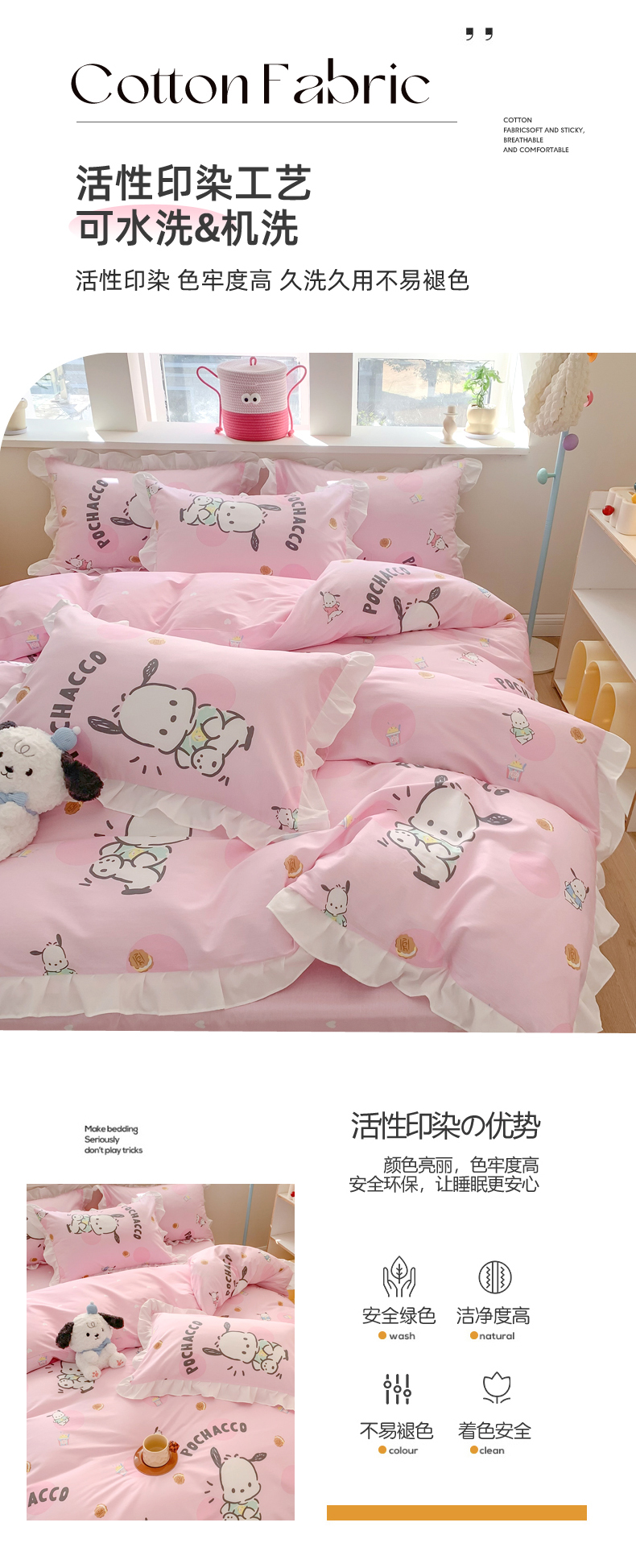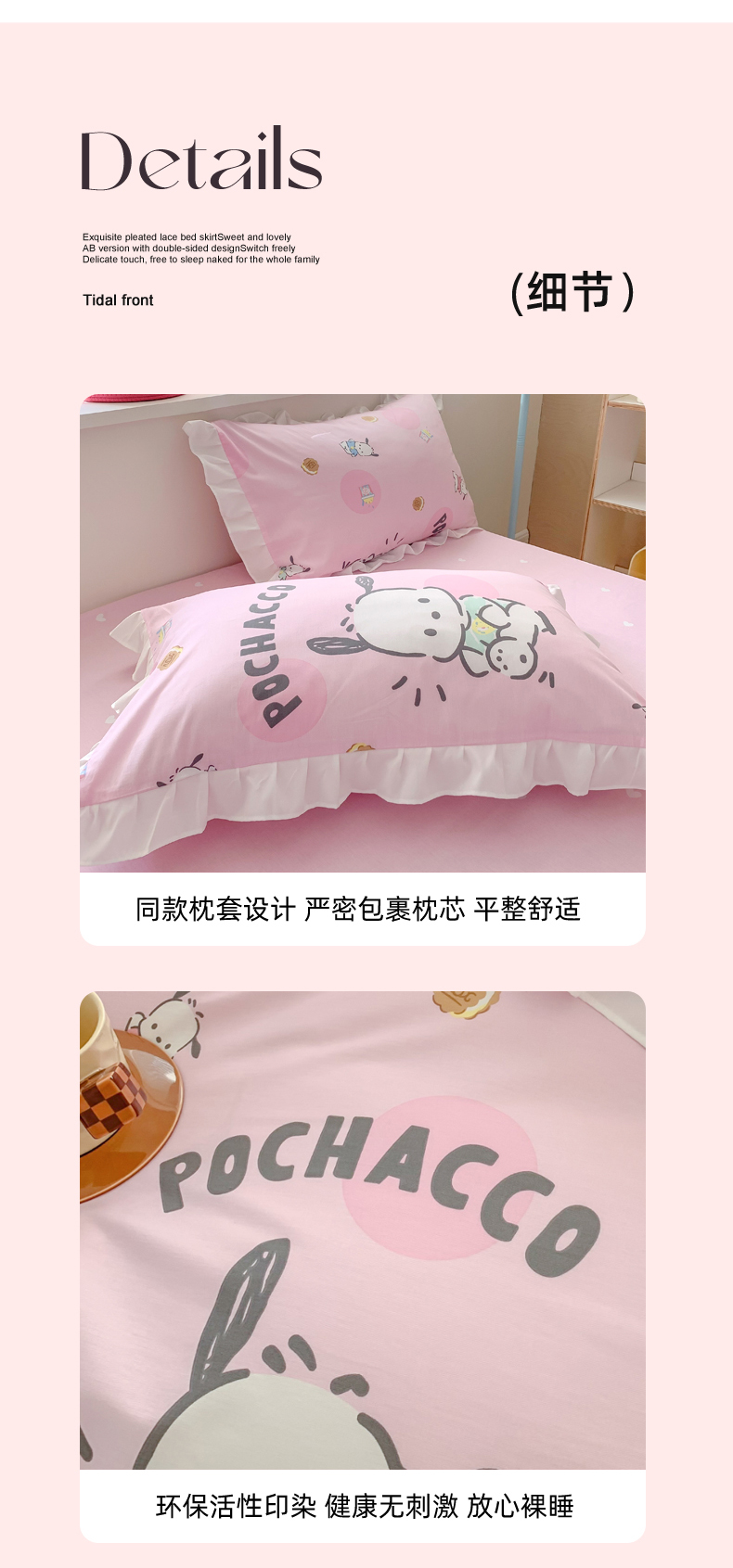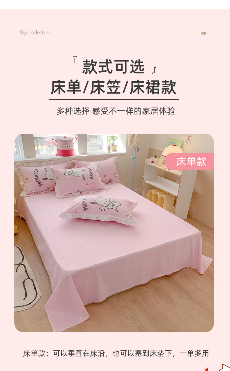 当前位置: 91家纺网 > 商品网购 > 床品套件 > 四件套 > 全棉普通四件套 > 玉元坊 2025新款三丽鸥系列白花边被套纯棉全棉床裙三件套四件套-帕恰狗白花边款式 开心帕恰狗【花边款式】