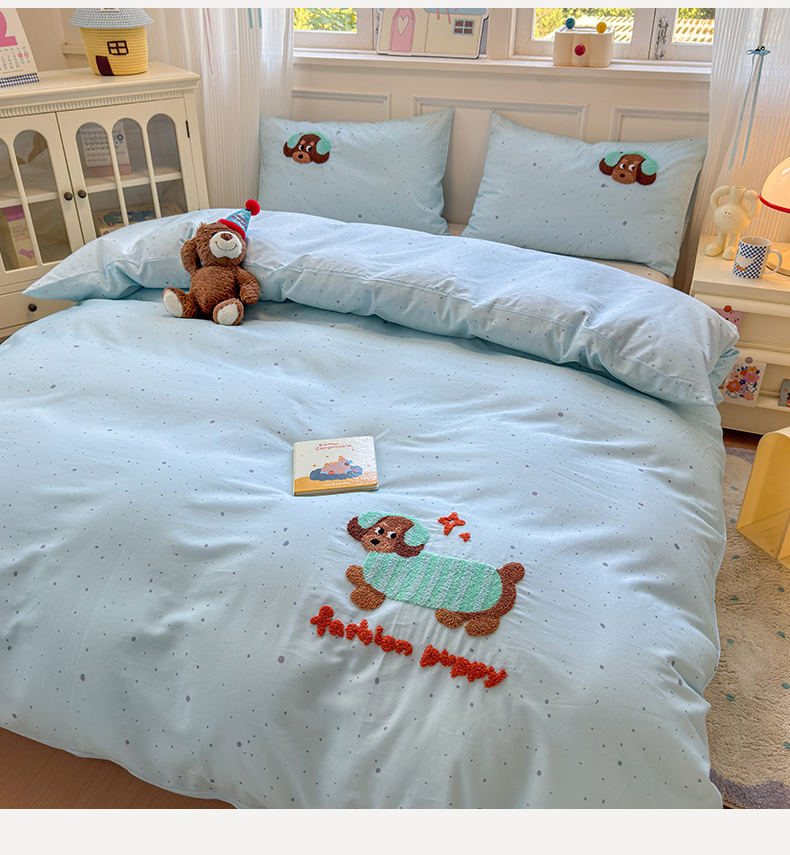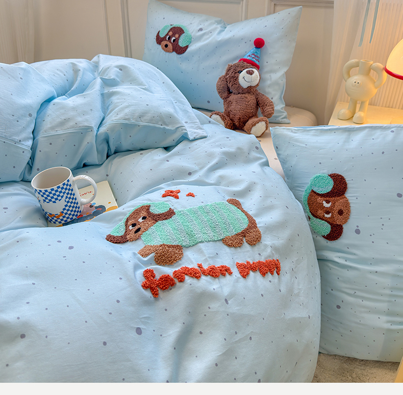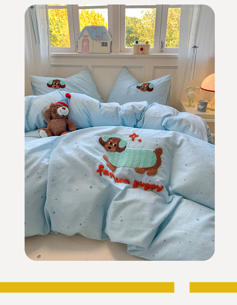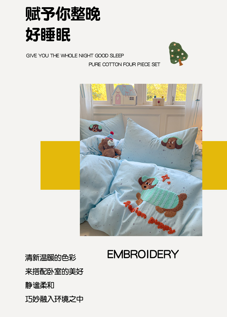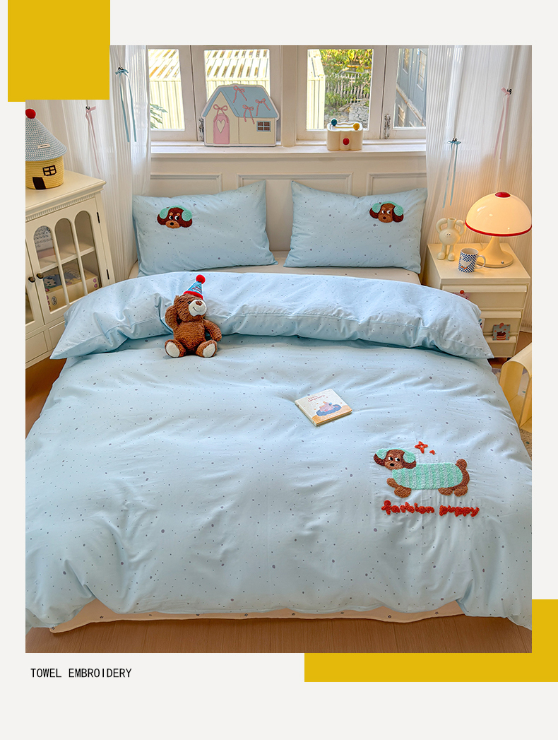 曼之夏 2025新款全棉亲肤舒适毛巾绣四件套 毛巾绣-快乐狗
