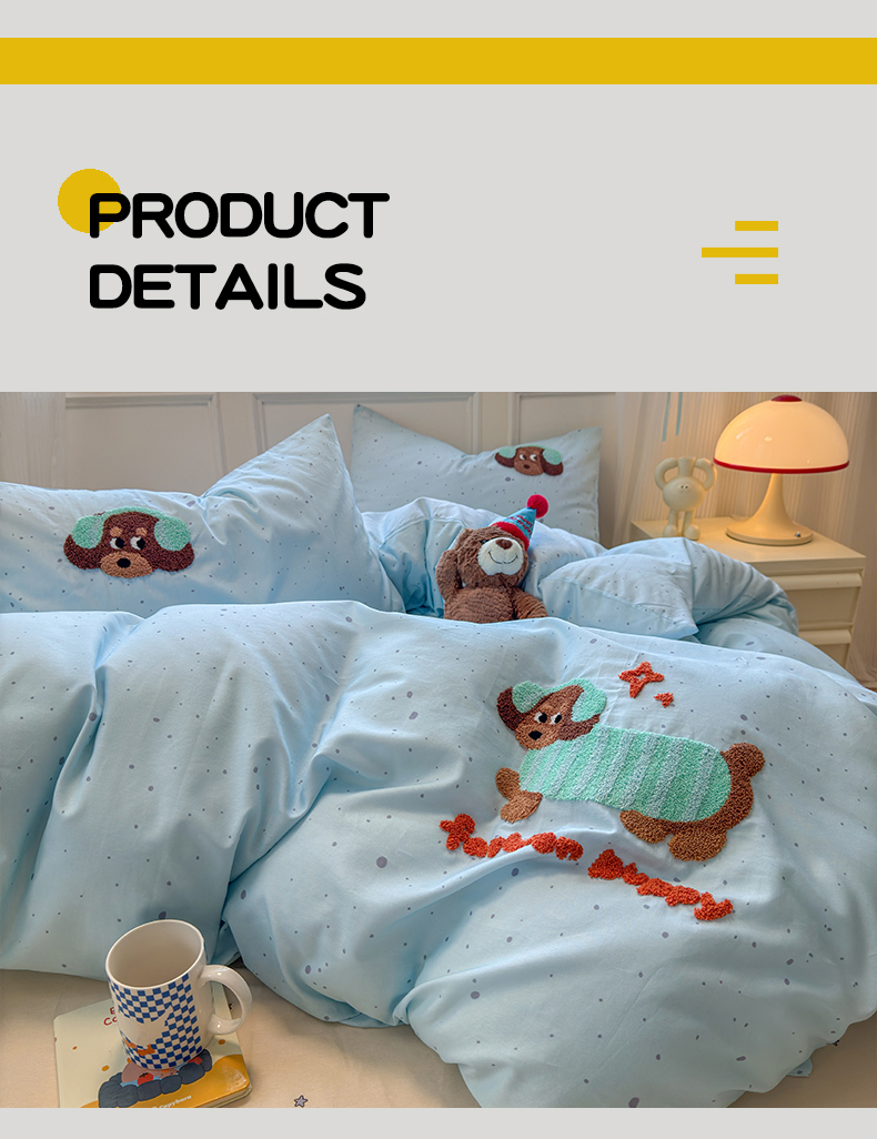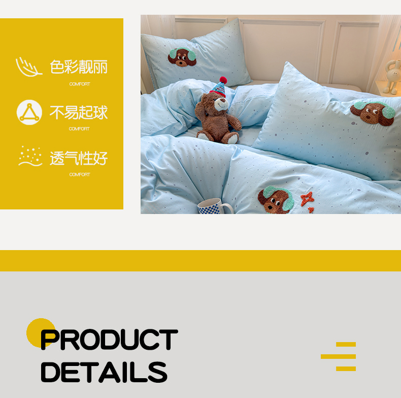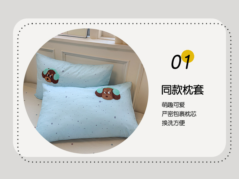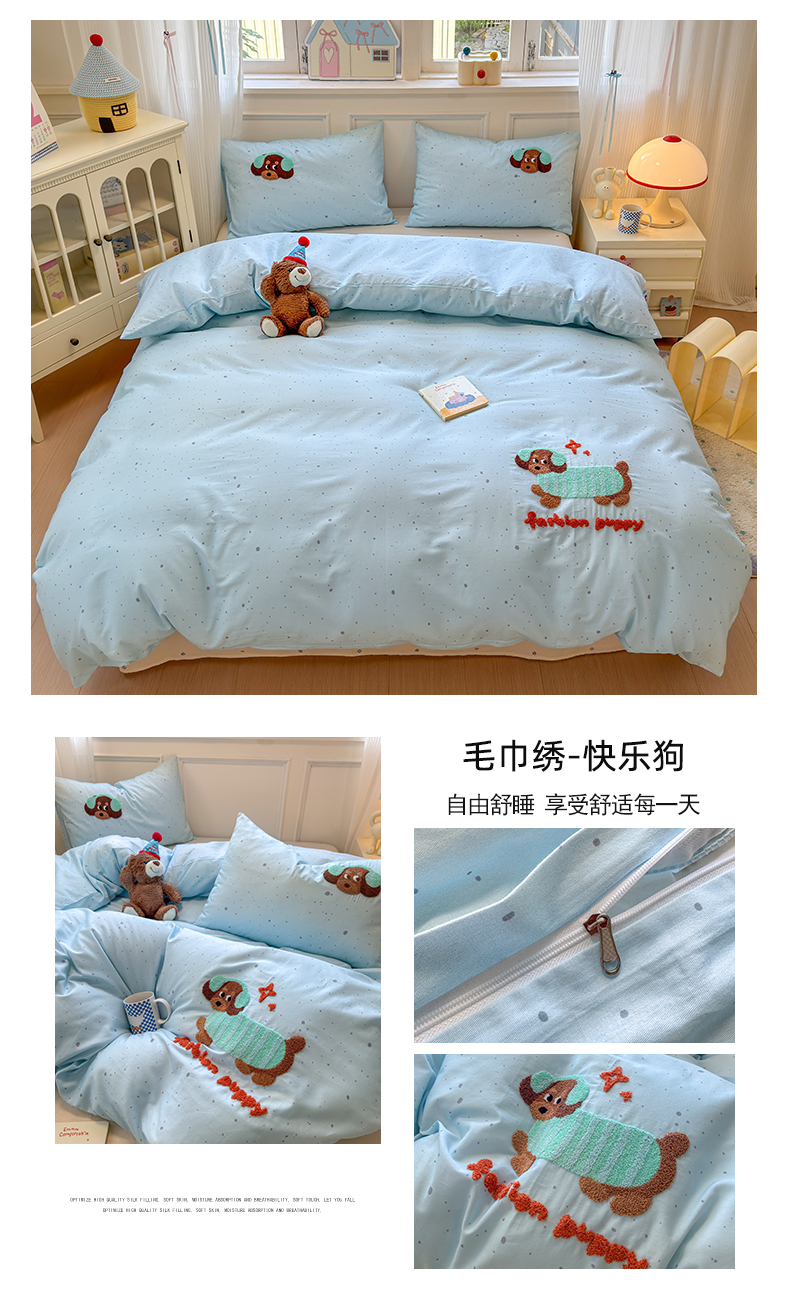 商品名称:曼之夏 2025新款全棉亲肤舒适毛巾绣四件套 毛巾绣-快乐狗