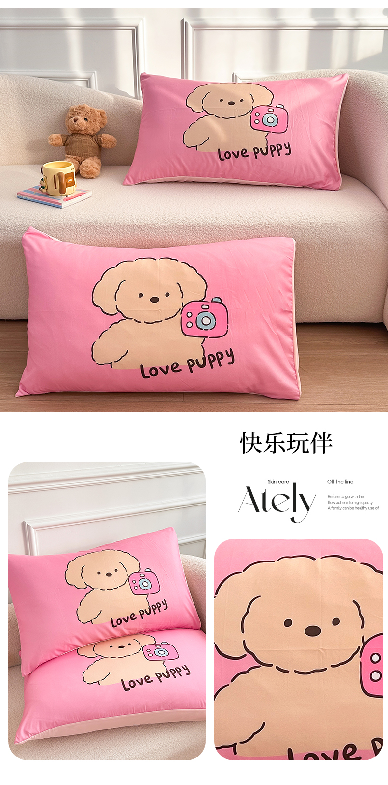多品家纺 2025新款大版系列超柔水洗棉枕套 大版快乐玩伴