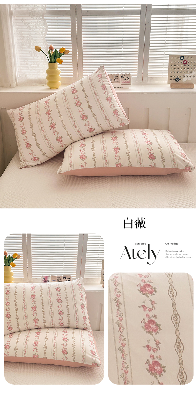 商品名称:多品家纺 2025新款花卉系列超柔水洗棉枕套 白薇