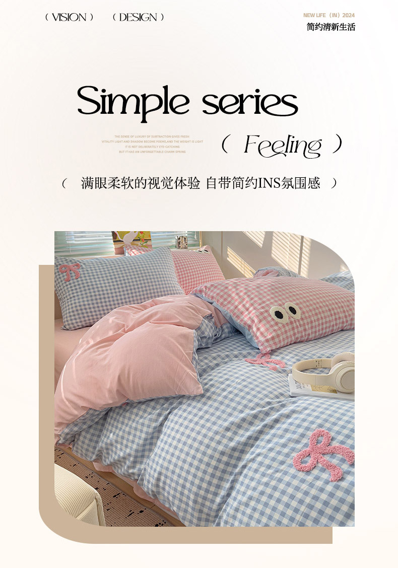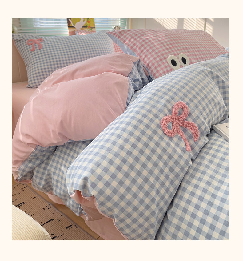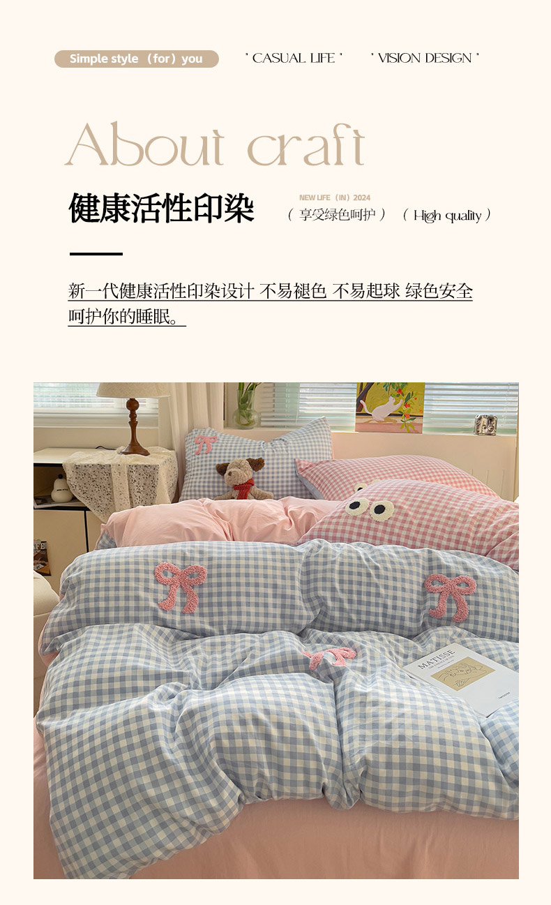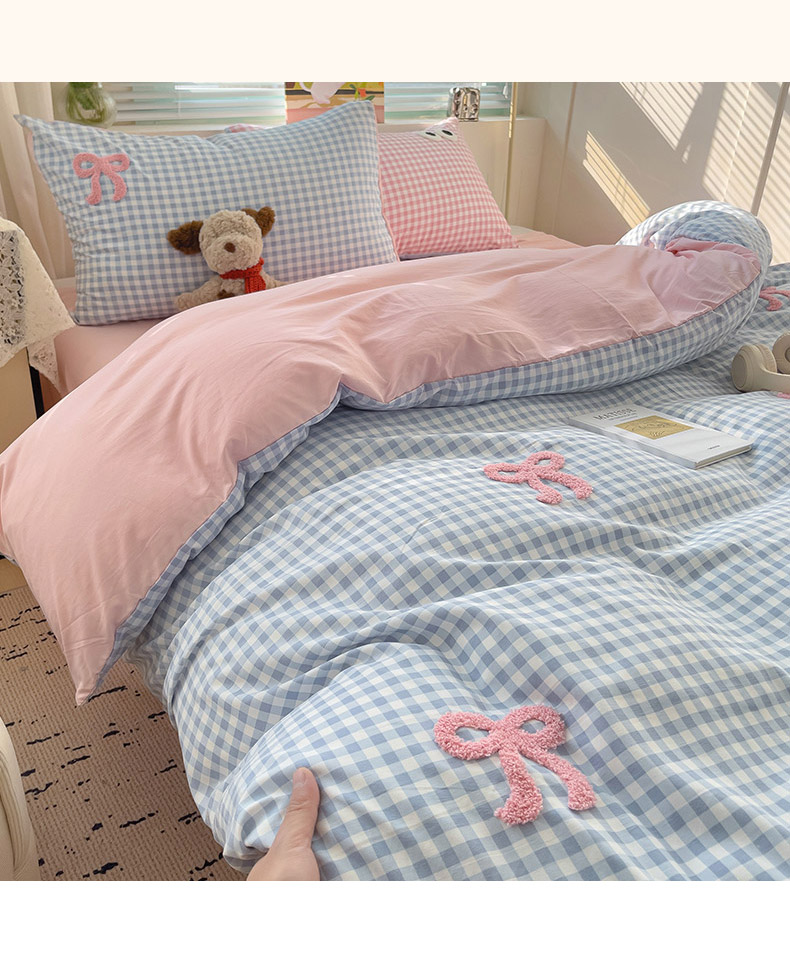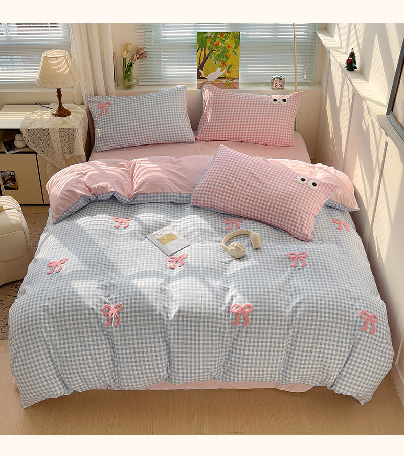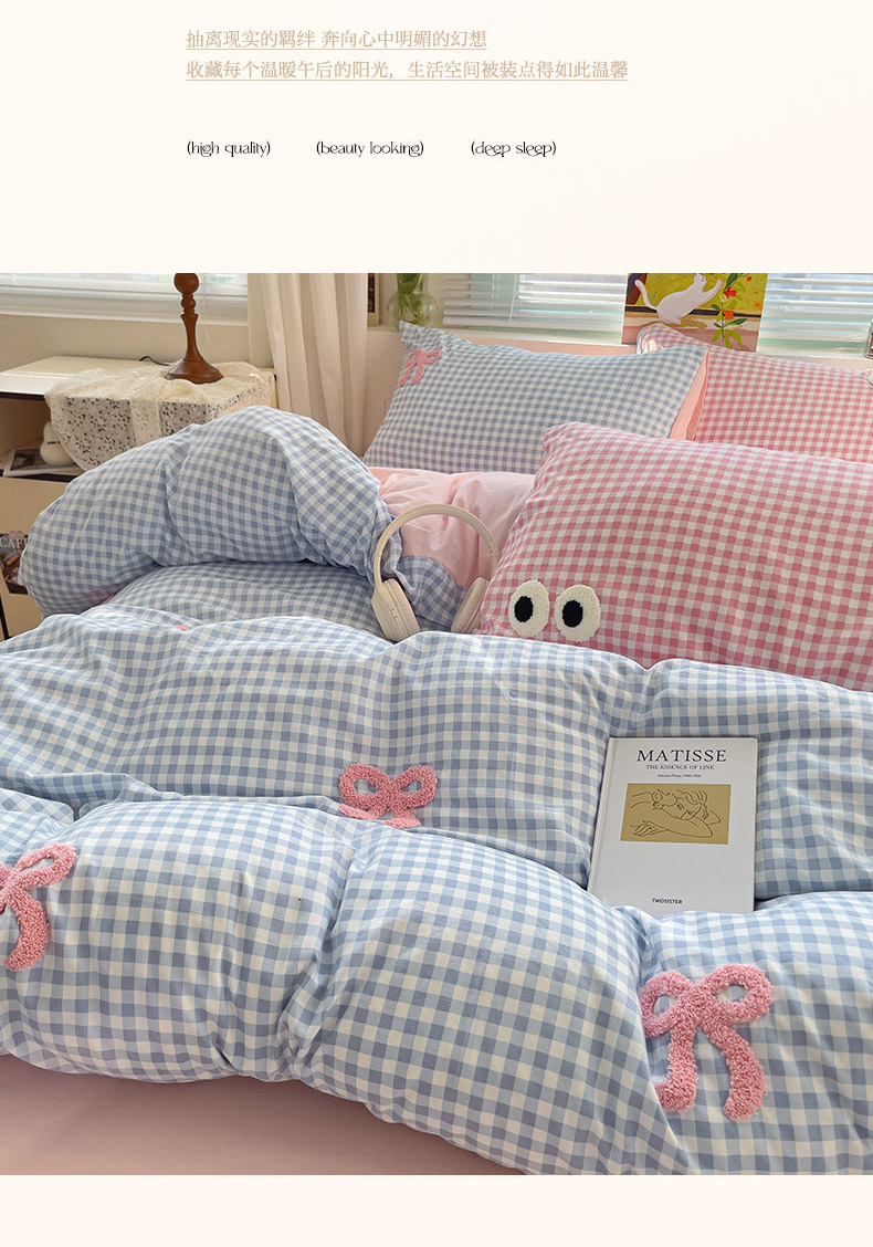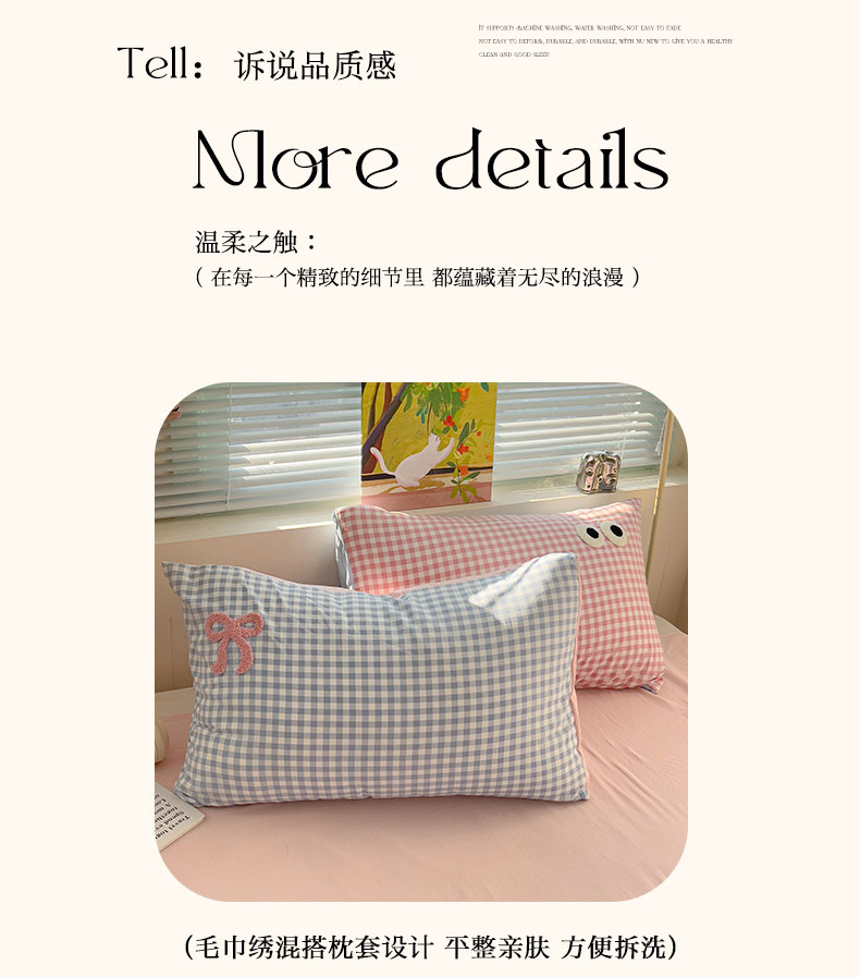 当前位置: 91家纺网 > 商品网购 > 床品套件 > 四件套 > 水洗棉四件套 > 妖妖家纺 2025新款水洗云朵毛巾绣印+绣系列四件套 少女蝴蝶结-蓝粉