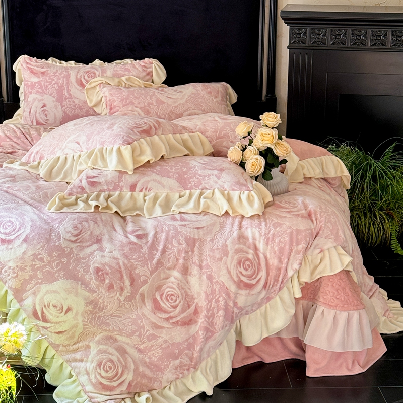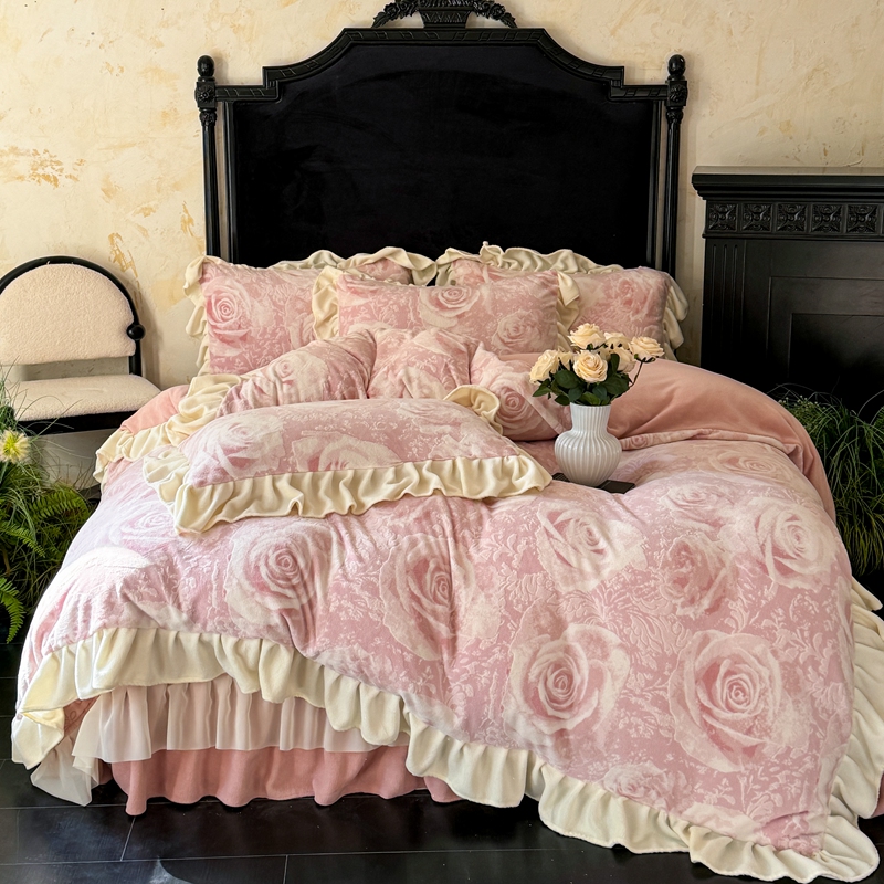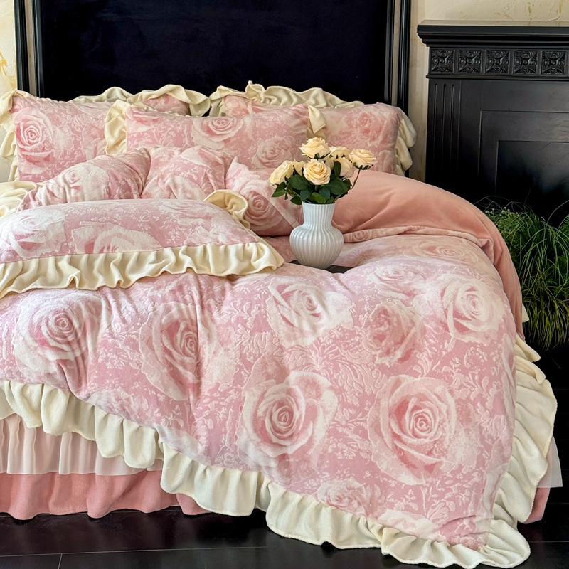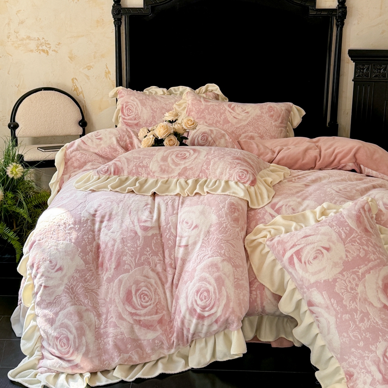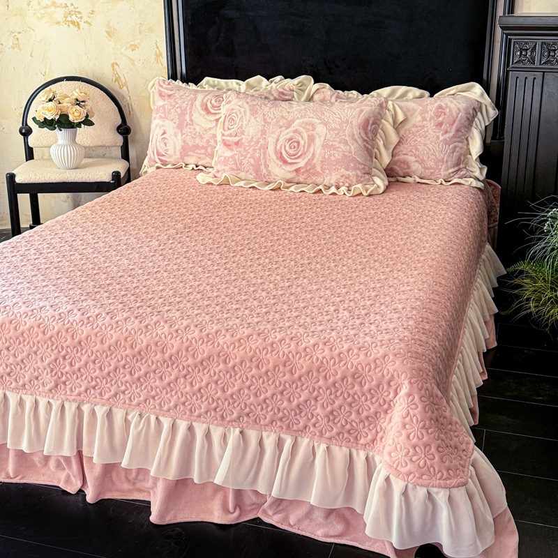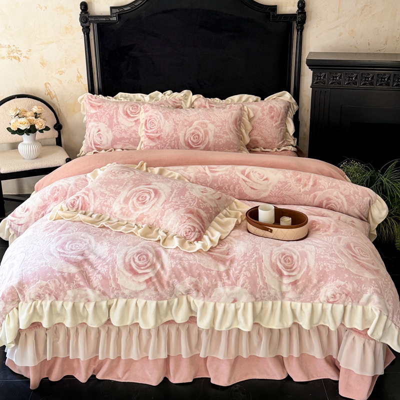 商品名称:大麦家纺 2024新款高克重牛奶绒夹棉床盖四件套 玫瑰粉