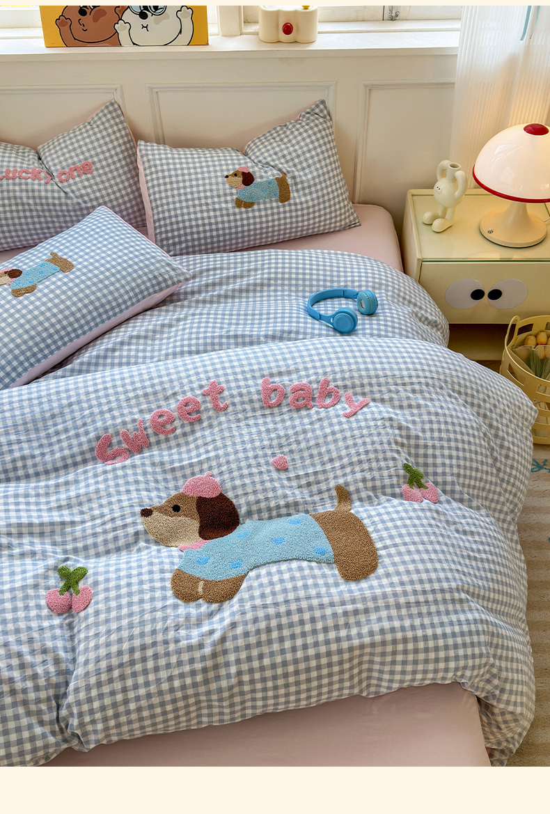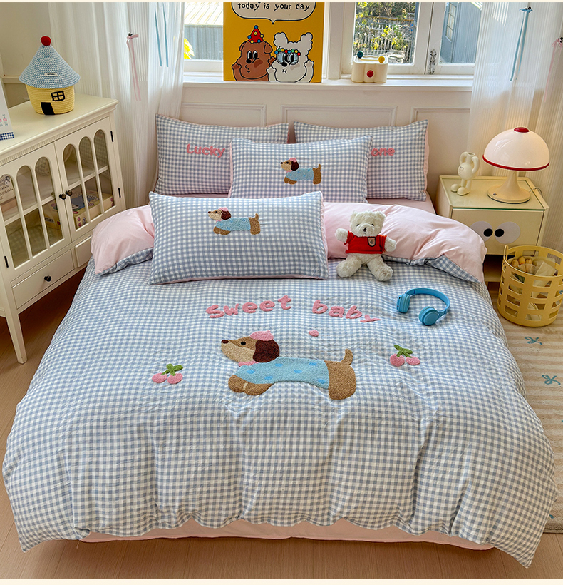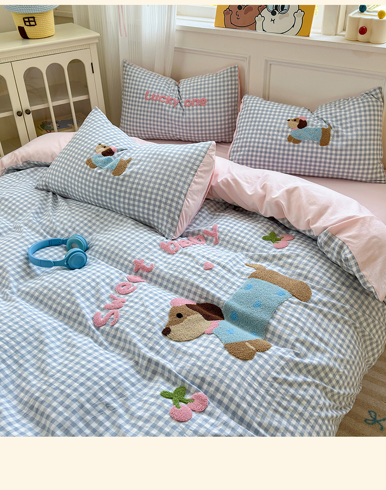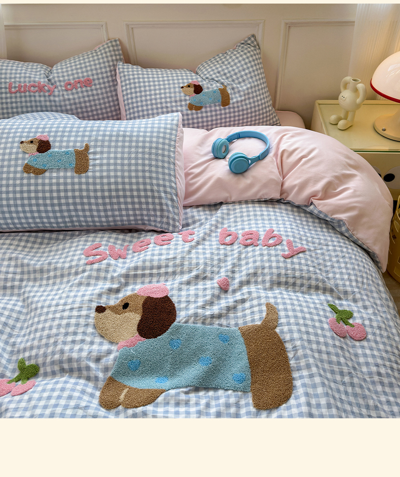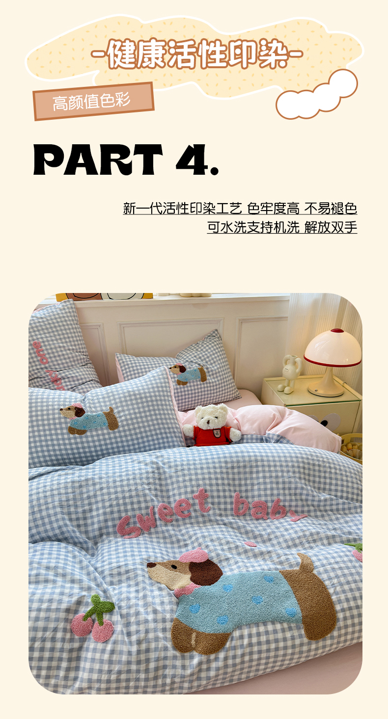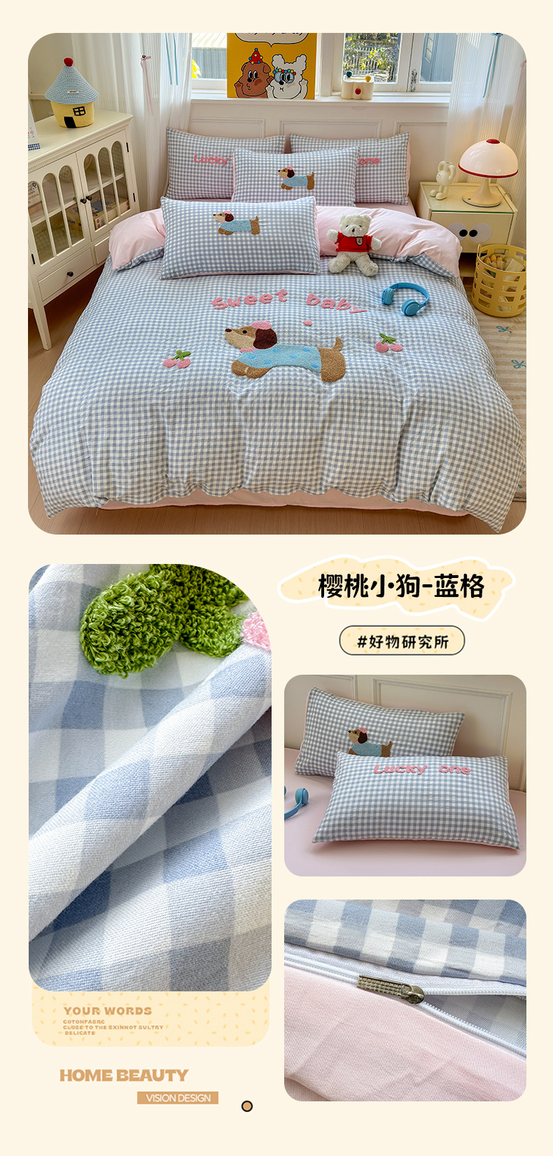 商品名称:(总)罗亿家纺 2025新款云朵糯糯棉(110g)腊肠狗毛巾绣四件套