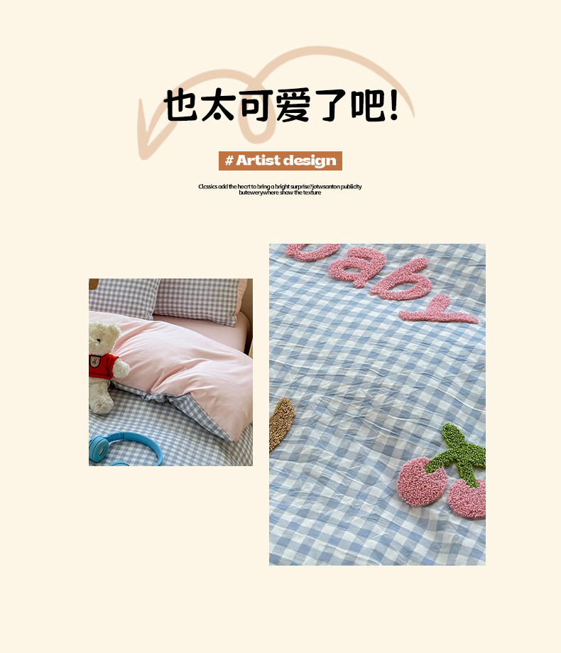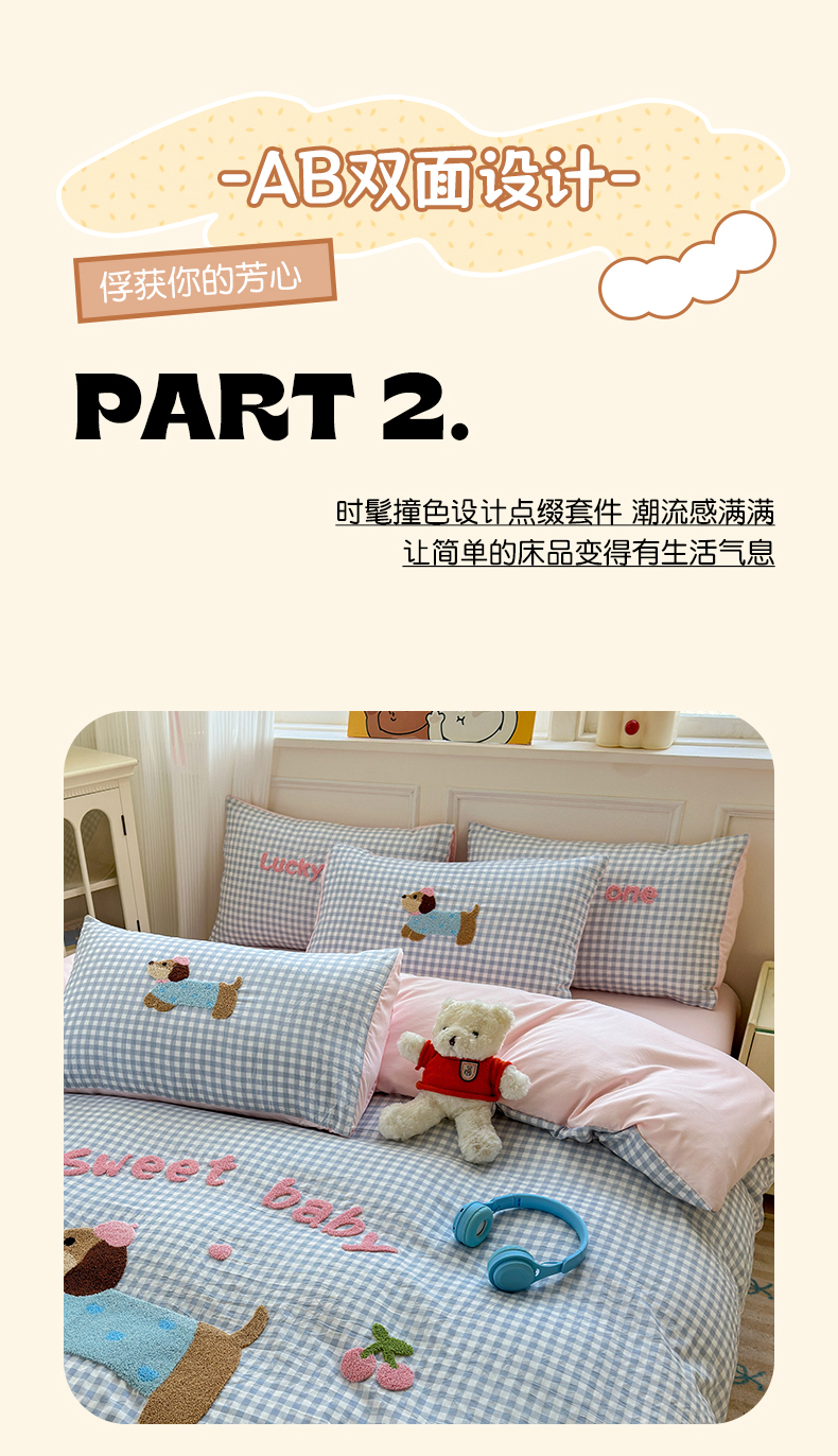(总)罗亿家纺 2026新款A类古法水洗仿棉云感纱四件套,俏皮豹纹-kt-粉,小幸运,花颜,甜品小猫,爱心甜猫,梦境花园,芝士莓莓熊,蝴蝶结,冰淇淋超甜,奶味星人,狗狗乐园,花花kt梦,小时光,小鱼的心事,旋转木马,樱桃格格,葡萄很甜,花集小兔,焦糖LABUBU,梦幻乐园,绿萌兔子,烟花星语