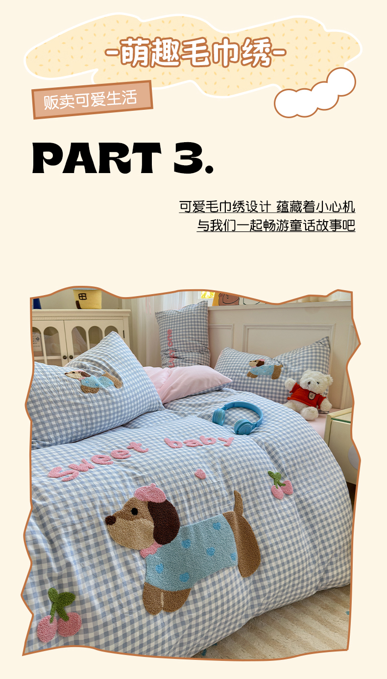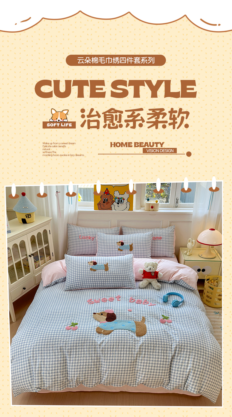 (总)罗亿家纺 2025新款云朵糯糯棉(110g)腊肠狗毛巾绣四件套