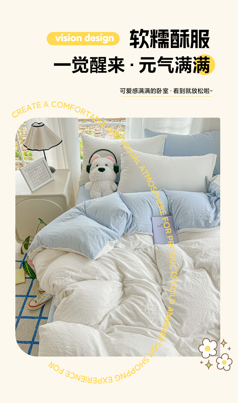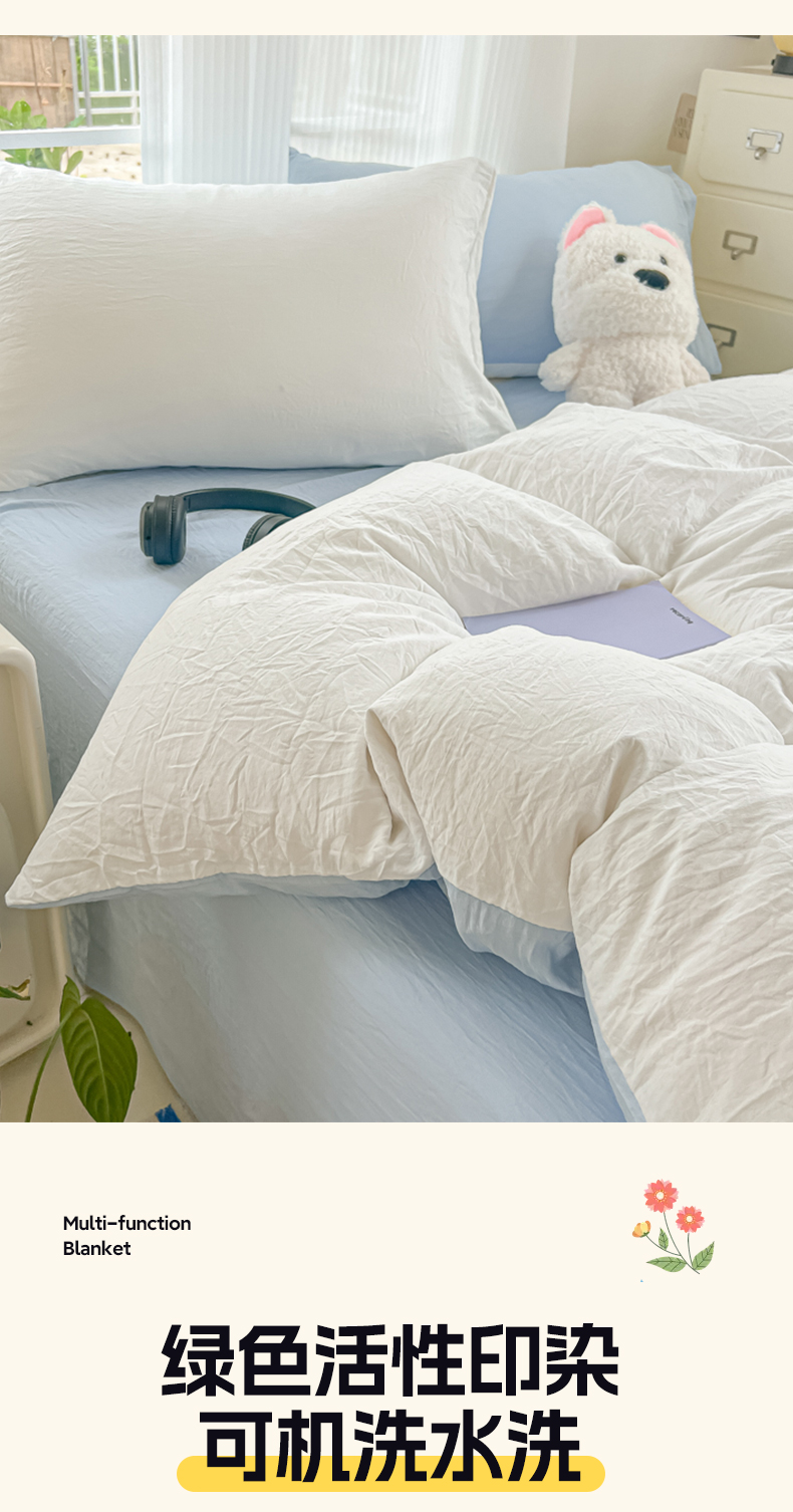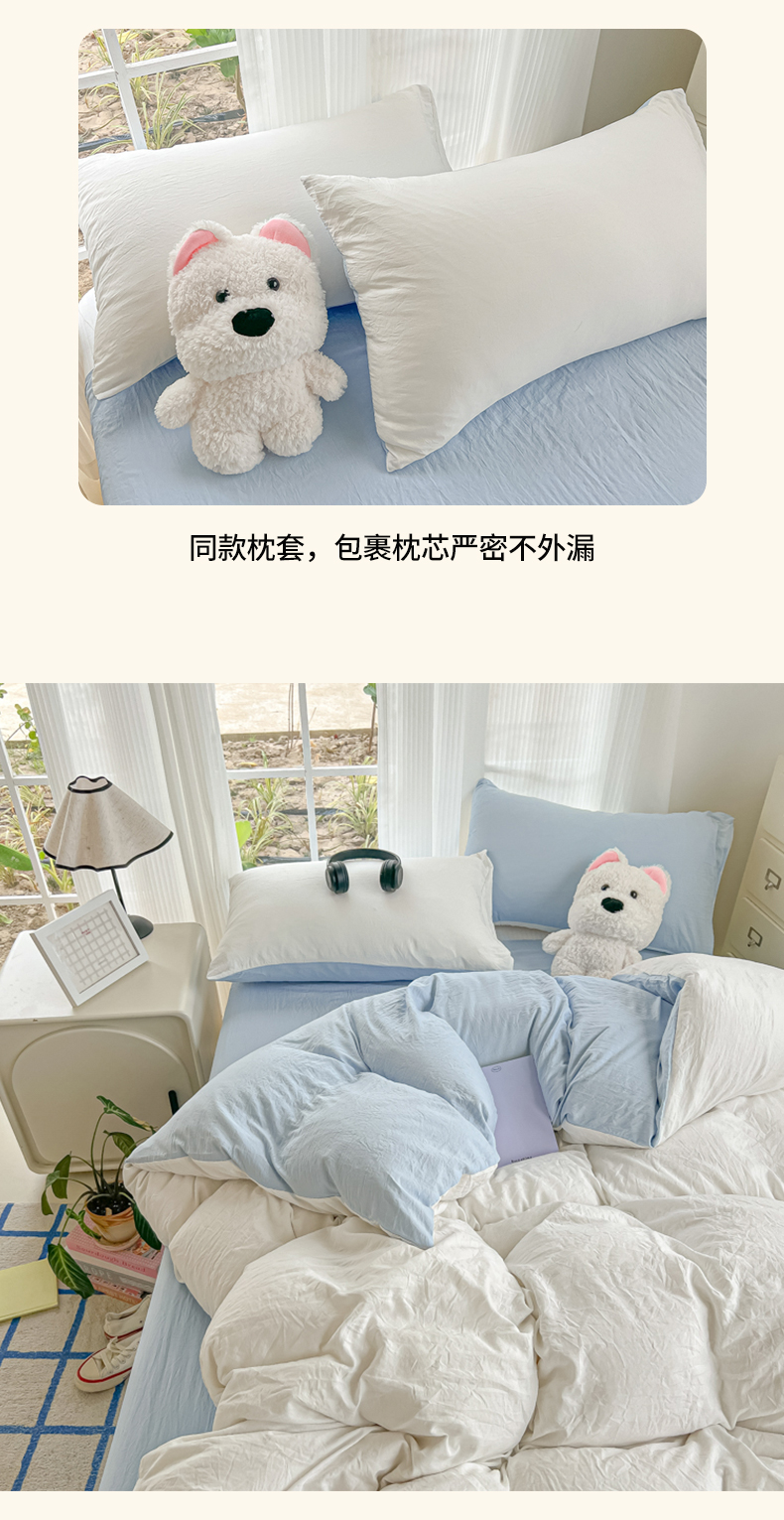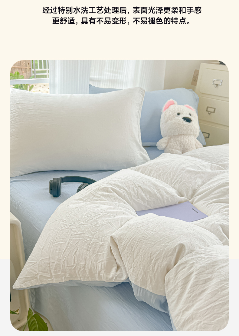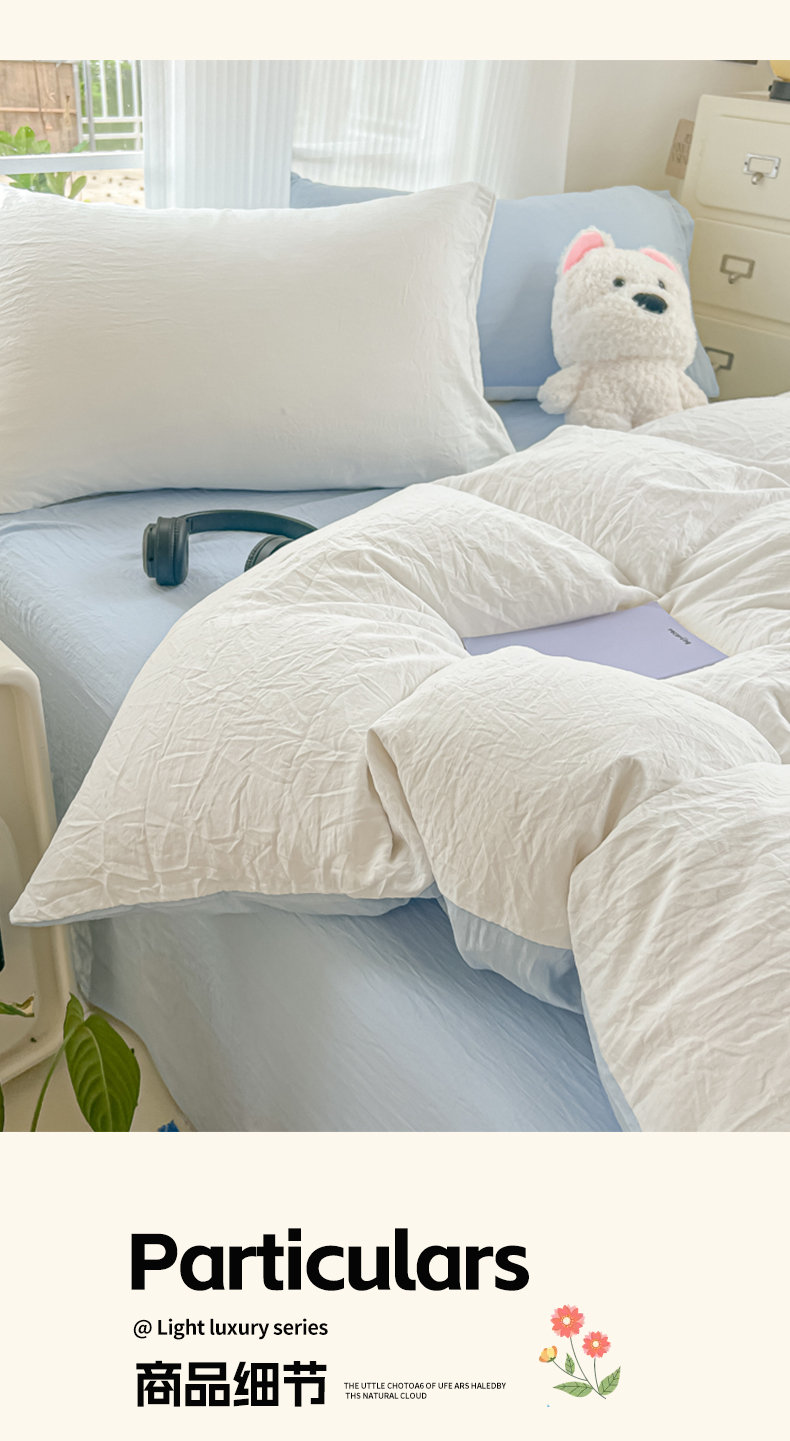 当前位置: 91家纺网 > 商品网购 > 床品套件 > 四件套 > 水洗棉四件套 > 韩巢家纺 2025新款ins风超柔水洗棉四件套-纯色双拼系列(提供卖家秀) 水洗棉白蓝