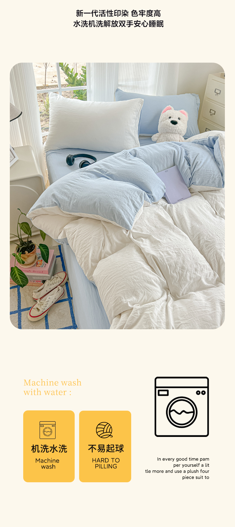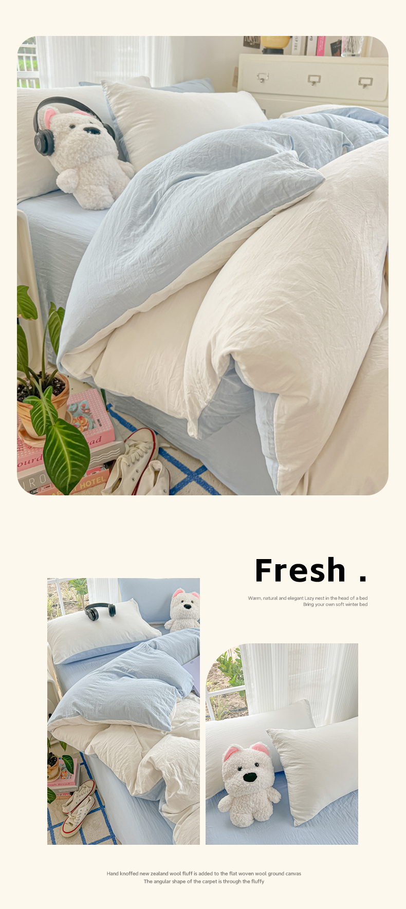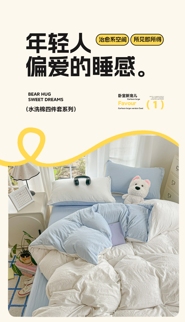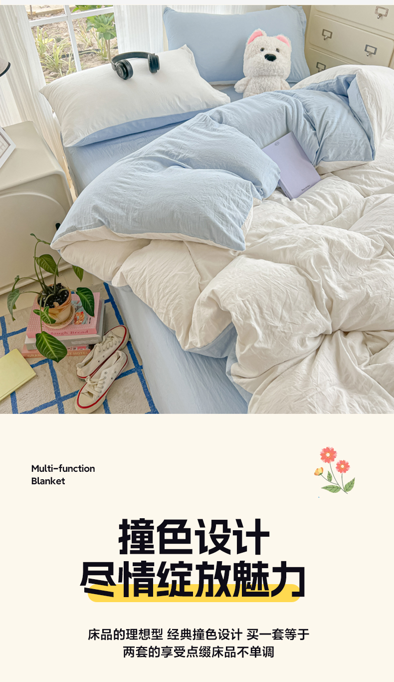 当前位置: 91家纺网 > 商品网购 > 床品套件 > 四件套 > 水洗棉四件套 > 韩巢家纺 2025新款ins风超柔水洗棉四件套-纯色双拼系列(提供卖家秀) 水洗棉白蓝