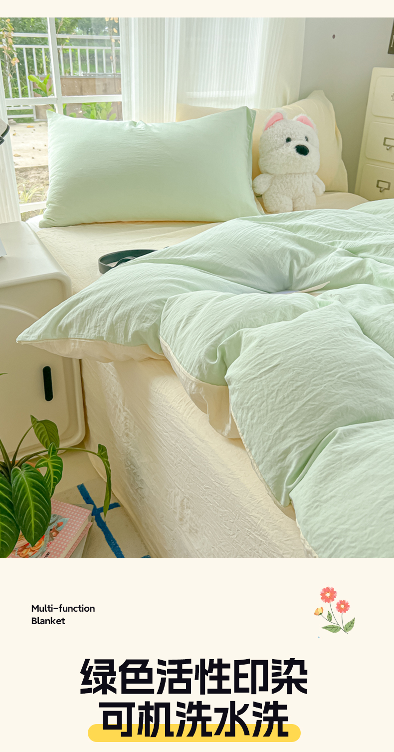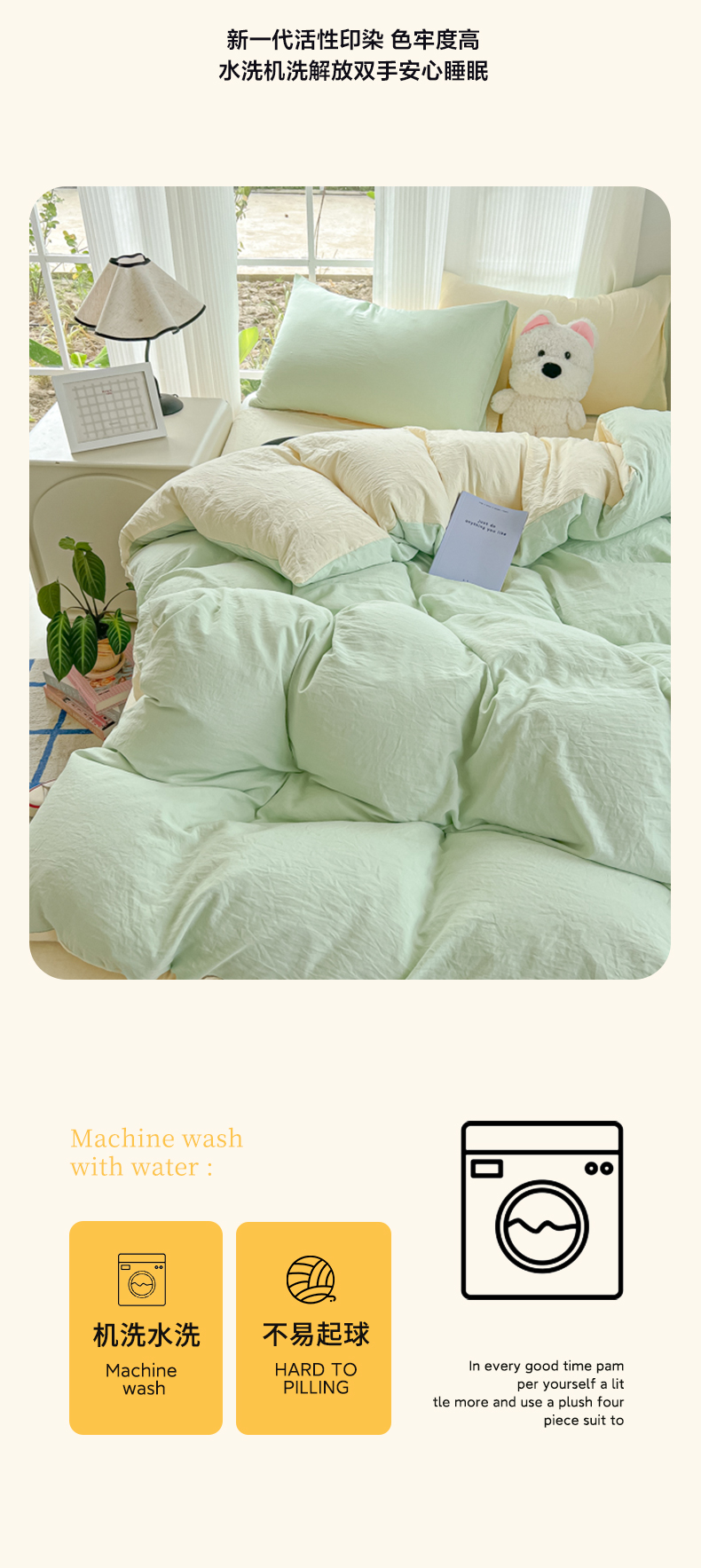 当前位置: 91家纺网 > 商品网购 > 床品套件 > 四件套 > 水洗棉四件套 > 韩巢家纺 2025新款ins风超柔水洗棉四件套-纯色双拼系列(提供卖家秀) 水洗棉浅绿黄