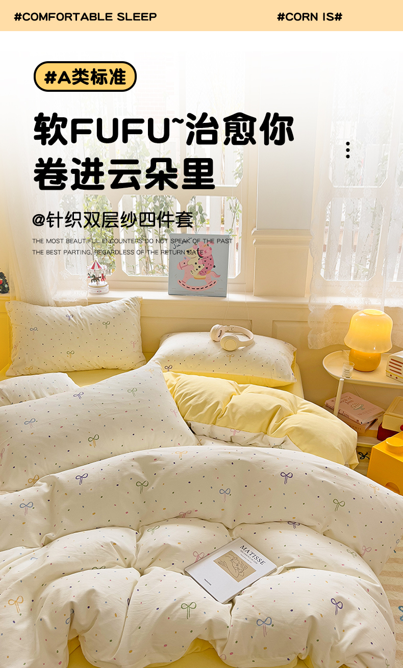 当前位置: 91家纺网 > 商品网购 > 床品套件 > 四件套 > 其它四件套 > 名品家纺 2025新款针织棉双层纱四件套-风格二 奶油派