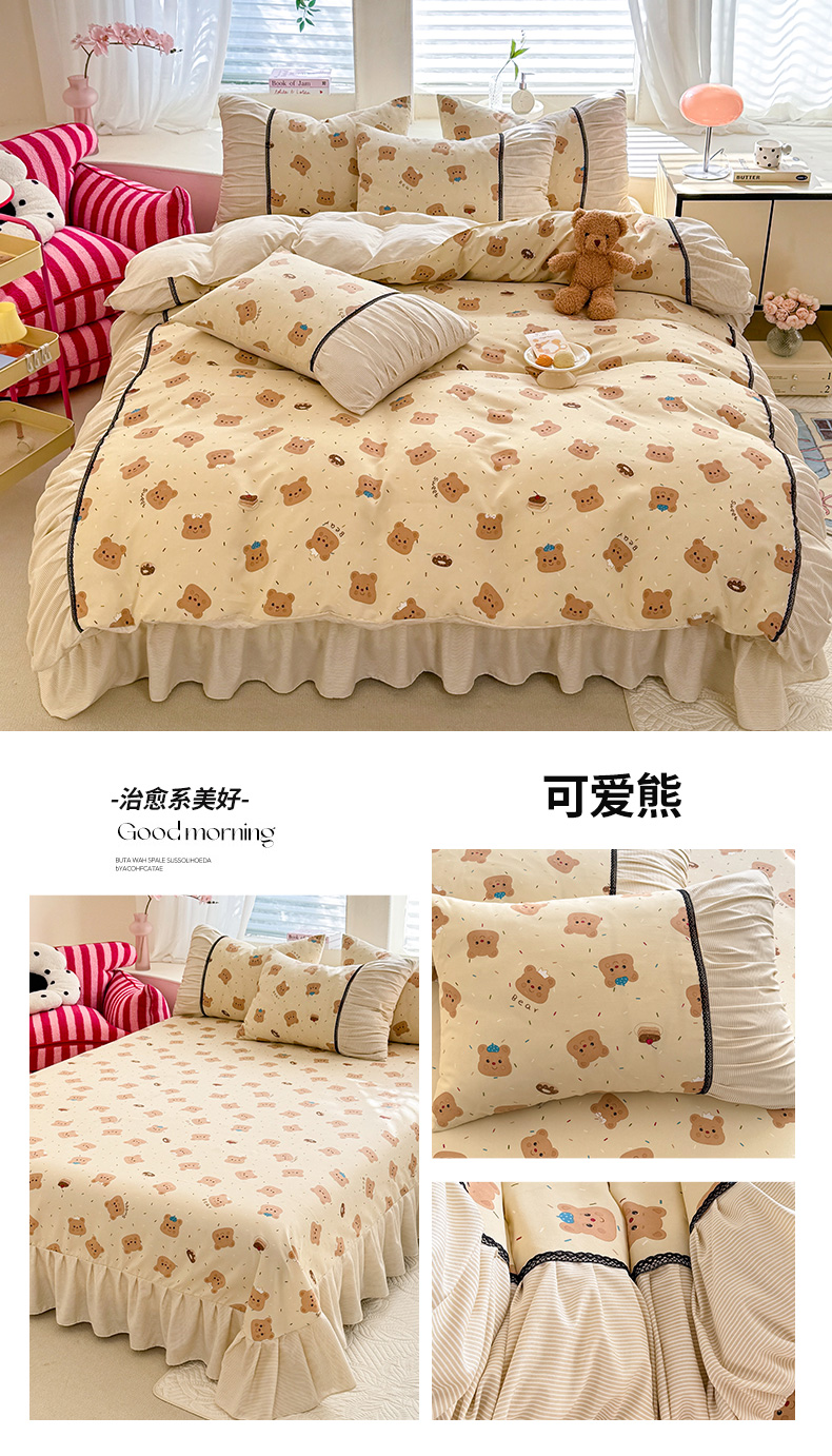 商品名称:芭比蔓家纺 2025新款磨毛法式浪漫复古四件套 可爱熊