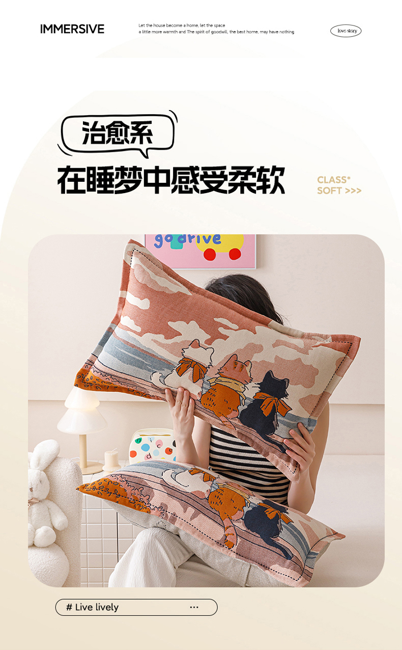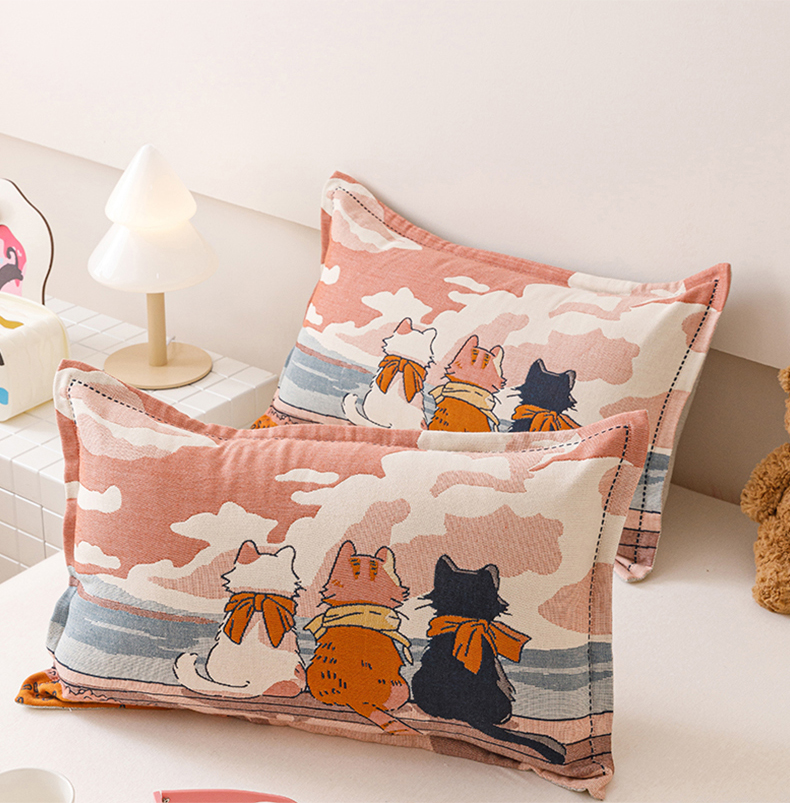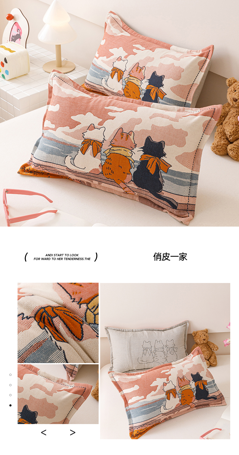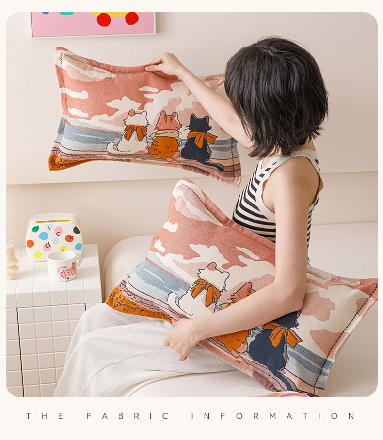 悦然毛巾被 2025新款全棉四层纱布儿童枕套 俏皮一家