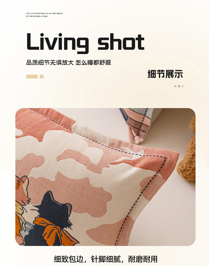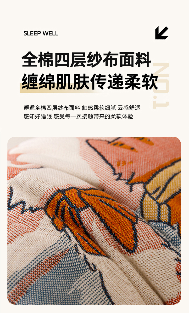 商品名称:悦然毛巾被 2025新款全棉四层纱布儿童枕套 俏皮一家