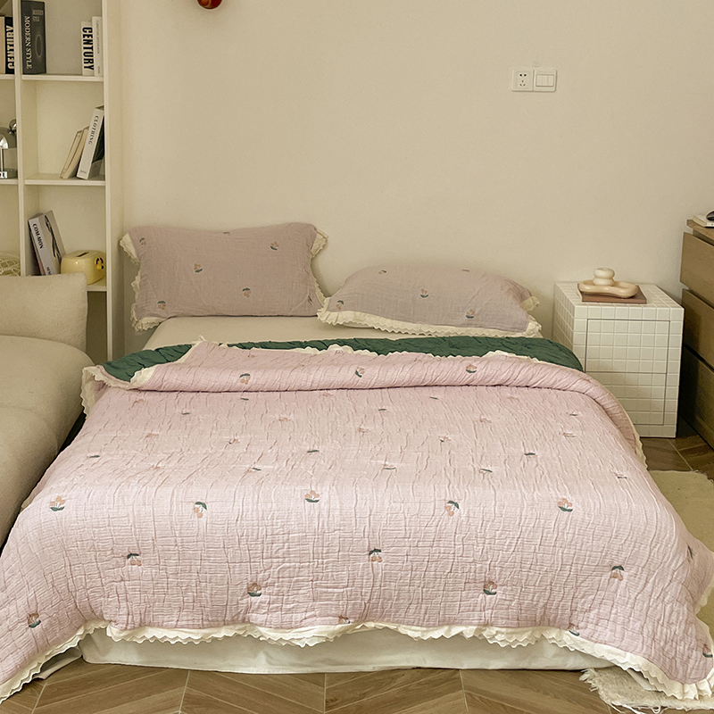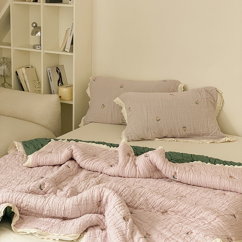 (总)麻依 2025新款韩国清新全棉纱布床盖三件套,憨憨熊,彩色南瓜,车厘子,两颗草莓,奶盖KT,奶油波点-灰,奶油彩点,水蓝KT,水墨花,丝带,桃心-米白,小猫鱼