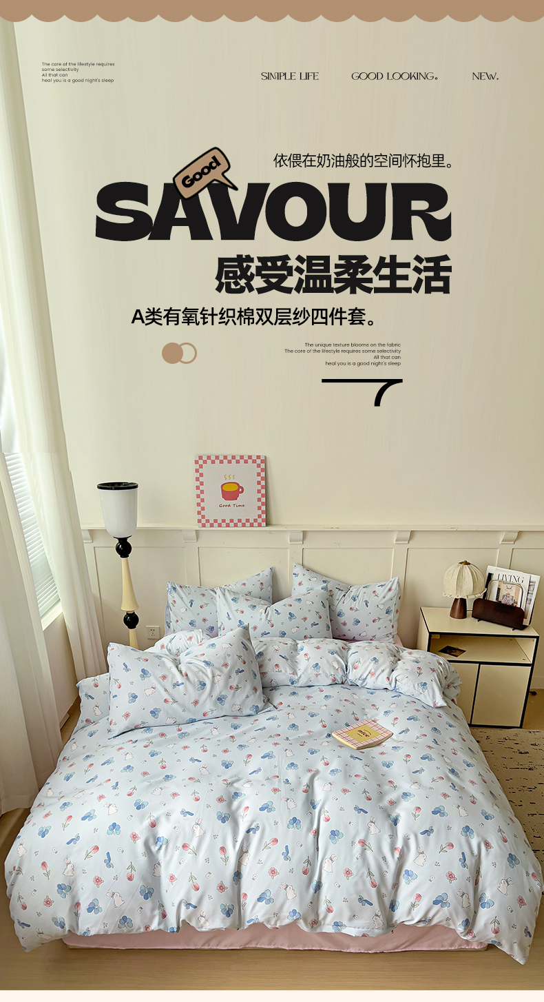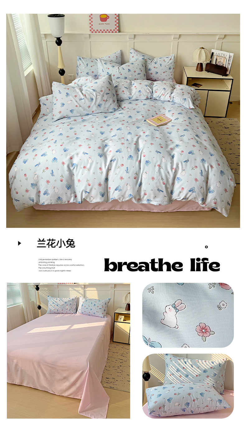 当前位置: 91家纺网 > 商品网购 > 床品套件 > 四件套 > 针织棉四件套 > 妖妖家纺 2025新款有氧针织棉双层纱四件套 兰花小兔