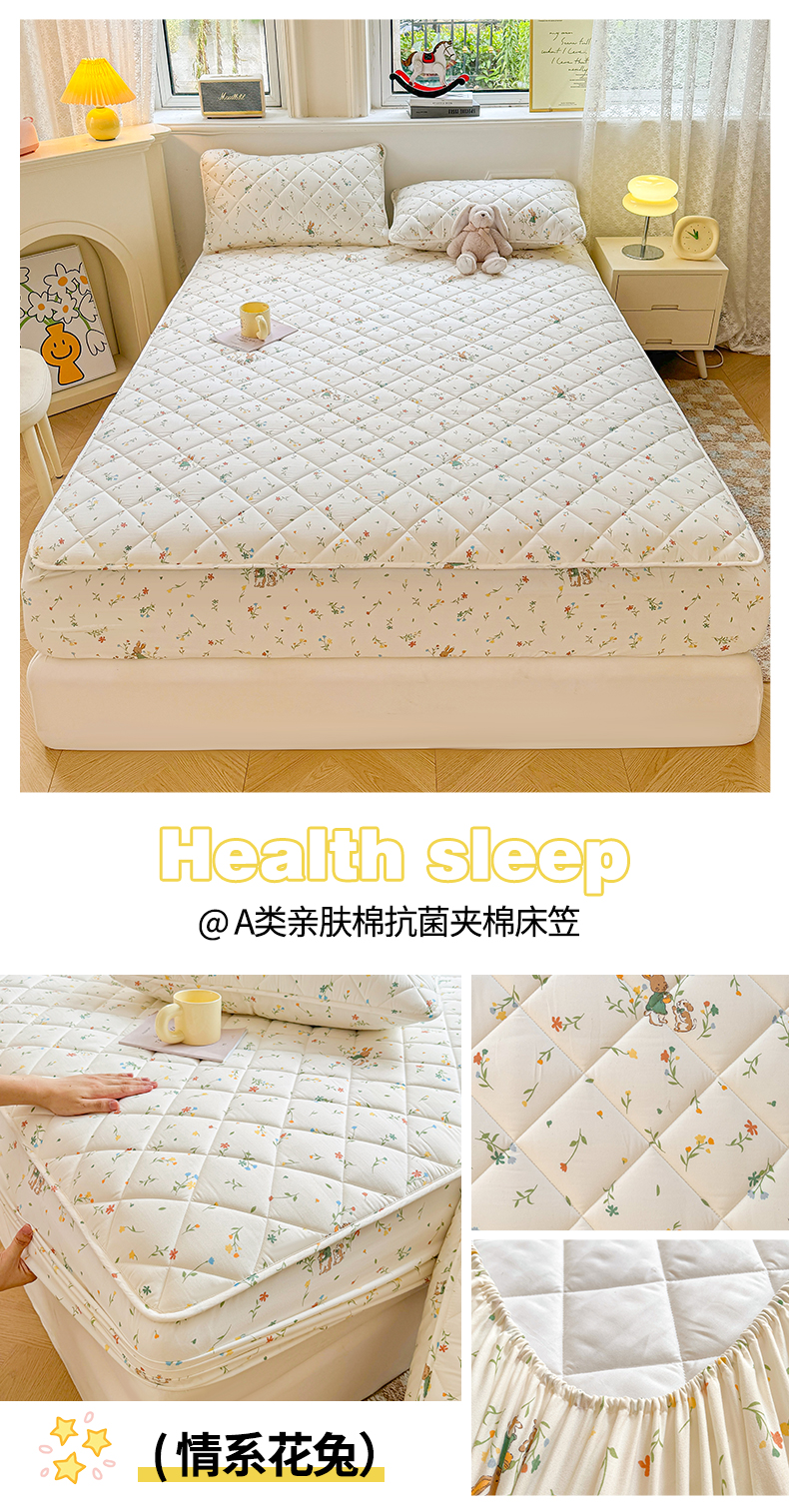 居眠 2025新款A类亲肤棉抗菌印花夹棉床笠 情系花兔