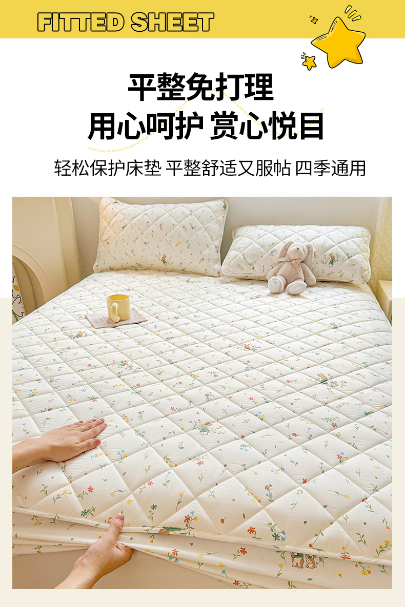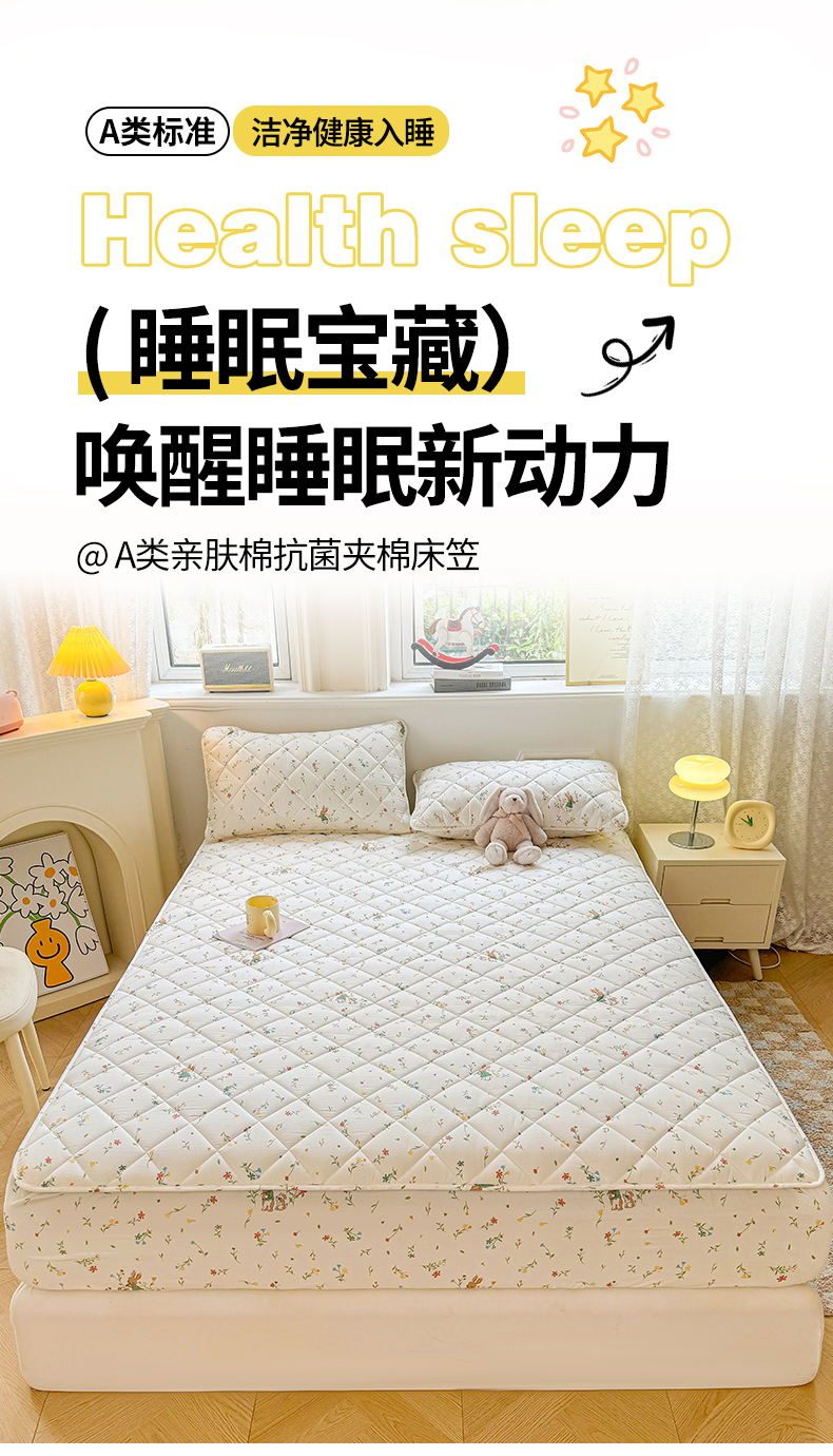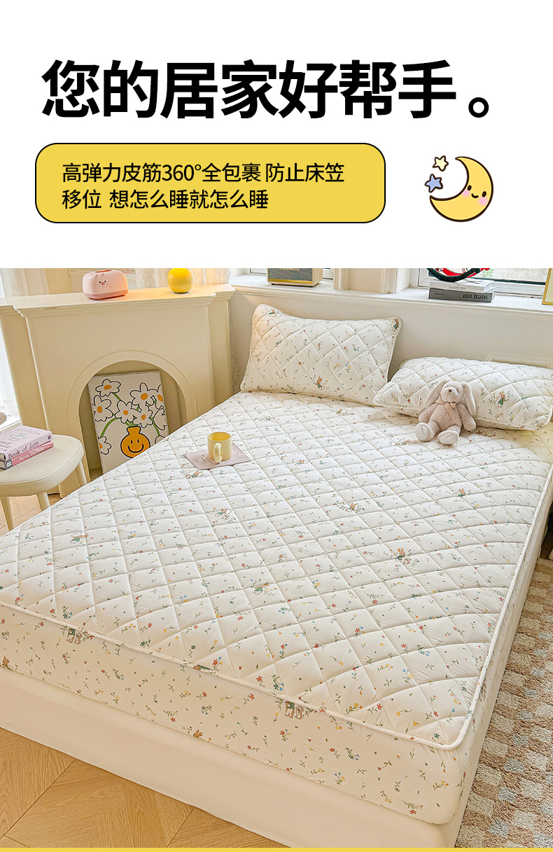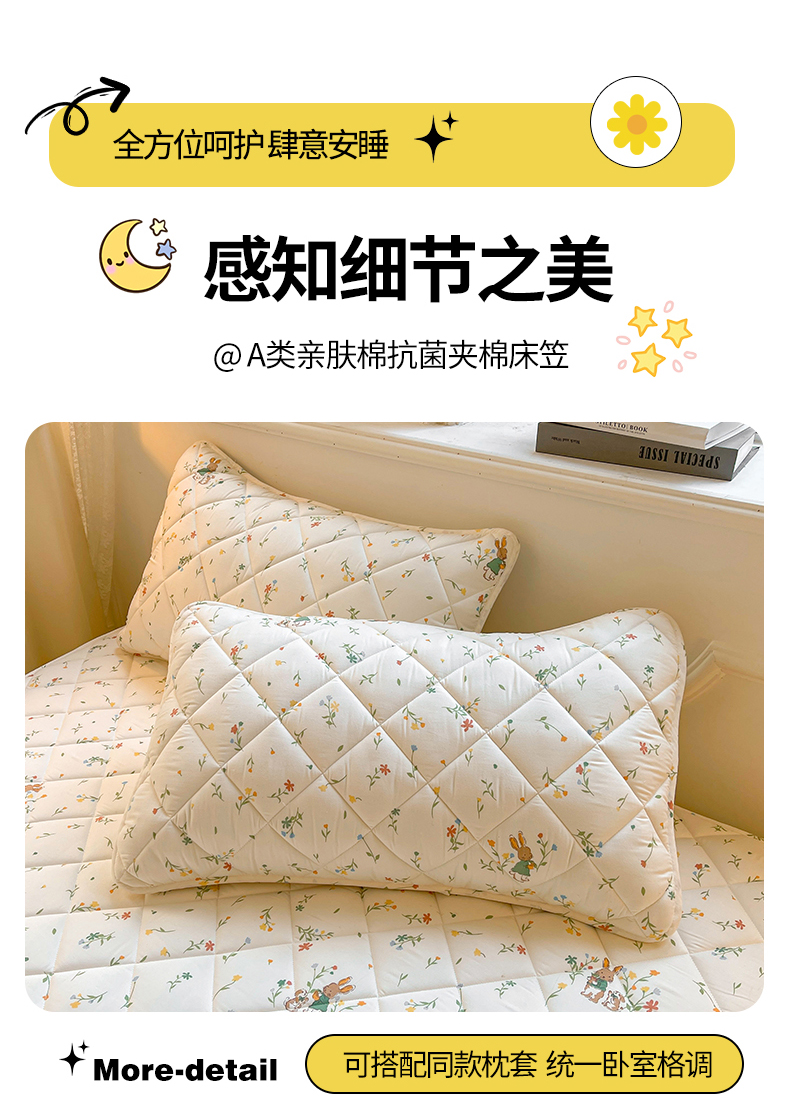 • 91家纺网 家纺一手货源 找家纺 居眠 2025新款A类亲肤棉抗菌印花夹棉床笠 情系花兔