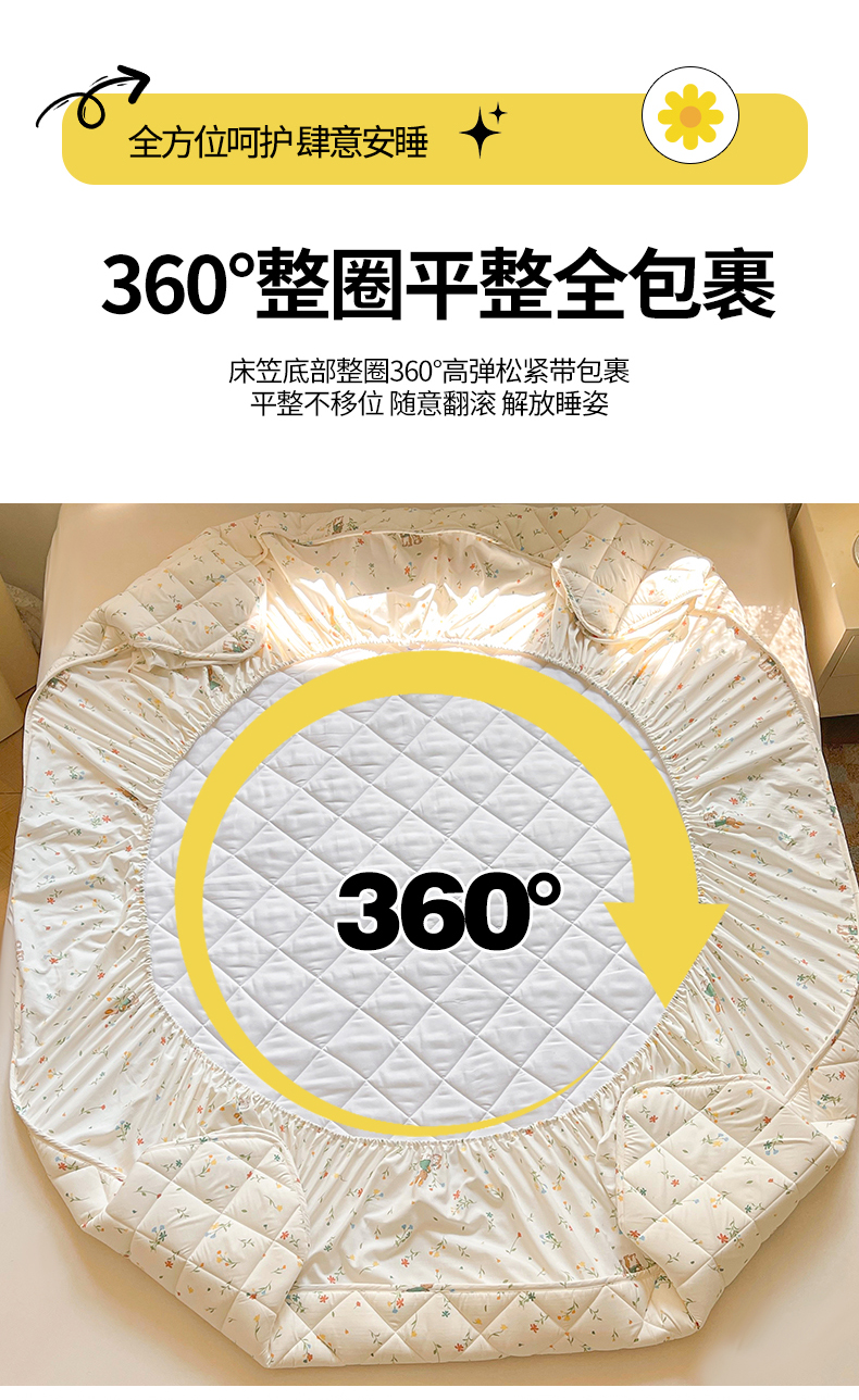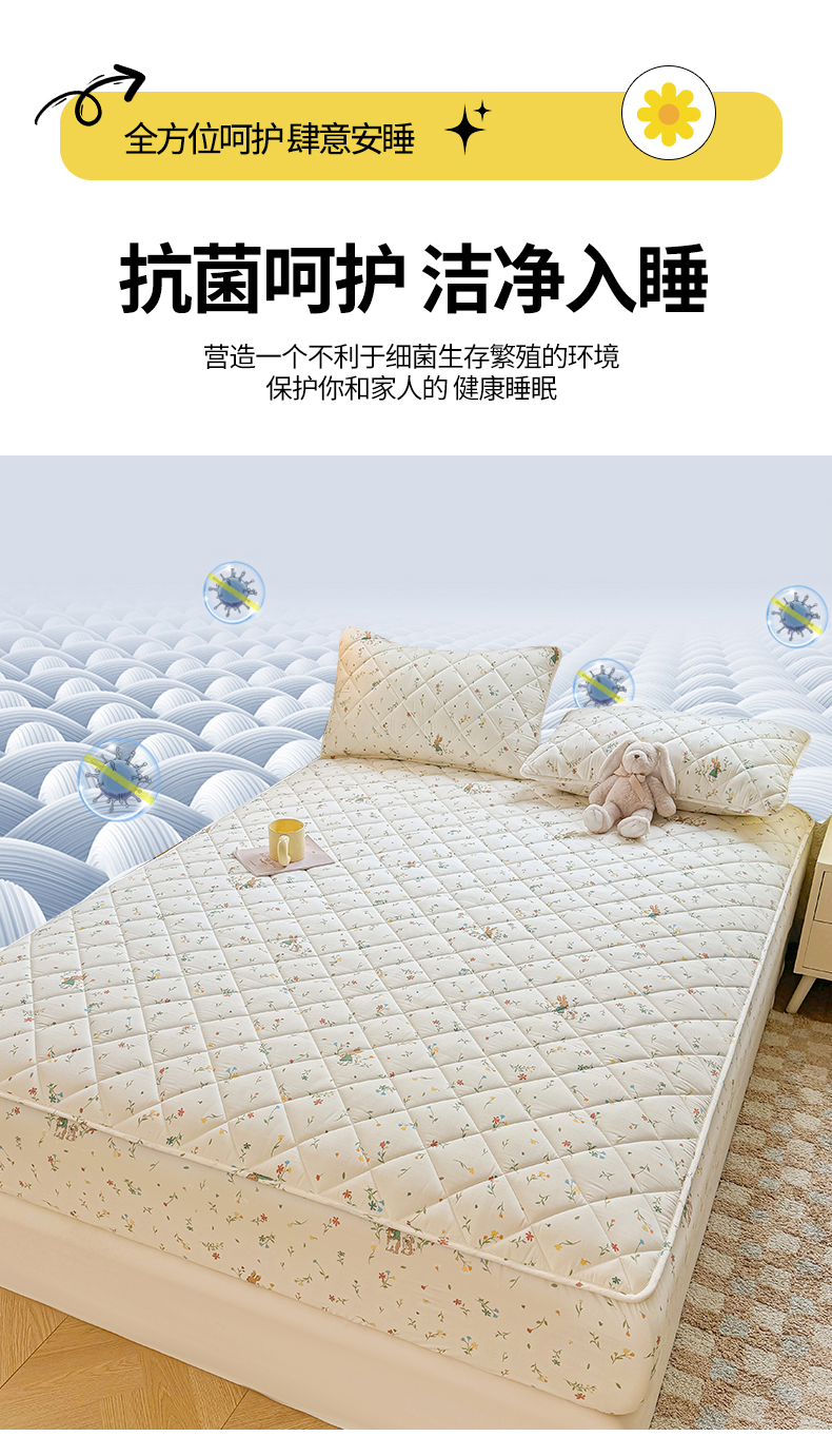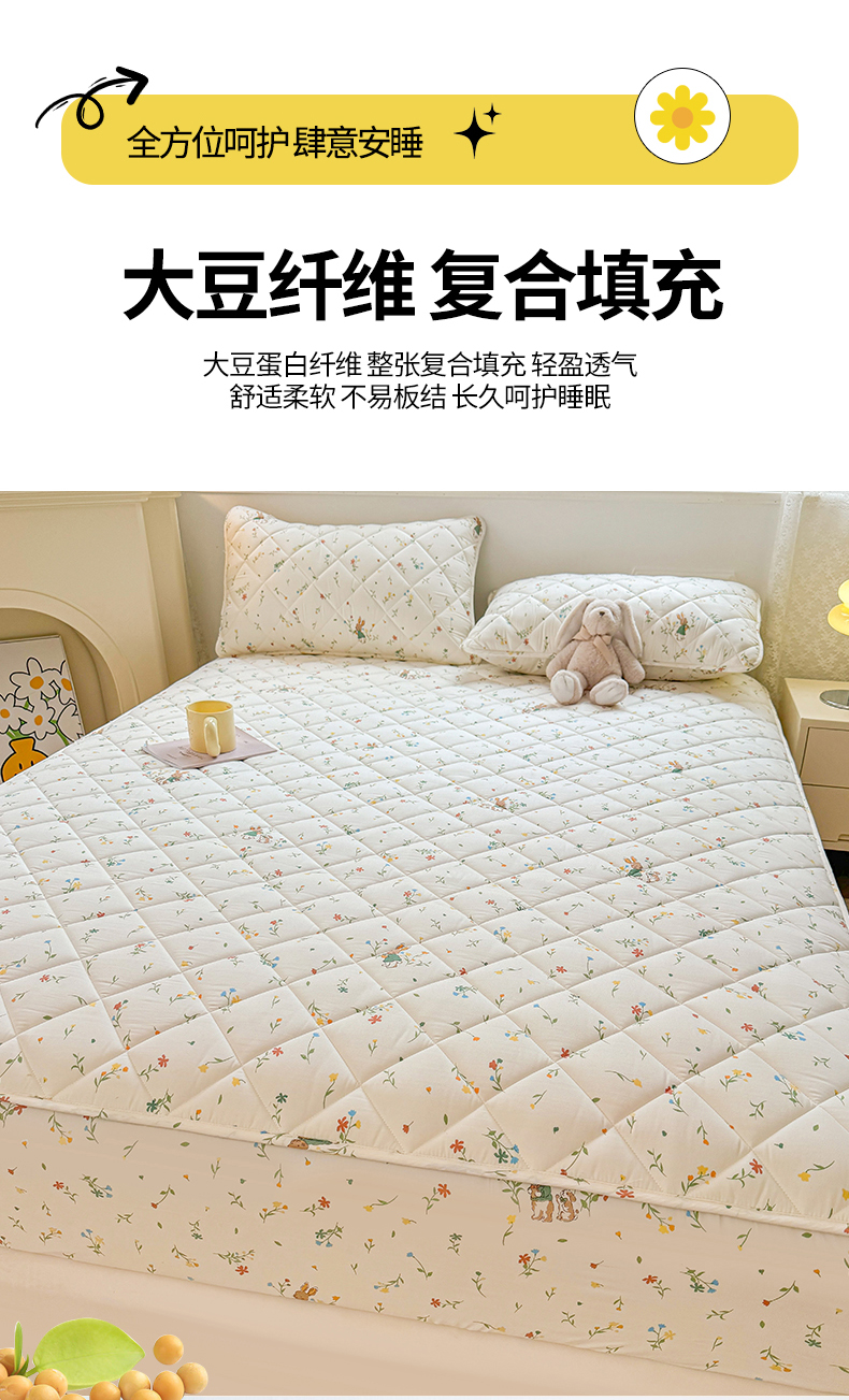 • 91家纺网 家纺一手货源 找家纺 居眠 2025新款A类亲肤棉抗菌印花夹棉床笠 情系花兔