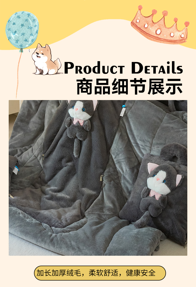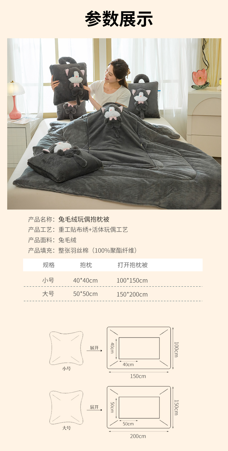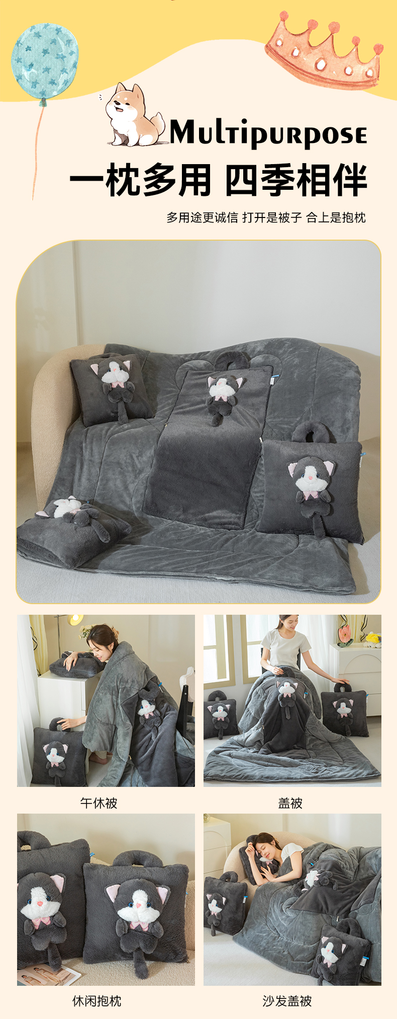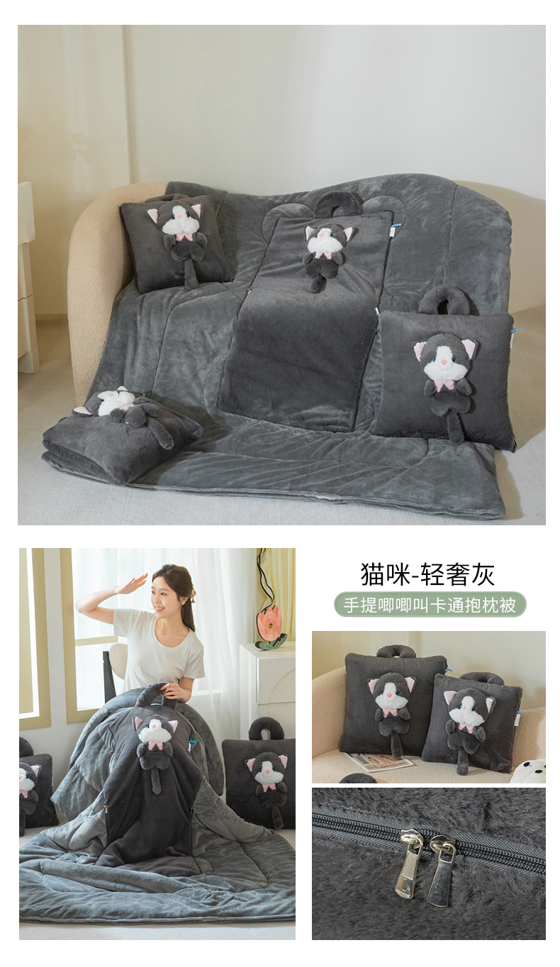 商品名称:2025新款手提唧唧叫卡通抱枕被 猫咪-轻奢灰