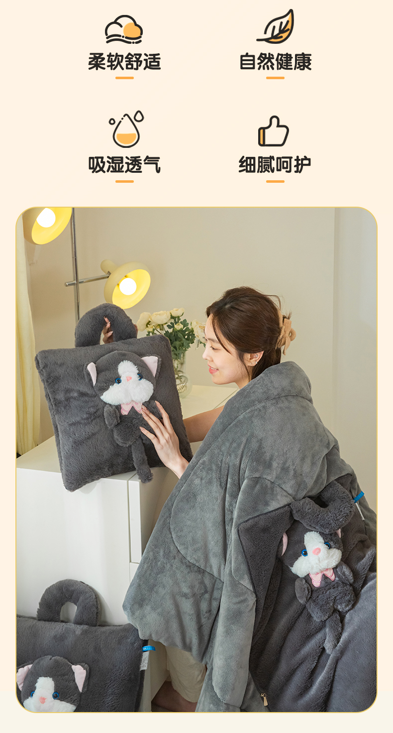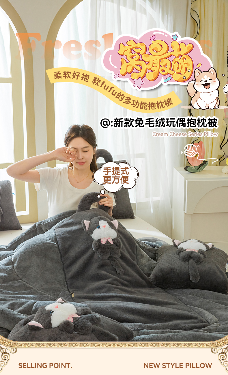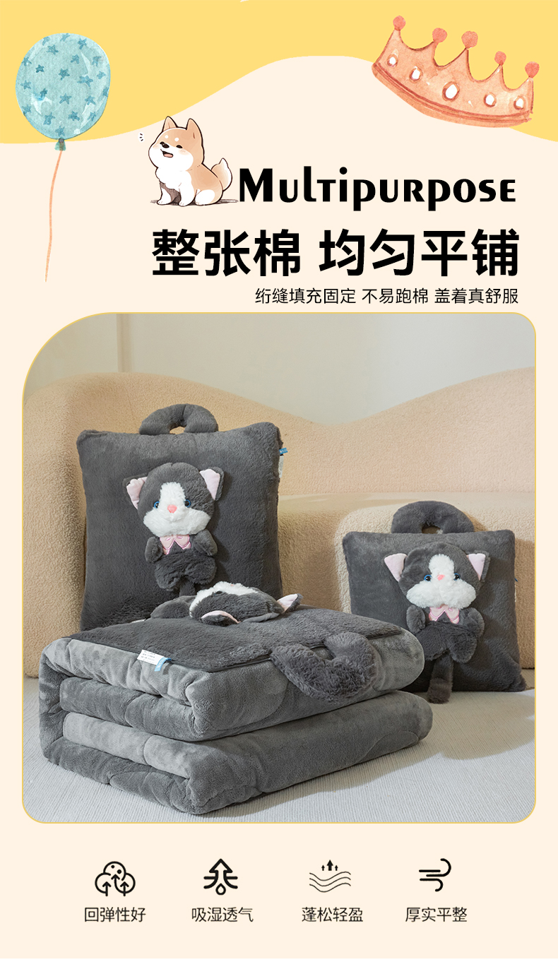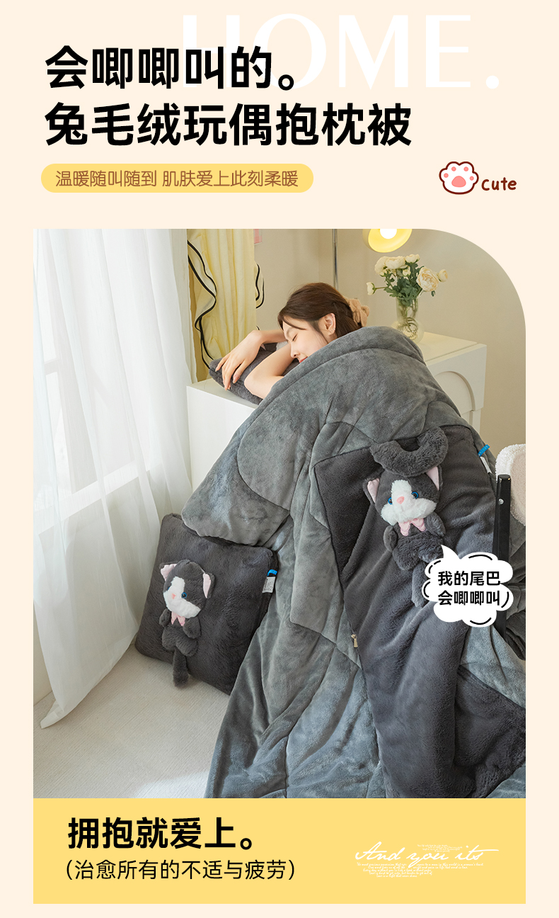 商品名称:2025新款手提唧唧叫卡通抱枕被 猫咪-轻奢灰