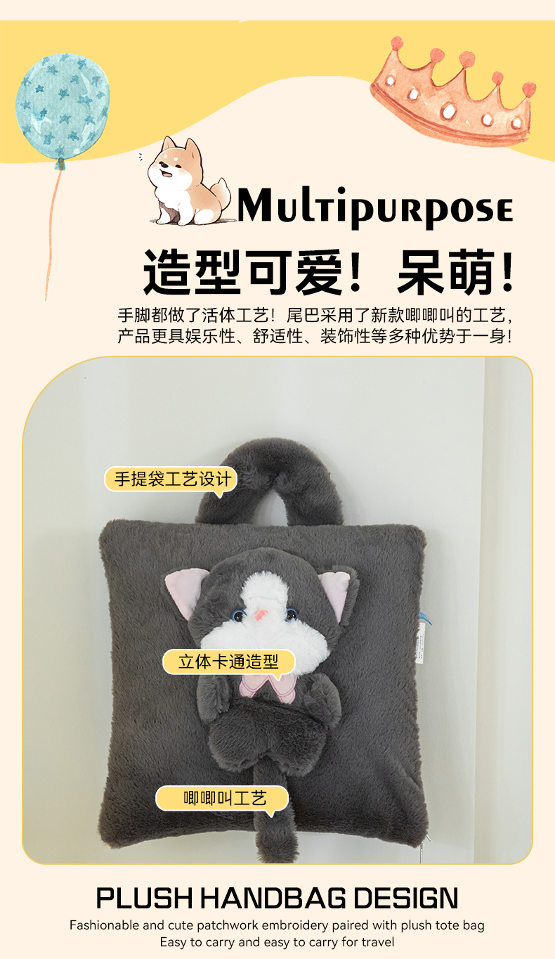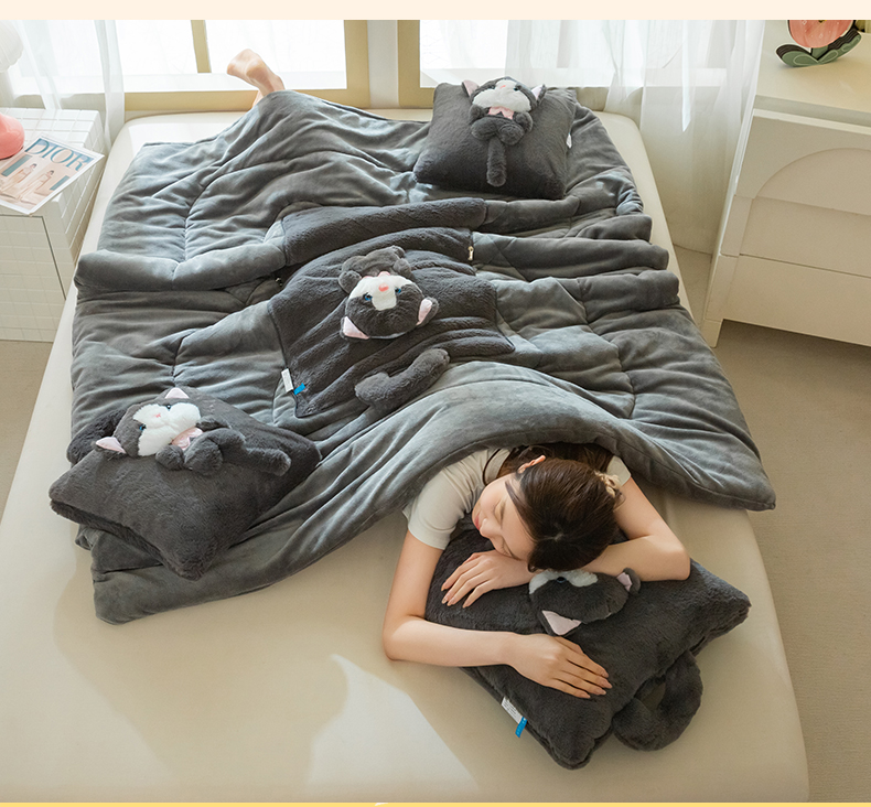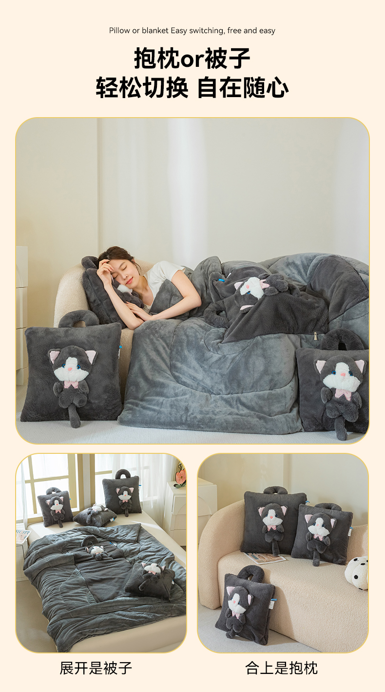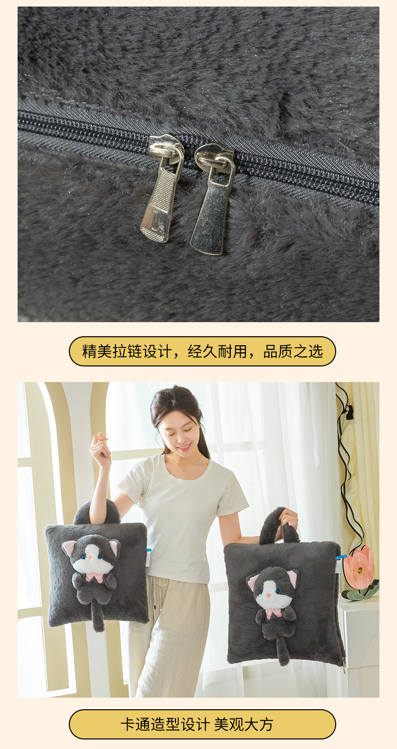 2025新款手提唧唧叫卡通抱枕被 猫咪-轻奢灰