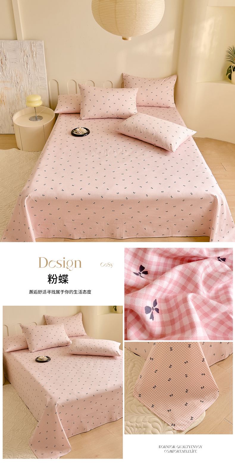 • 91家纺网 家纺一手货源 找家纺 DoDo 兜兜 【 可定制尺寸】2026新款全棉40支13372印花单床单 粉蝶