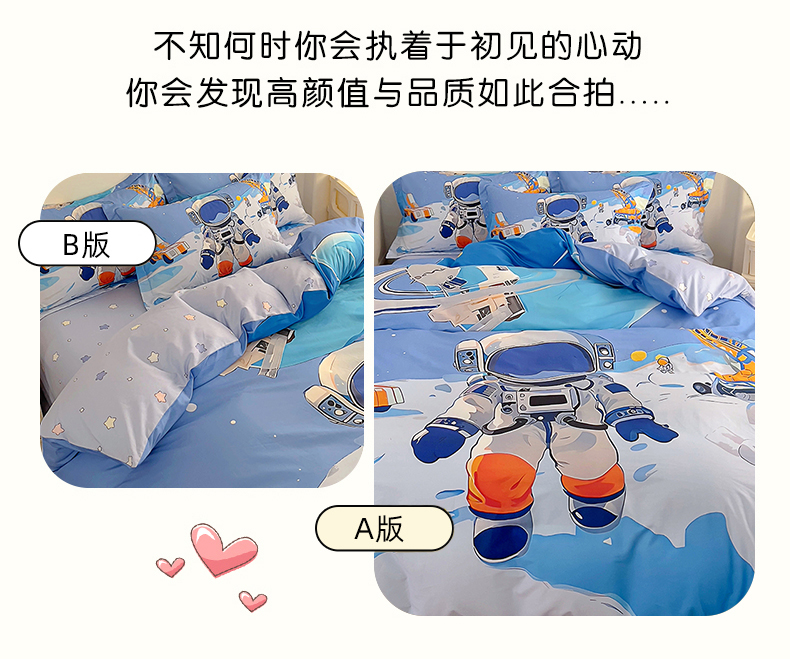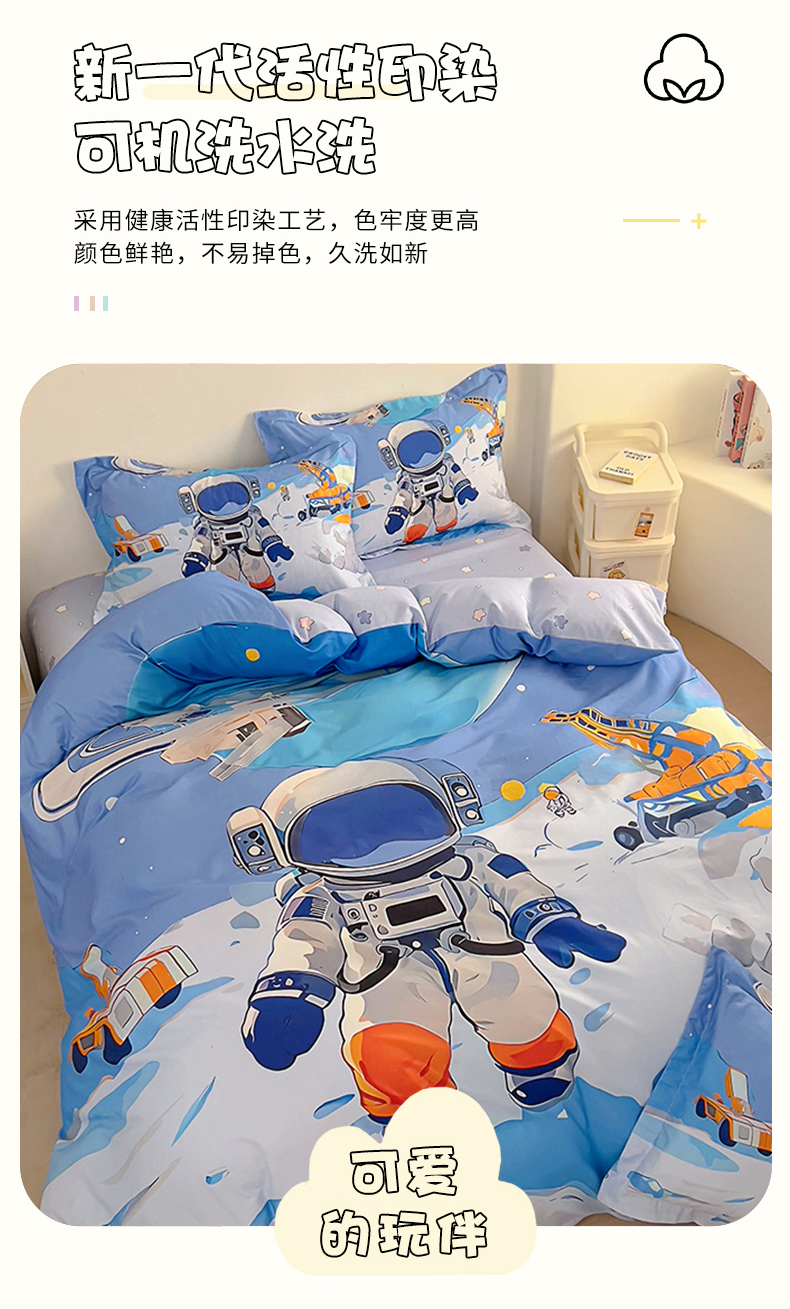(总)浩诚 2025新款全棉大版卡通太空人宇航员小恐龙小汽车系列纯棉四件套-提供买家秀