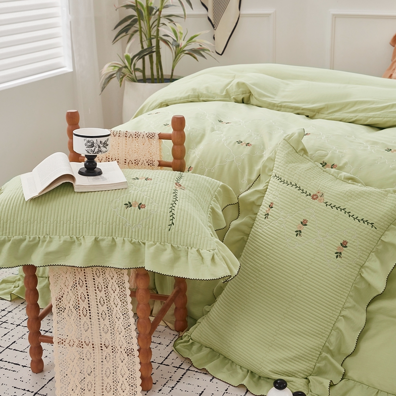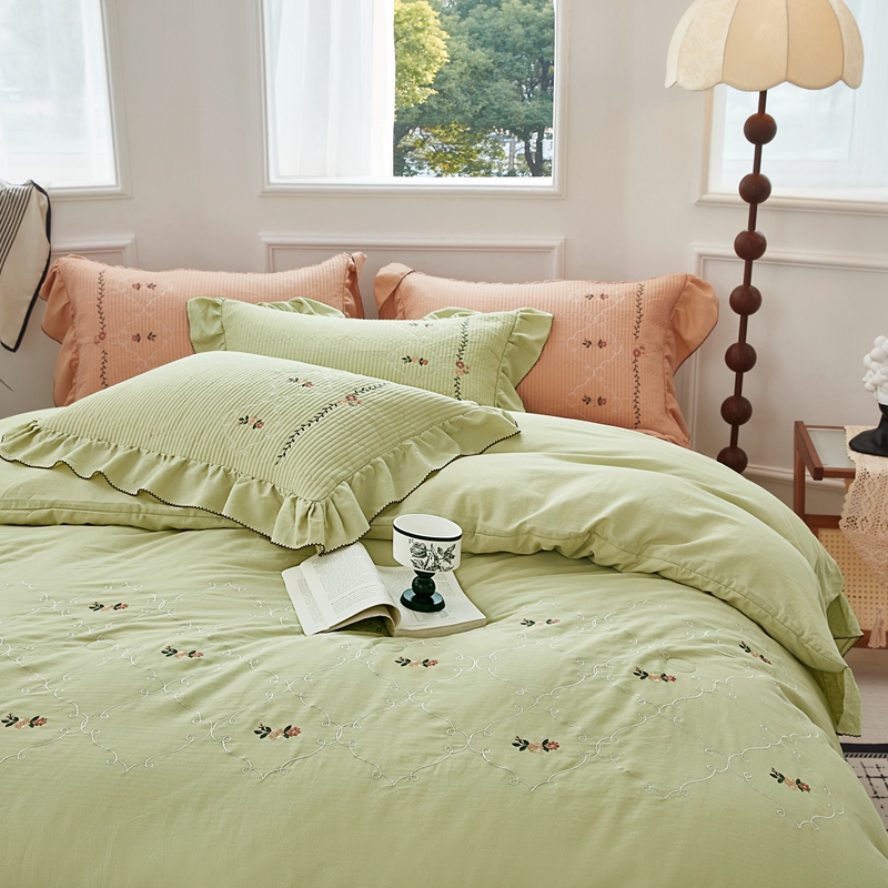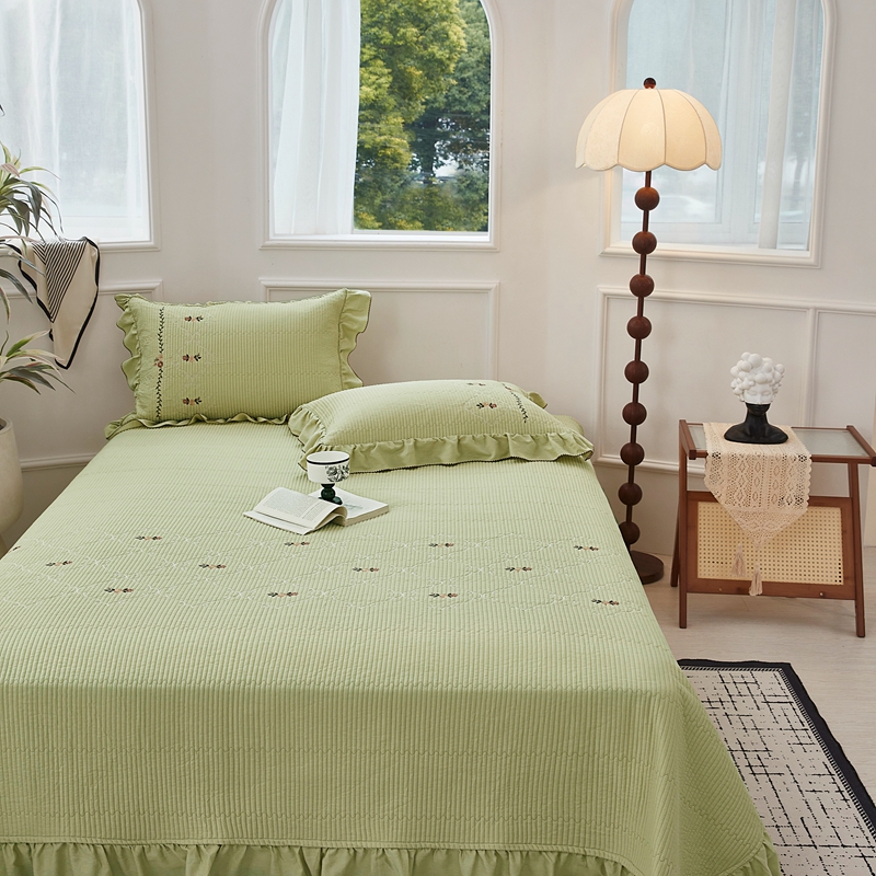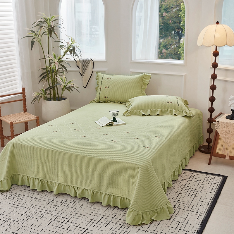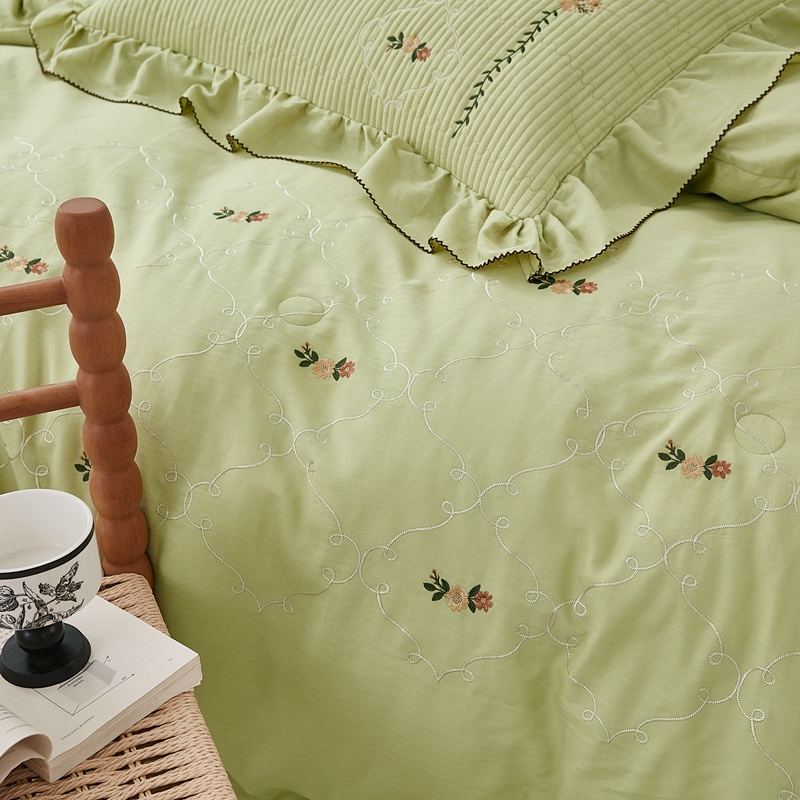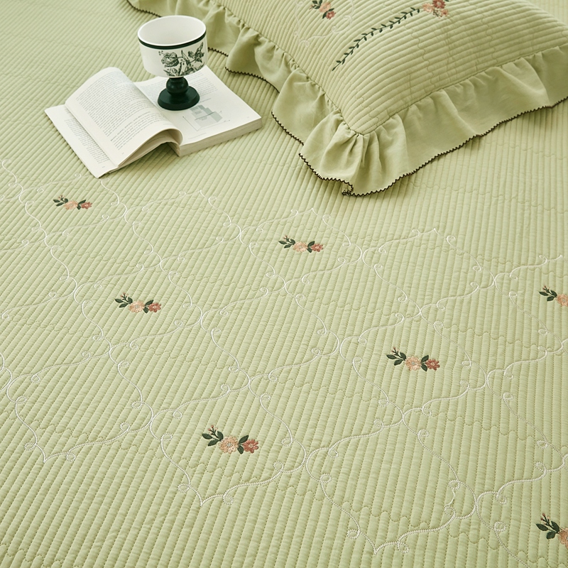 上喜 2025新款全棉提花刺绣款床盖四件套 绿色
