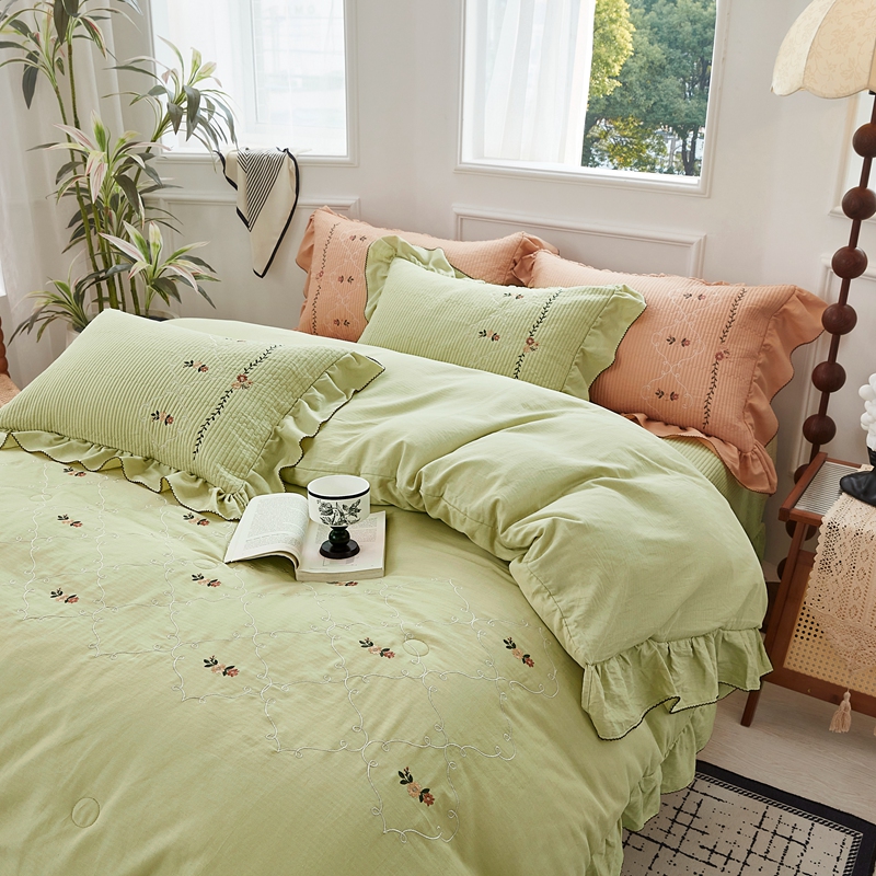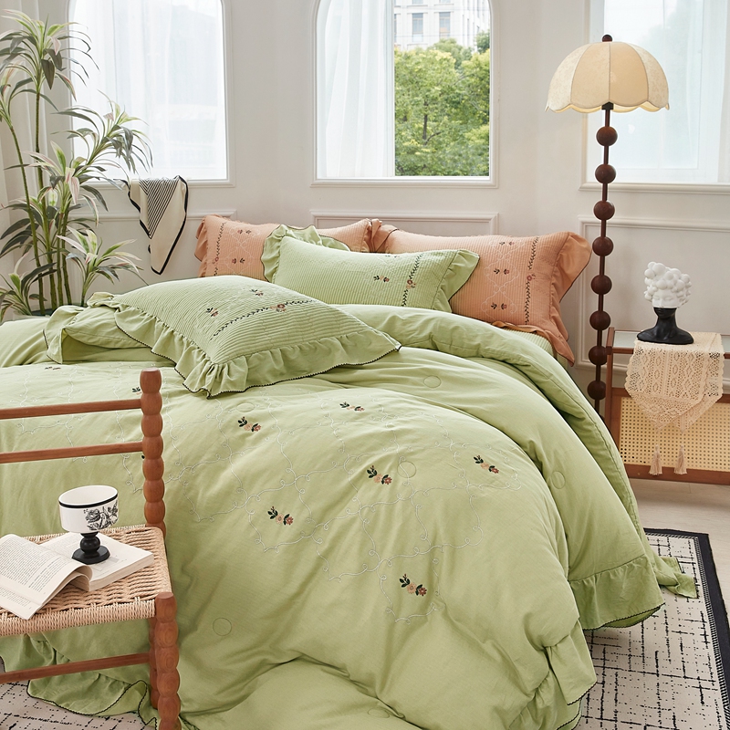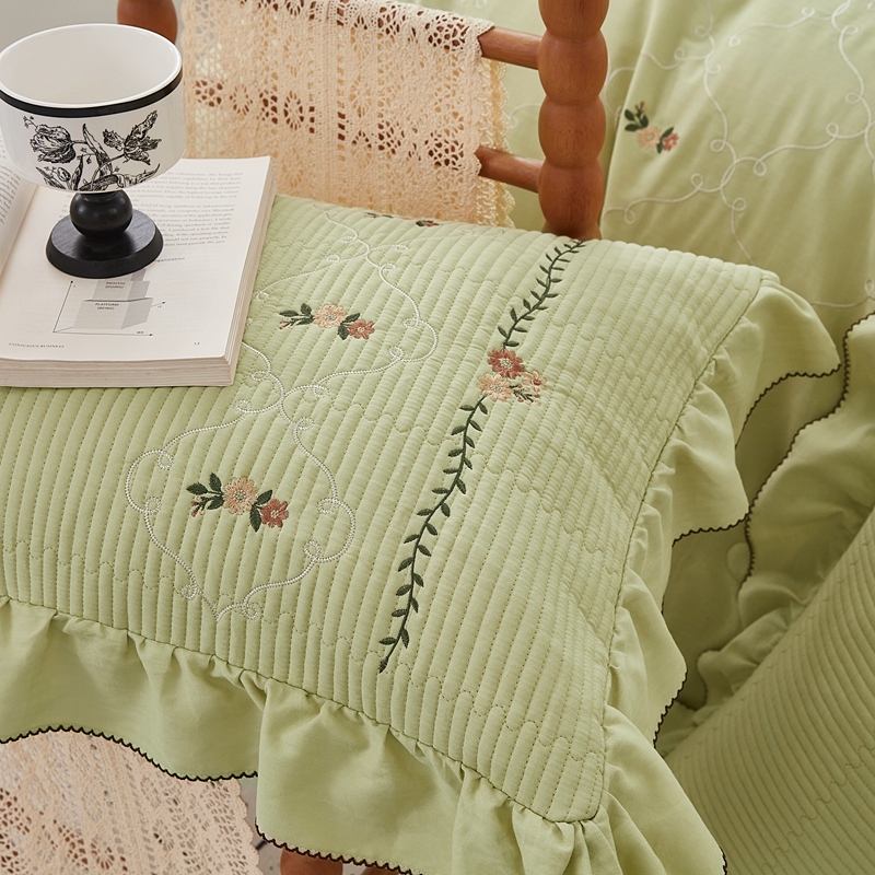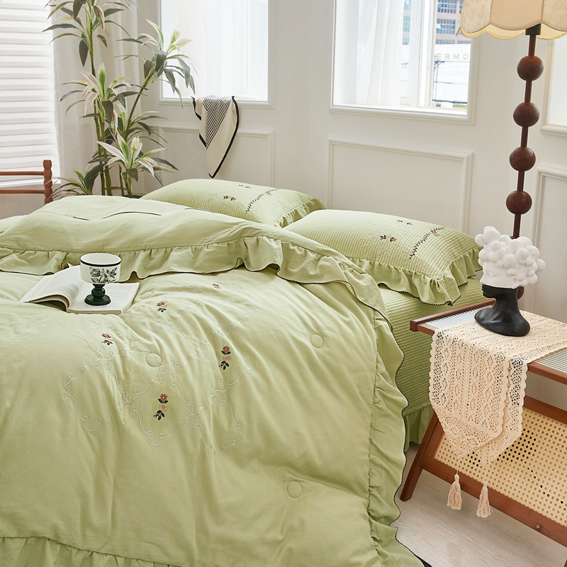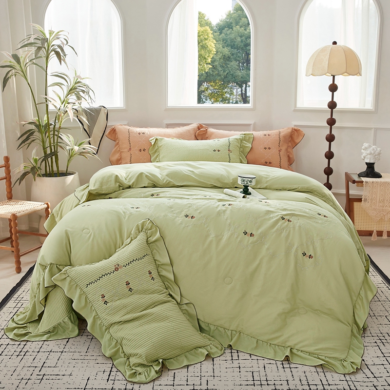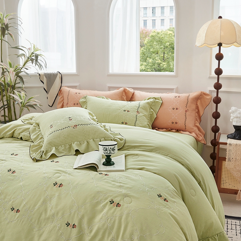 上喜 2025新款全棉提花刺绣款床盖四件套 绿色