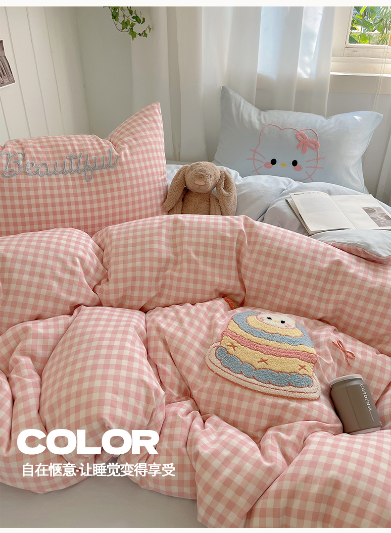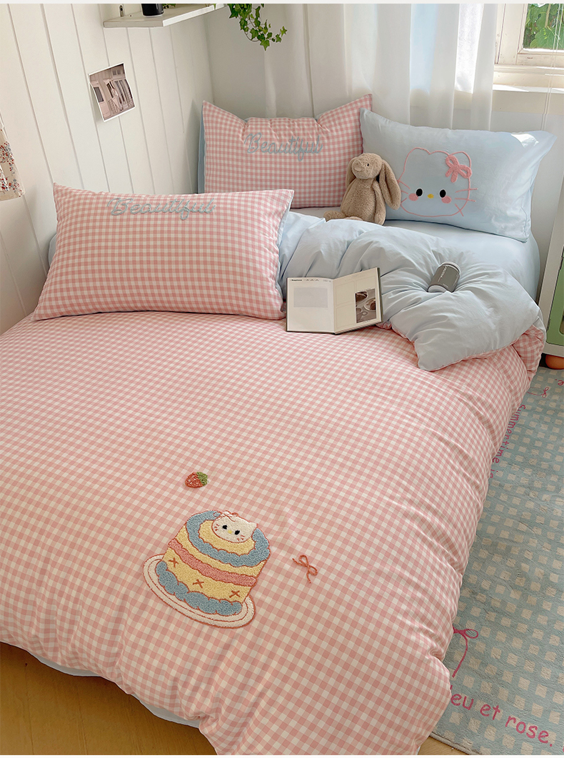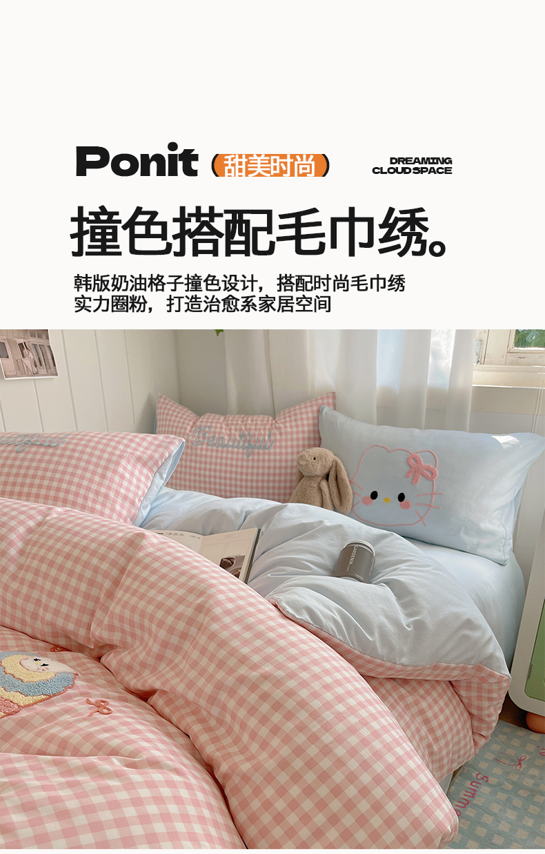 (总)桃心家居 2025新款A类三丽鸥正版授权云柔水洗棉兔毛贴布绣刺绣软糯四件套,云柔水洗棉-贴布绣粉格KT,云柔水洗棉-贴布绣紫格库洛米,云柔水洗棉-贴布绣美乐蒂,云柔水洗棉-贴布绣你好大耳狗,云柔水洗棉-贴布绣萌萌布丁狗,云柔水洗棉-贴布绣蓝格KT,云柔水洗棉-贴布绣蓝格布丁狗