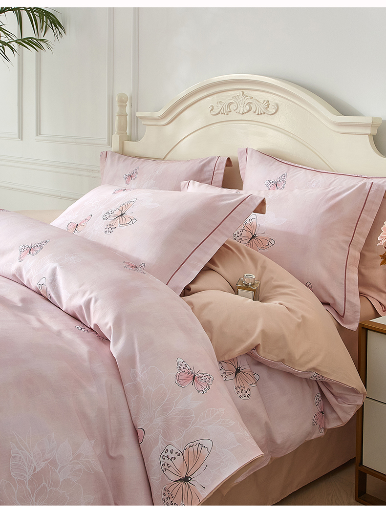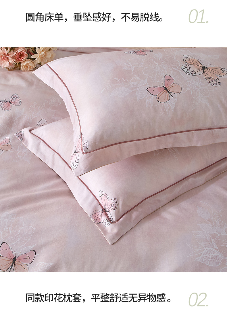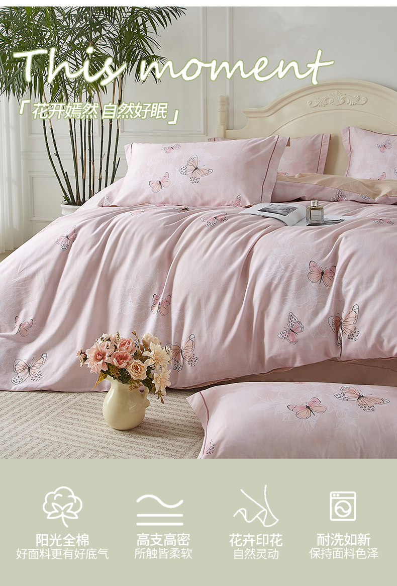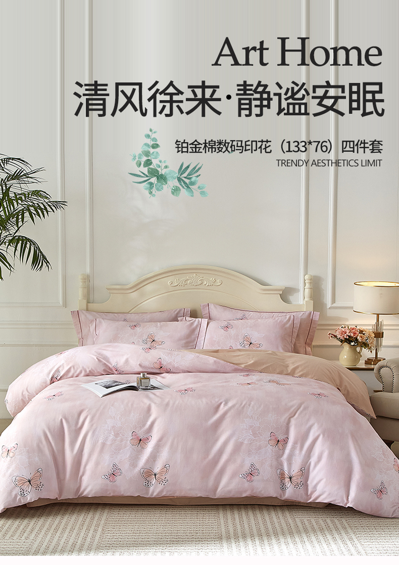 曼秀琳 2025新款铂金棉数码印花四件套(全棉133*76) 浅梦-粉