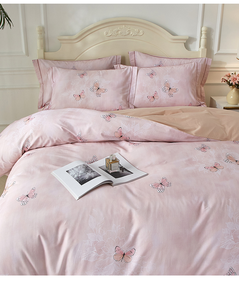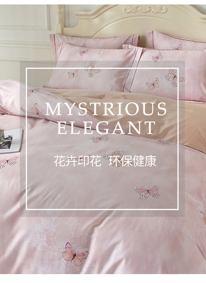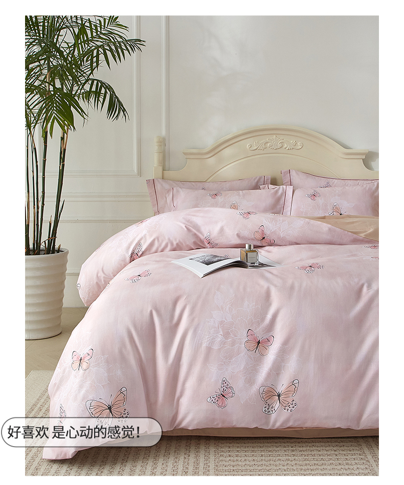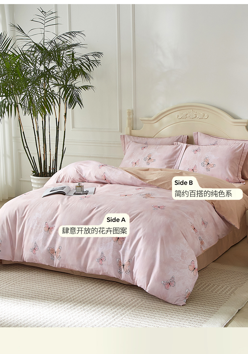 曼秀琳 2025新款铂金棉数码印花四件套(全棉133*76) 浅梦-粉