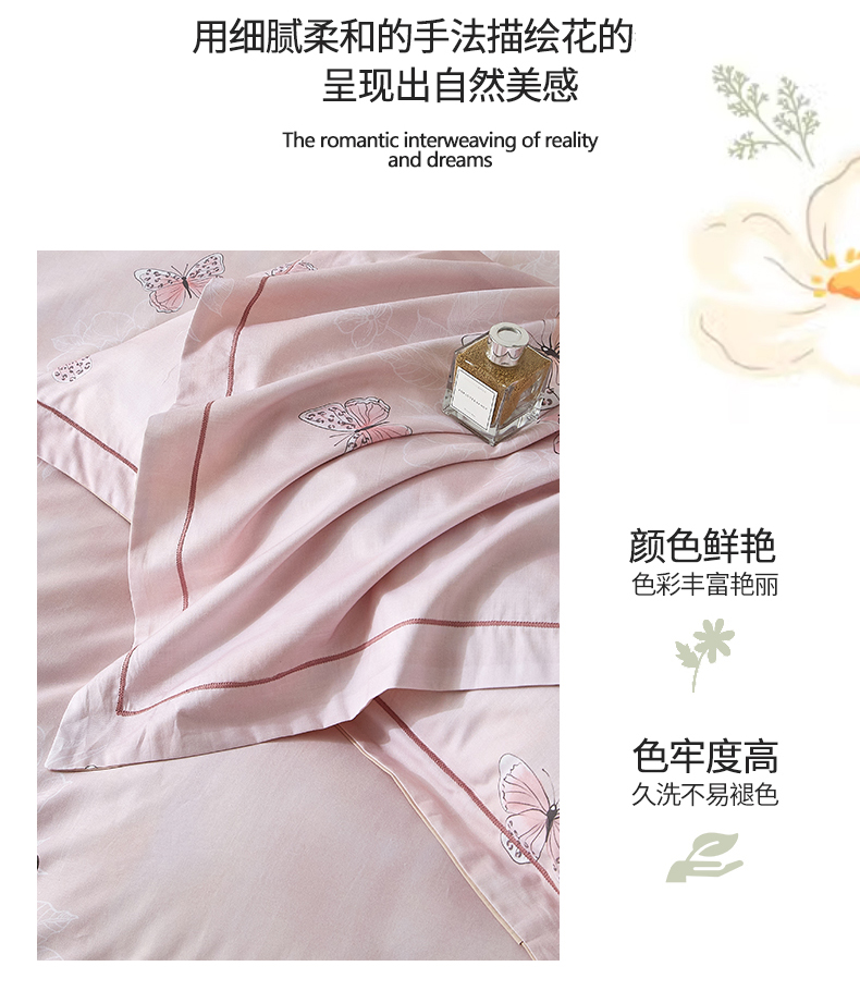商品名称:曼秀琳 2025新款铂金棉数码印花四件套(全棉133*76) 浅梦-粉