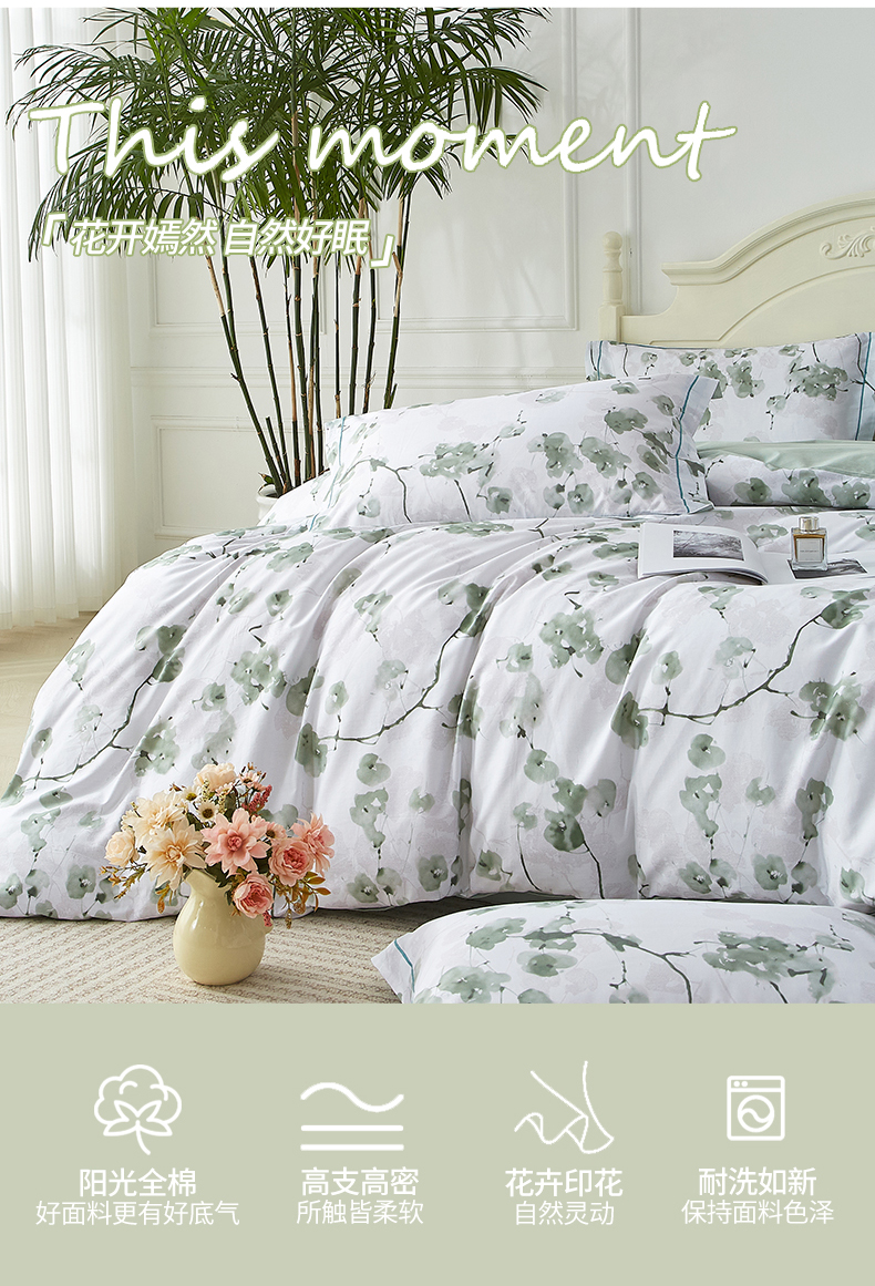 曼秀琳 2025新款铂金棉数码印花四件套(全棉133*76) 水色之暮-绿