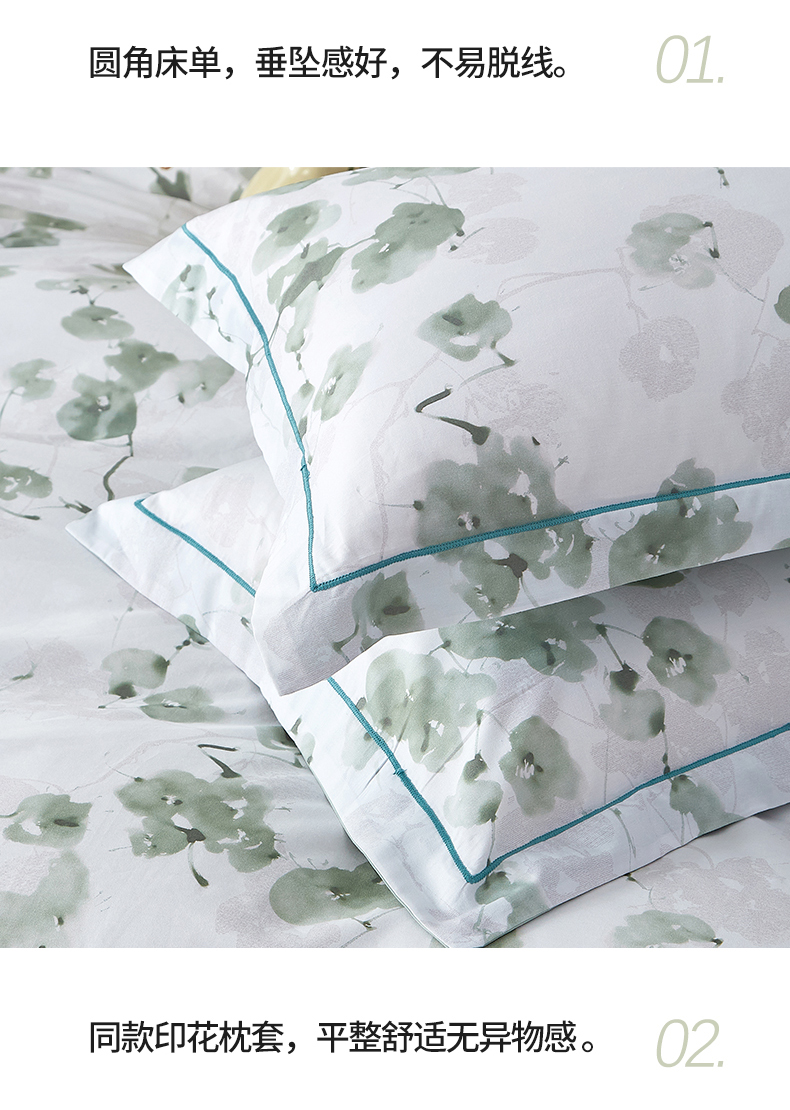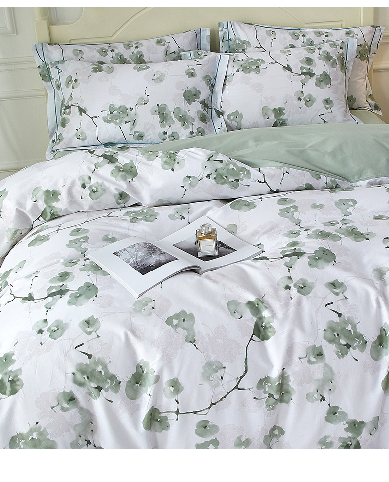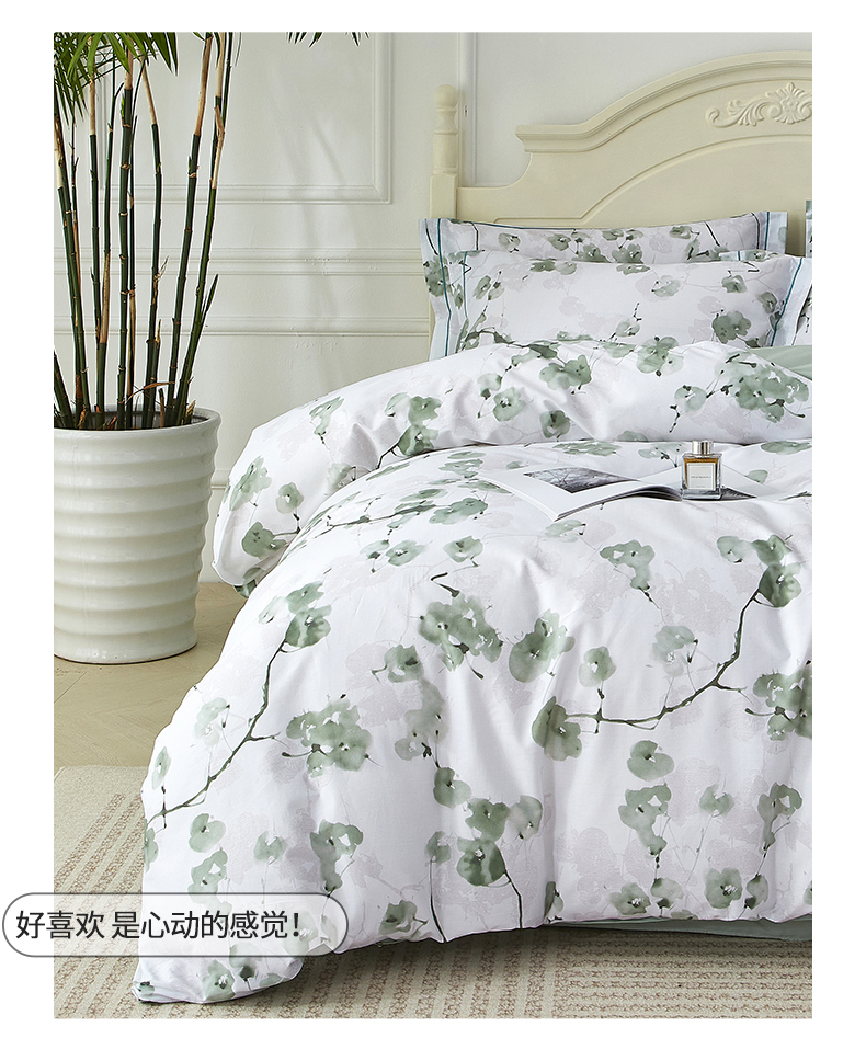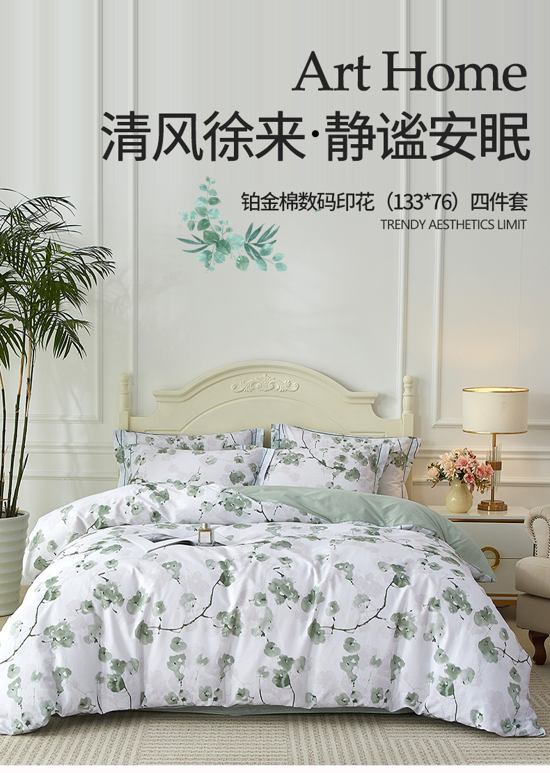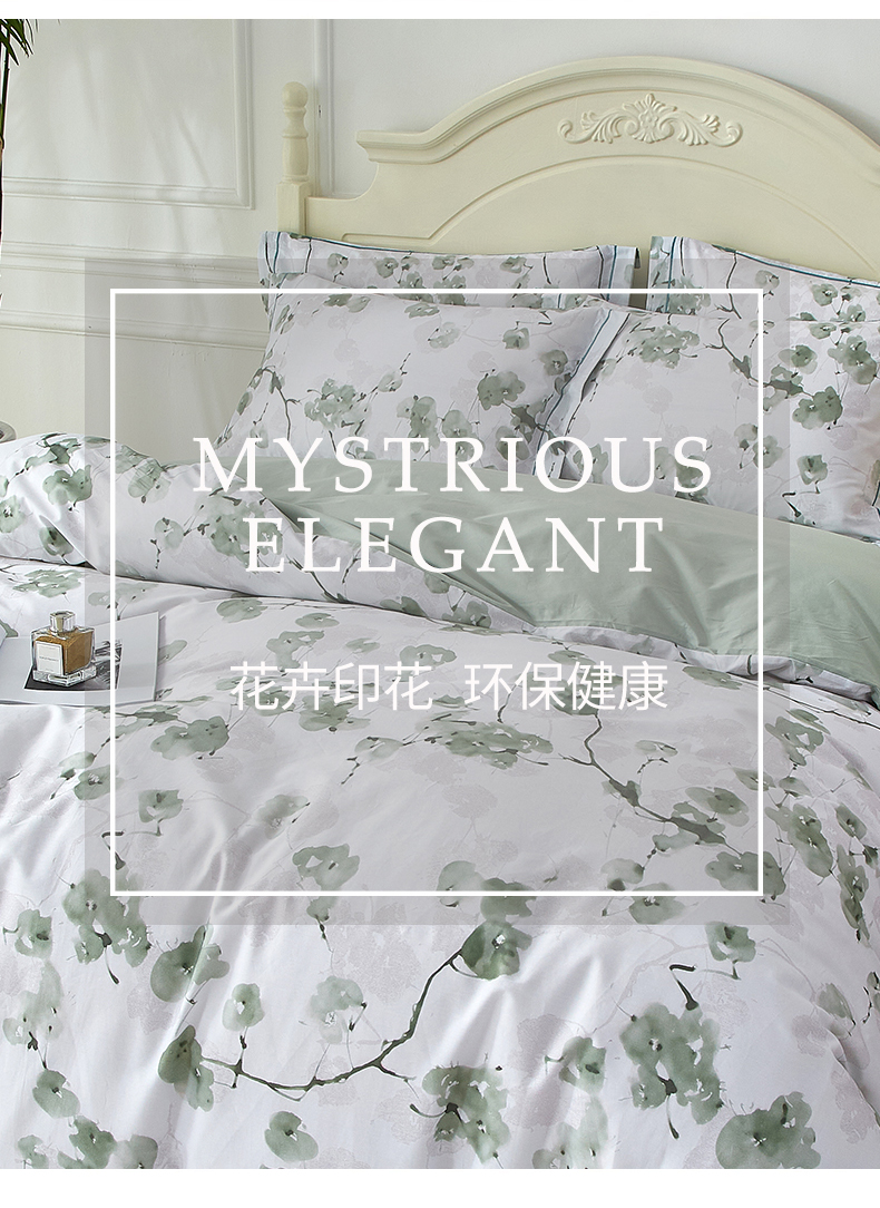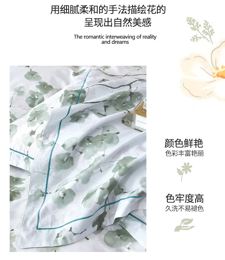 商品名称:曼秀琳 2025新款铂金棉数码印花四件套(全棉133*76) 水色之暮-绿