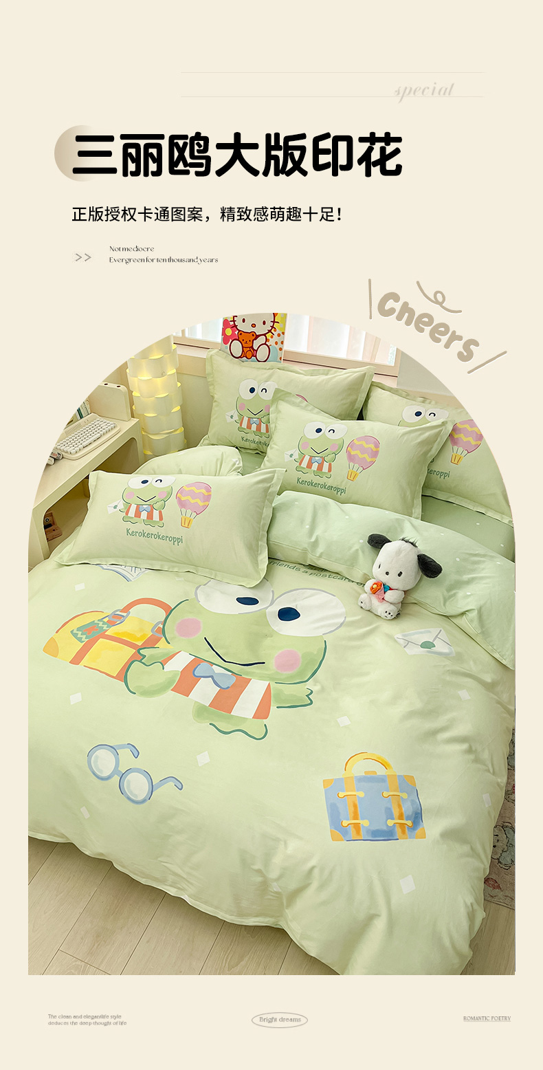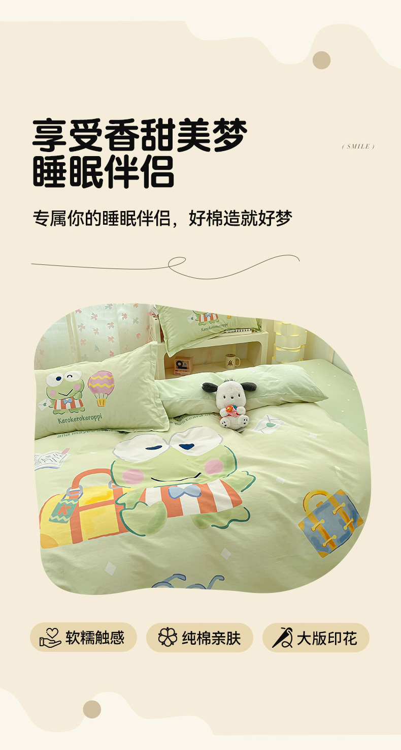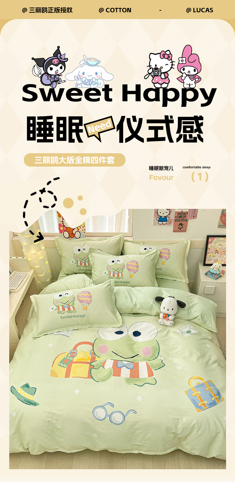 当前位置: 91家纺网 > 商品网购 > 床品套件 > 四件套 > 全棉普通四件套 > 博雅 2025新款三丽鸥大版印花全棉四件套专版花型 全棉大版(升级款信封枕)开心天眼蛙