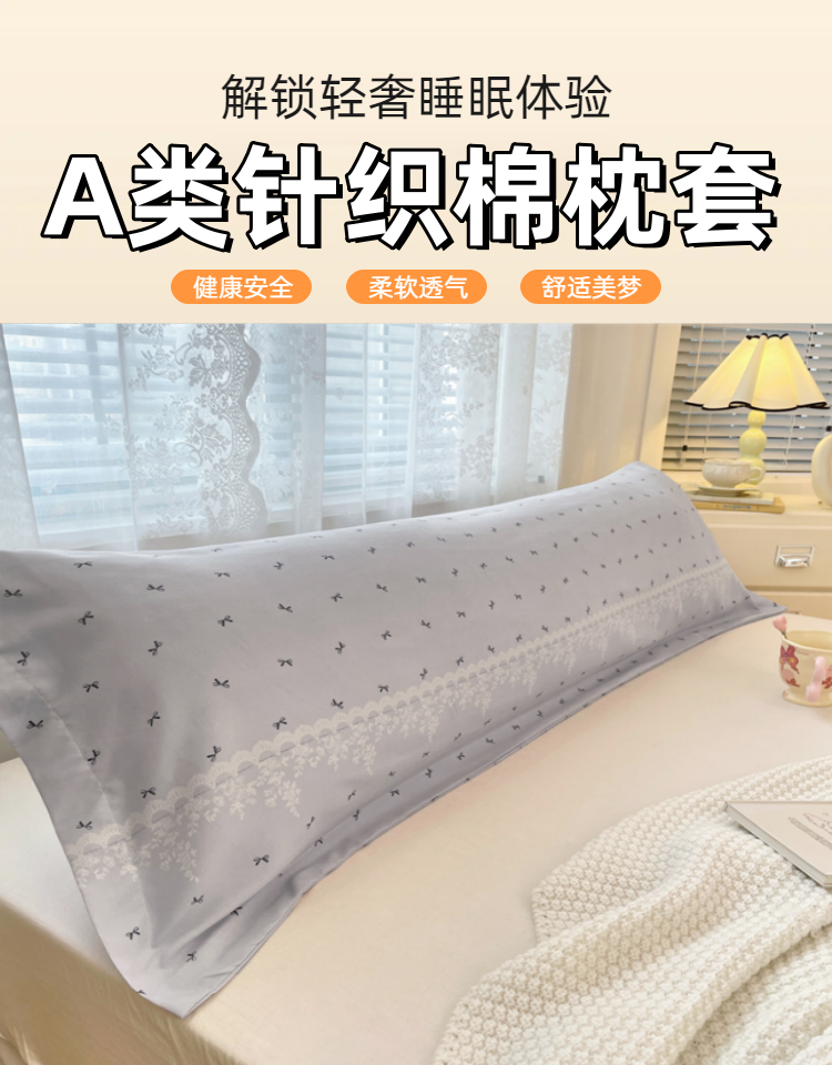商品名称:梦舒羽 2025新款针织棉双层纱枕头套亲肤双人枕套枕芯套枕头内胆套 蝴蝶结