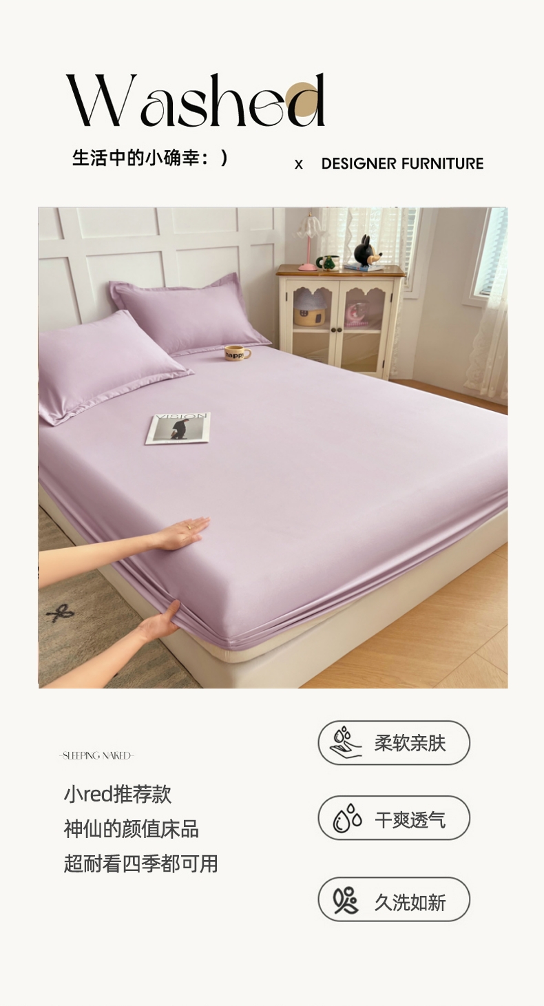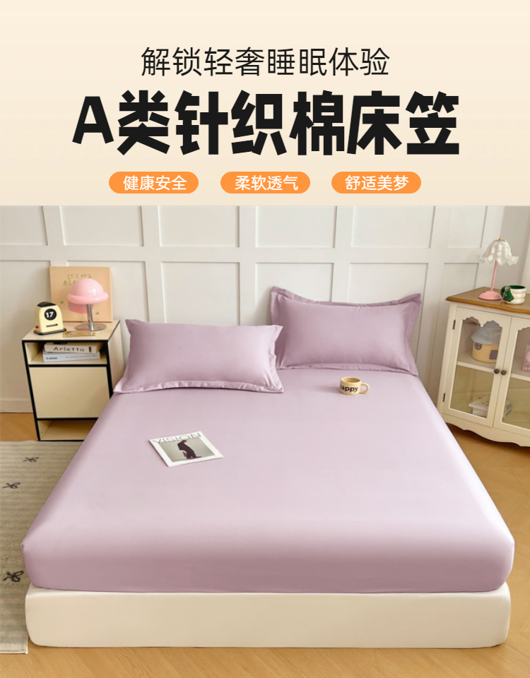 • 91家纺网 家纺一手货源 找家纺 梦舒羽 2025新款针织棉双层纱双层纱床笠罩全包席梦思床垫保护罩 香芋紫