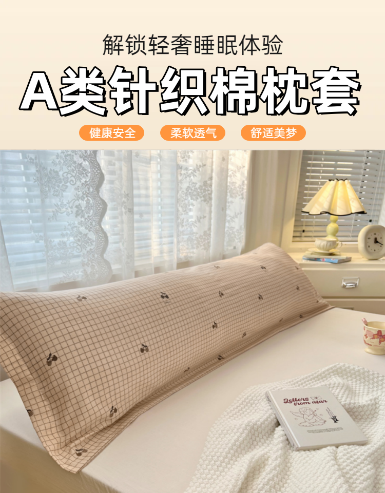 商品名称:圣比熊 2025新款针织棉双层纱枕头套亲肤双人枕套枕芯套枕头内胆套 樱桃小熊