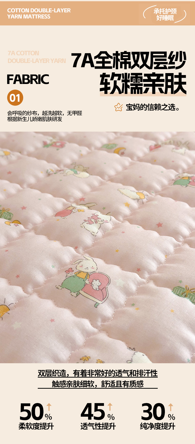 当前位置: 91家纺网 > 商品网购 > 床垫/床褥 > 普通床垫 > 嗨生活 2025新款7A抗菌全棉双层纱床垫 床褥 幼儿园床垫 儿童床垫 支持定做 你好小兔