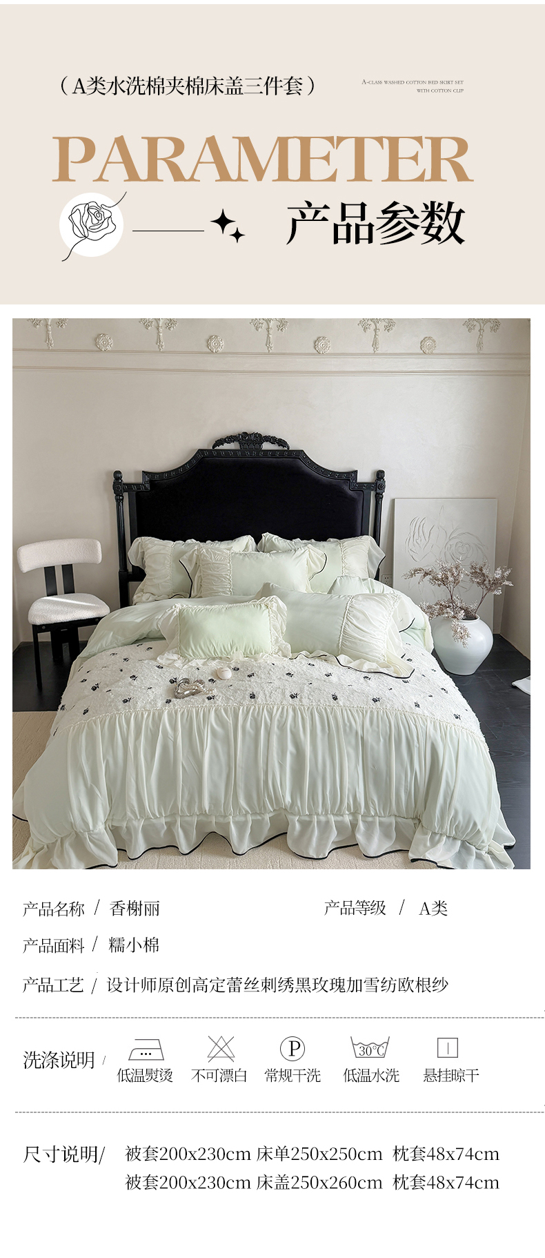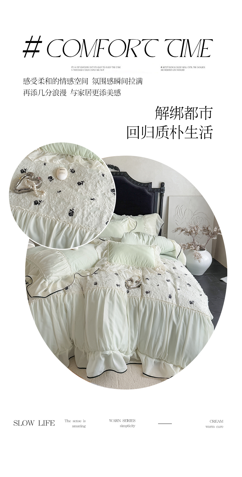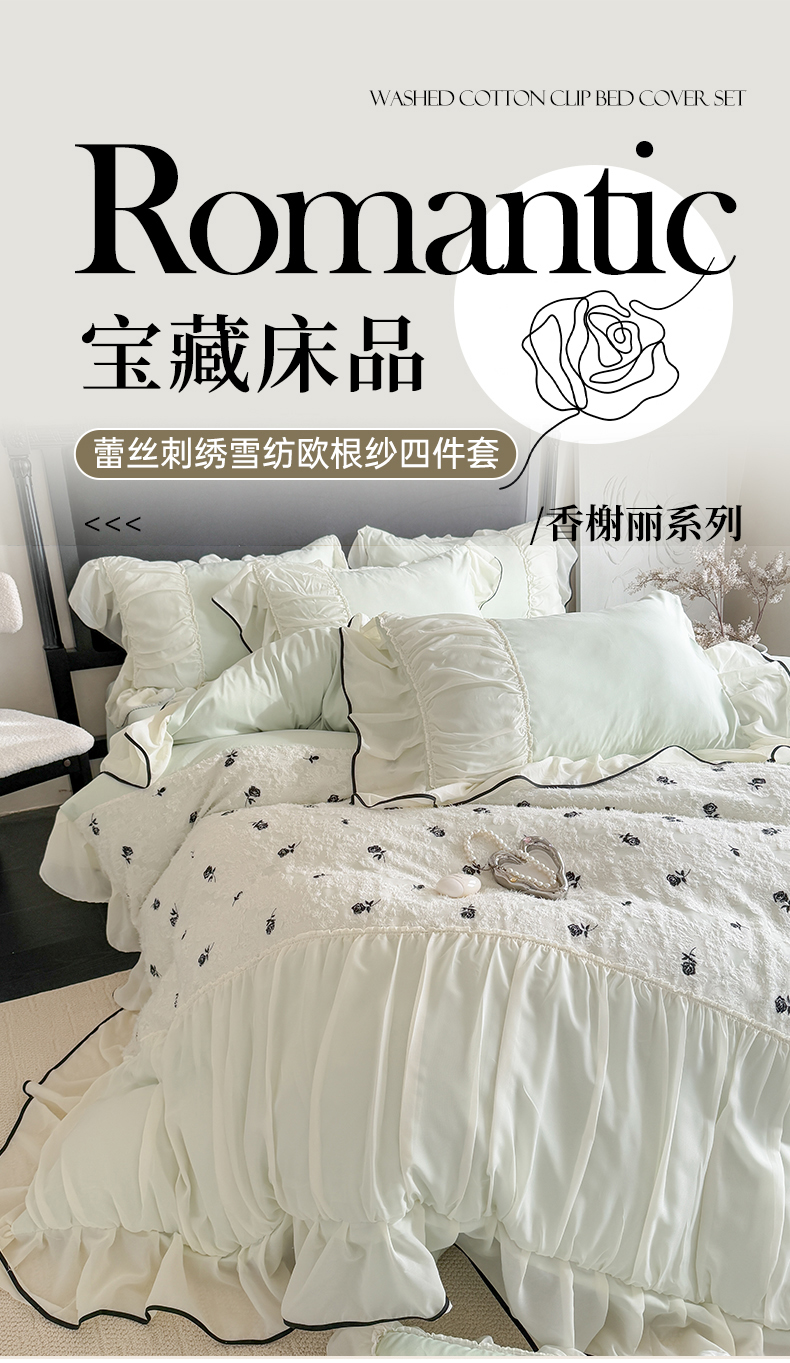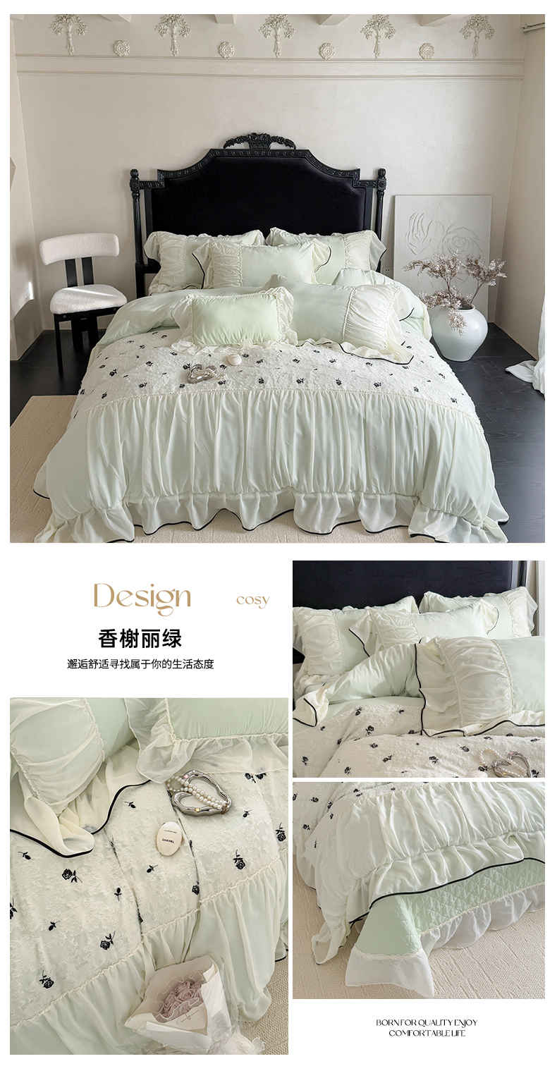 商品名称:吾欢心 2025新款法式高定香榭丽四件套 香榭丽绿