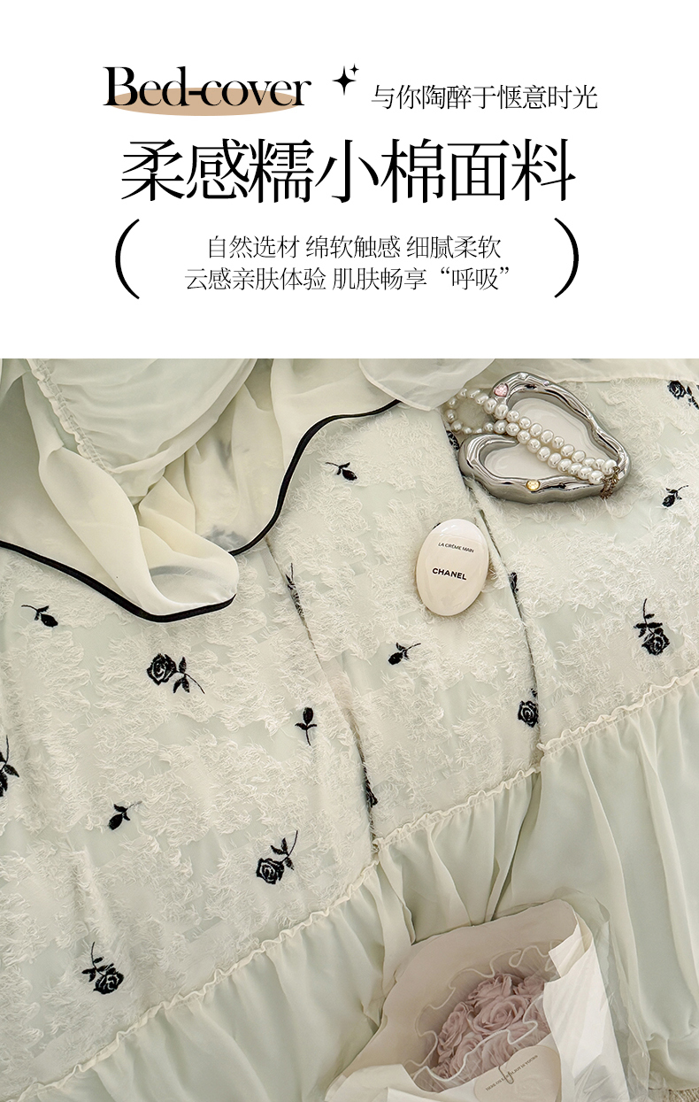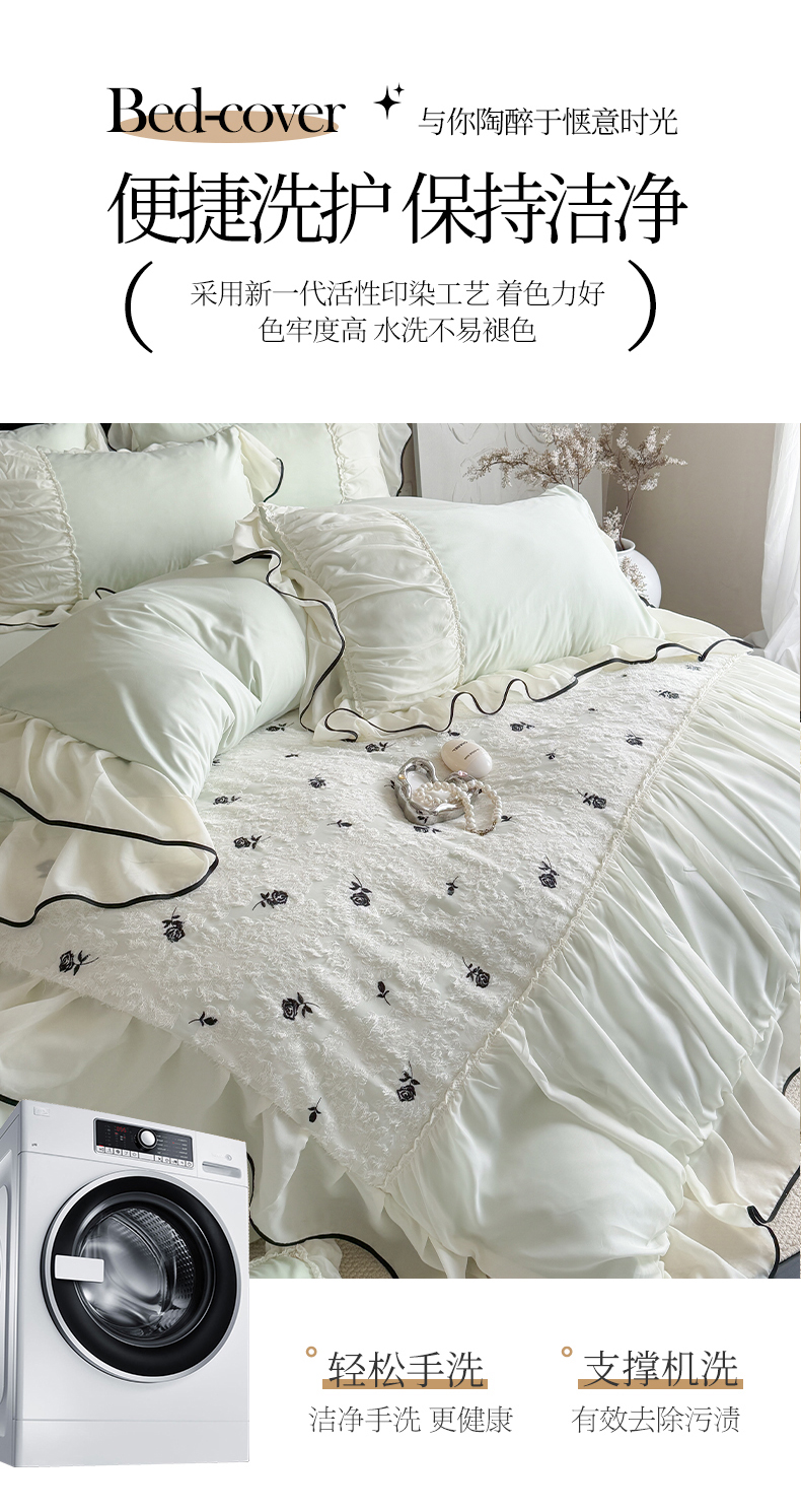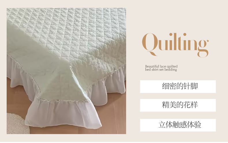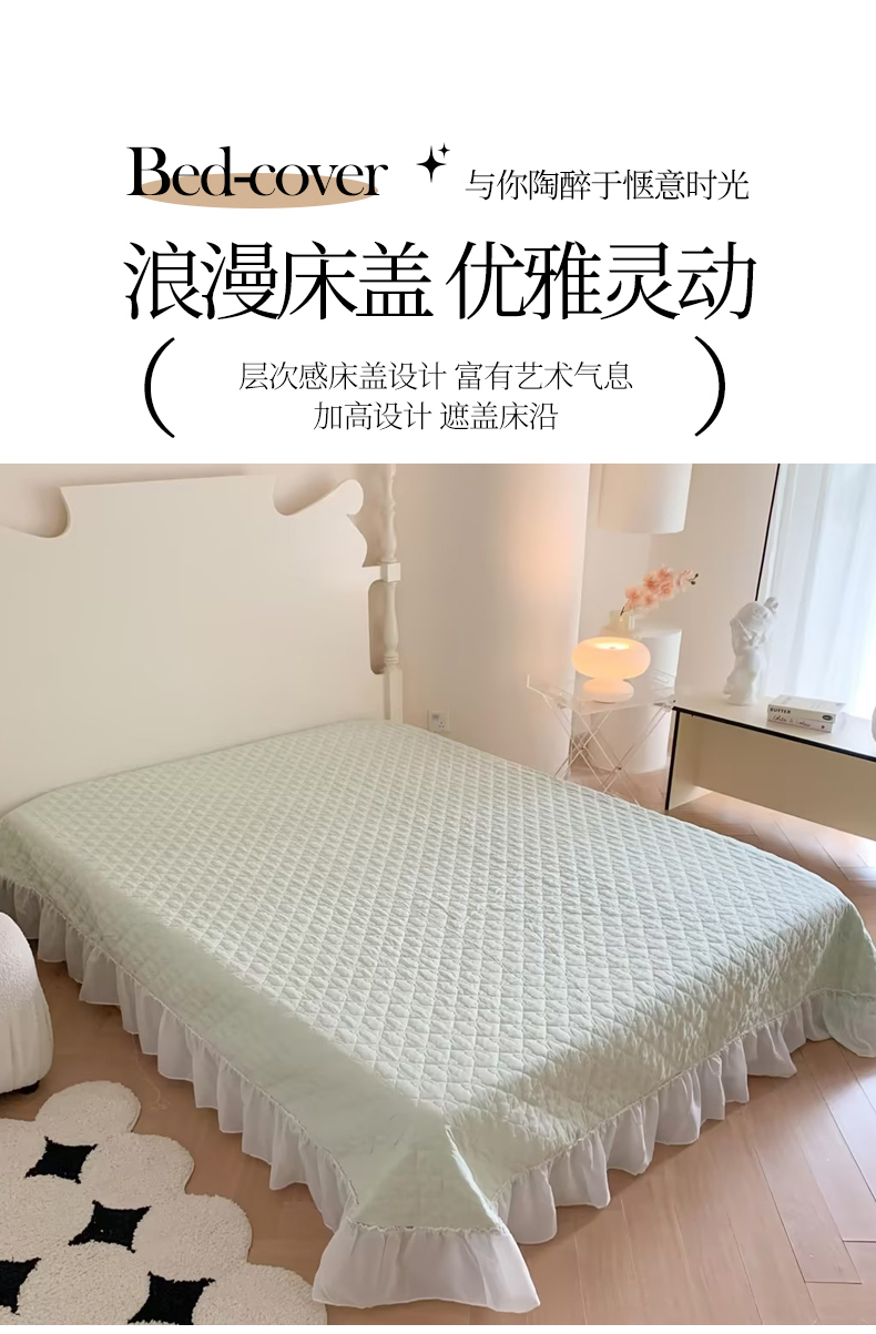 (总)吾欢心 2025新款公主风雪纺边四季通用夹棉床盖,床盖白,床盖粉,床盖黄,床盖咖,床盖绿,床盖抹茶绿,床盖紫