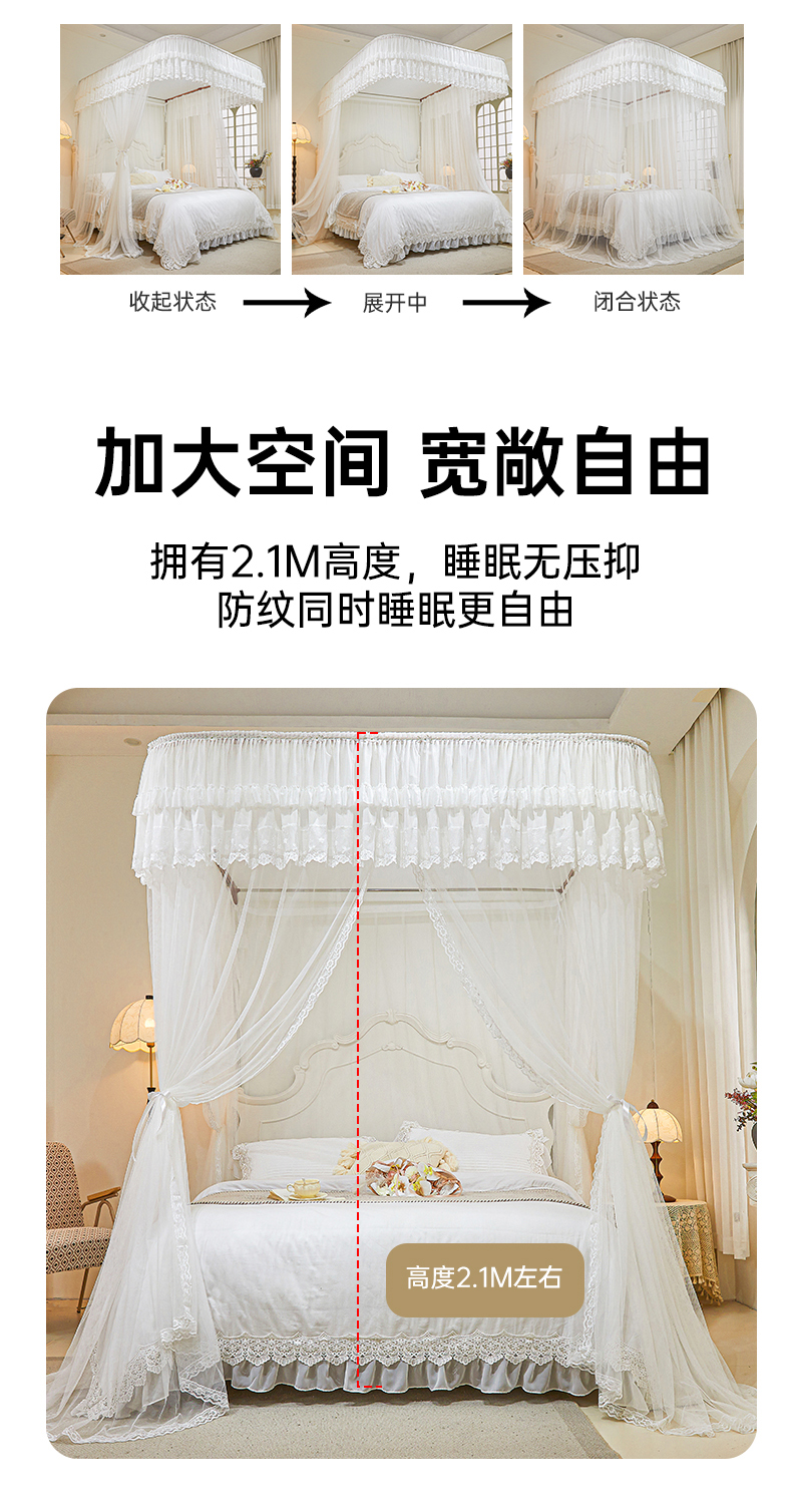 (总)梦尔佳 2025新款落地款蚊帐-怜香惜玉系列860型号,洁白,藕玉,米黄,五彩缤纷:蓝灰,淡蓝,五彩缤纷:白