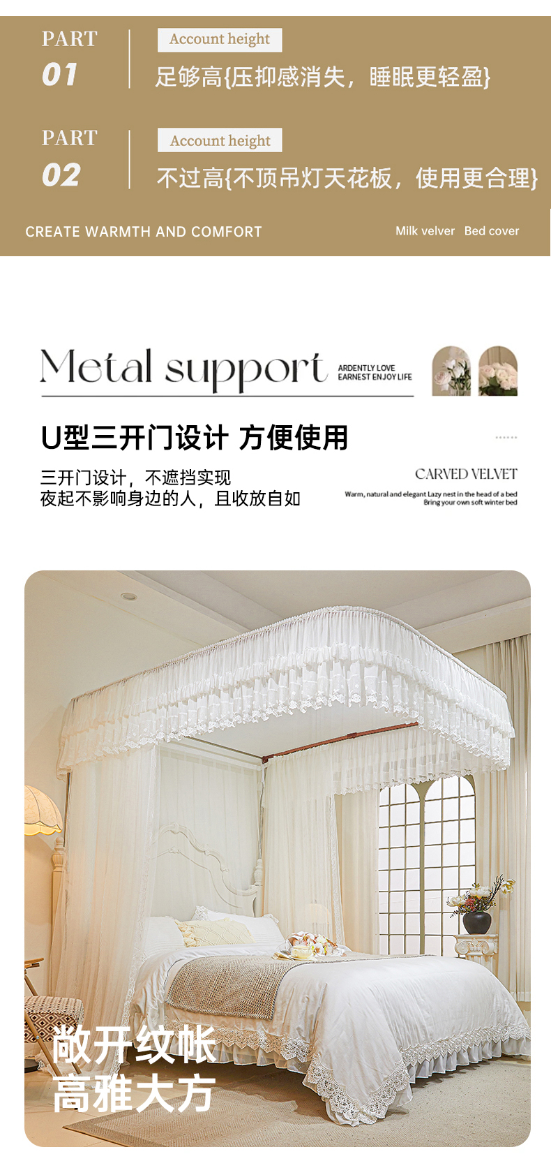 (总)梦尔佳蚊帐 2025新款双层花边床笠式三开门蚊帐-858怜香惜玉系列,优雅黄,富贵白,高级灰,温柔玉,清爽蓝
