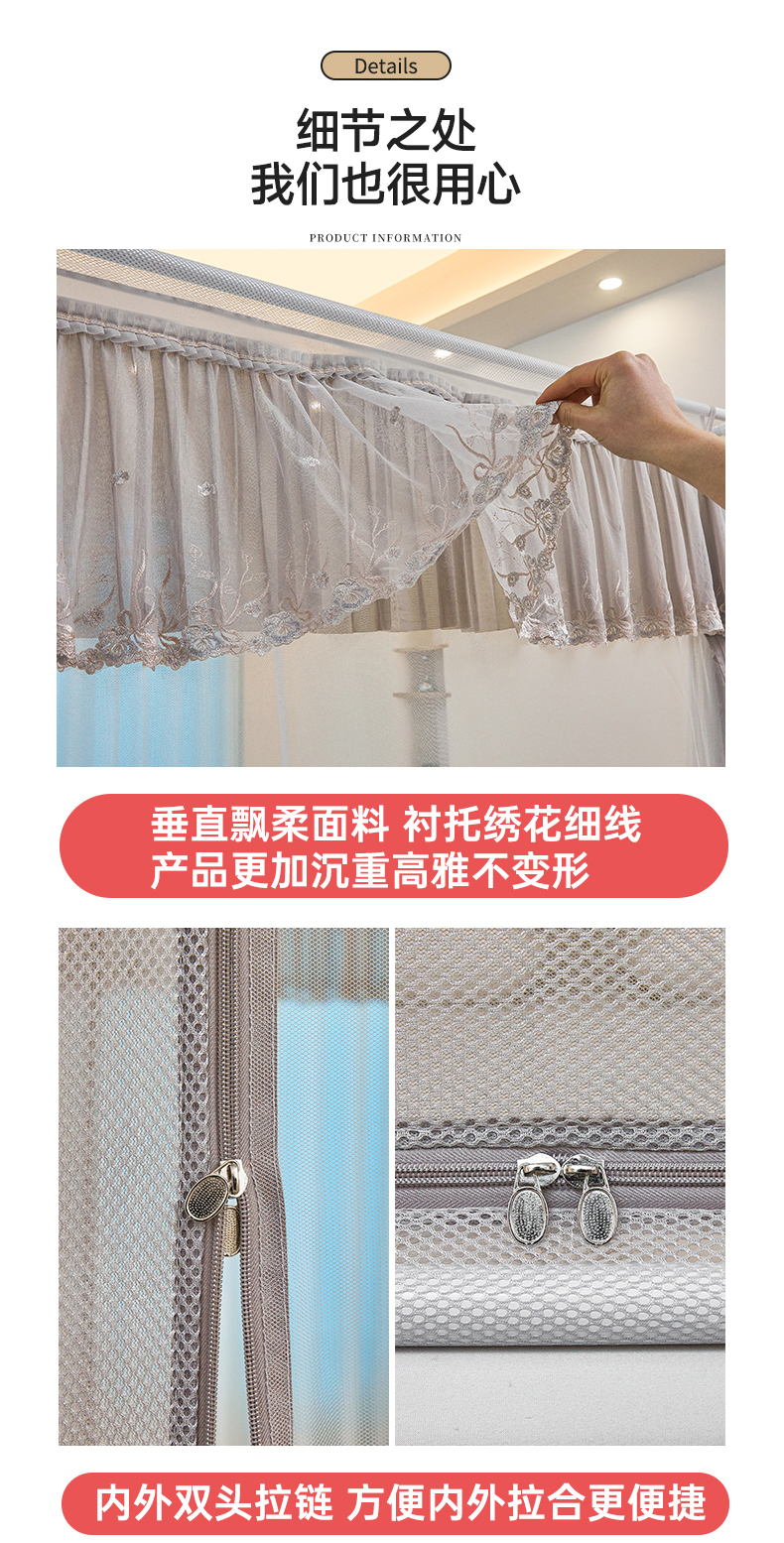 (总)梦尔佳蚊帐2025新款TU绣花蚊帐-859窈窕淑女系列,温馨如玉,高雅银灰,清爽水蓝,宛如白霞,喜庆粉红,优雅嫩黄