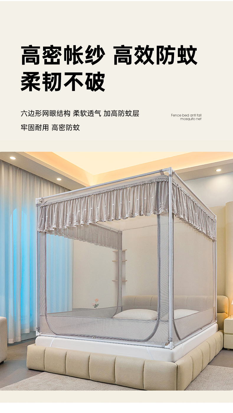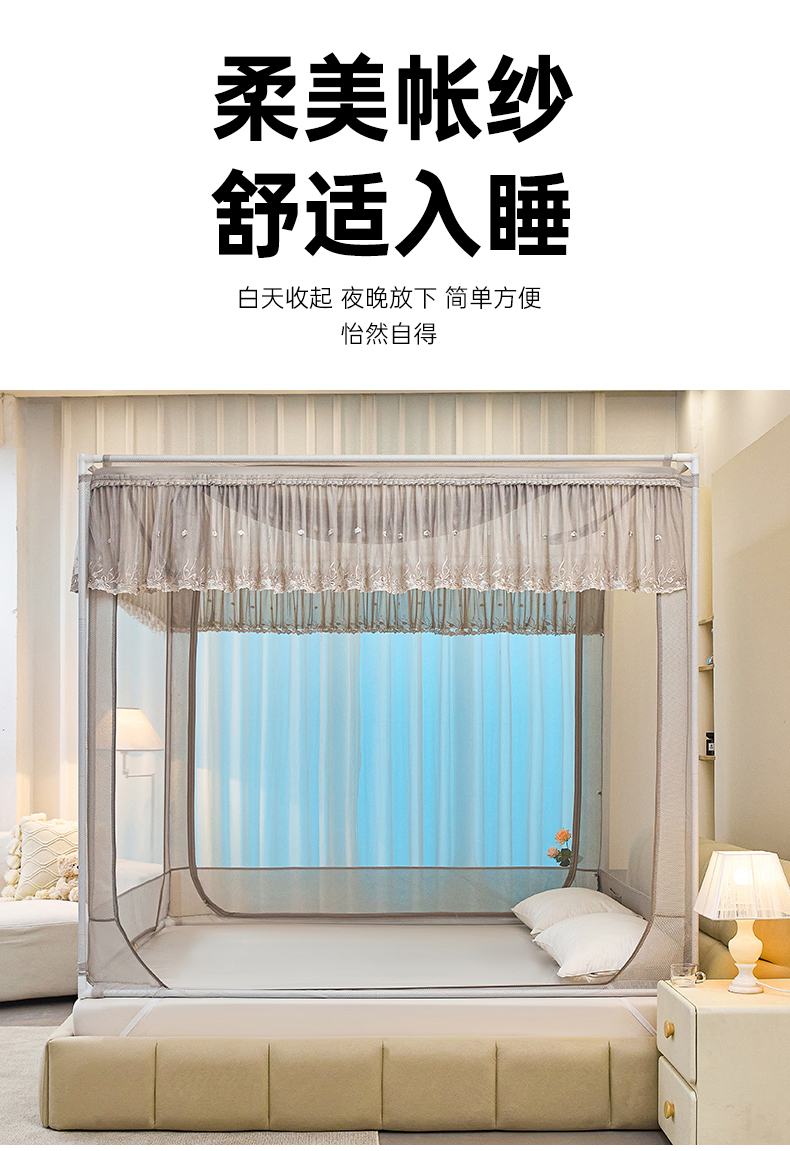 (总)梦尔佳蚊帐 2025新款双层花边床笠式三开门蚊帐-858怜香惜玉系列,优雅黄,富贵白,高级灰,温柔玉,清爽蓝
