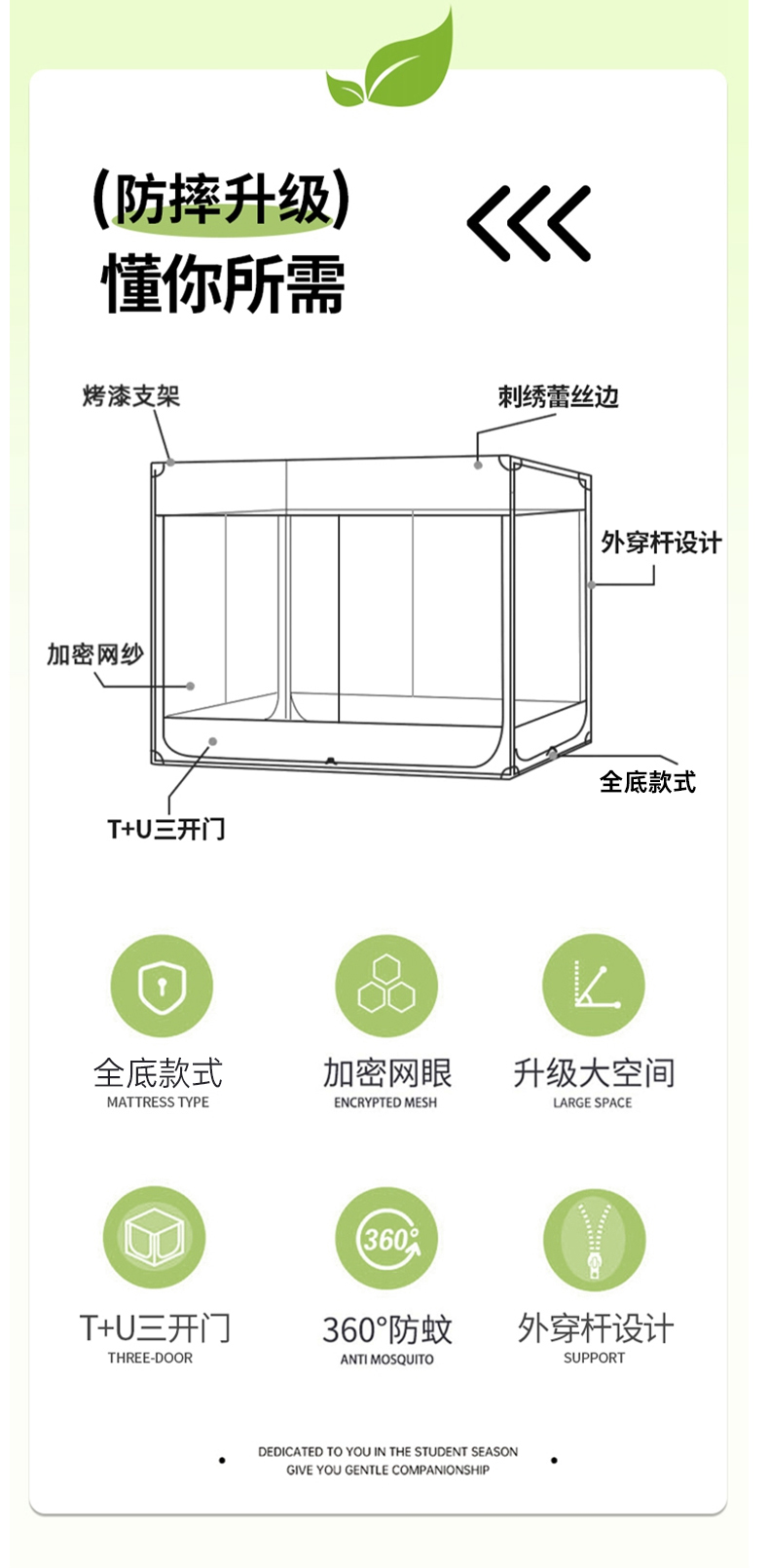 (总)2024新款U型导轨学生上下铺通用蚊帐,帕恰狗蓝,帕恰狗绿,甜蜜窑,喜洋洋奶白